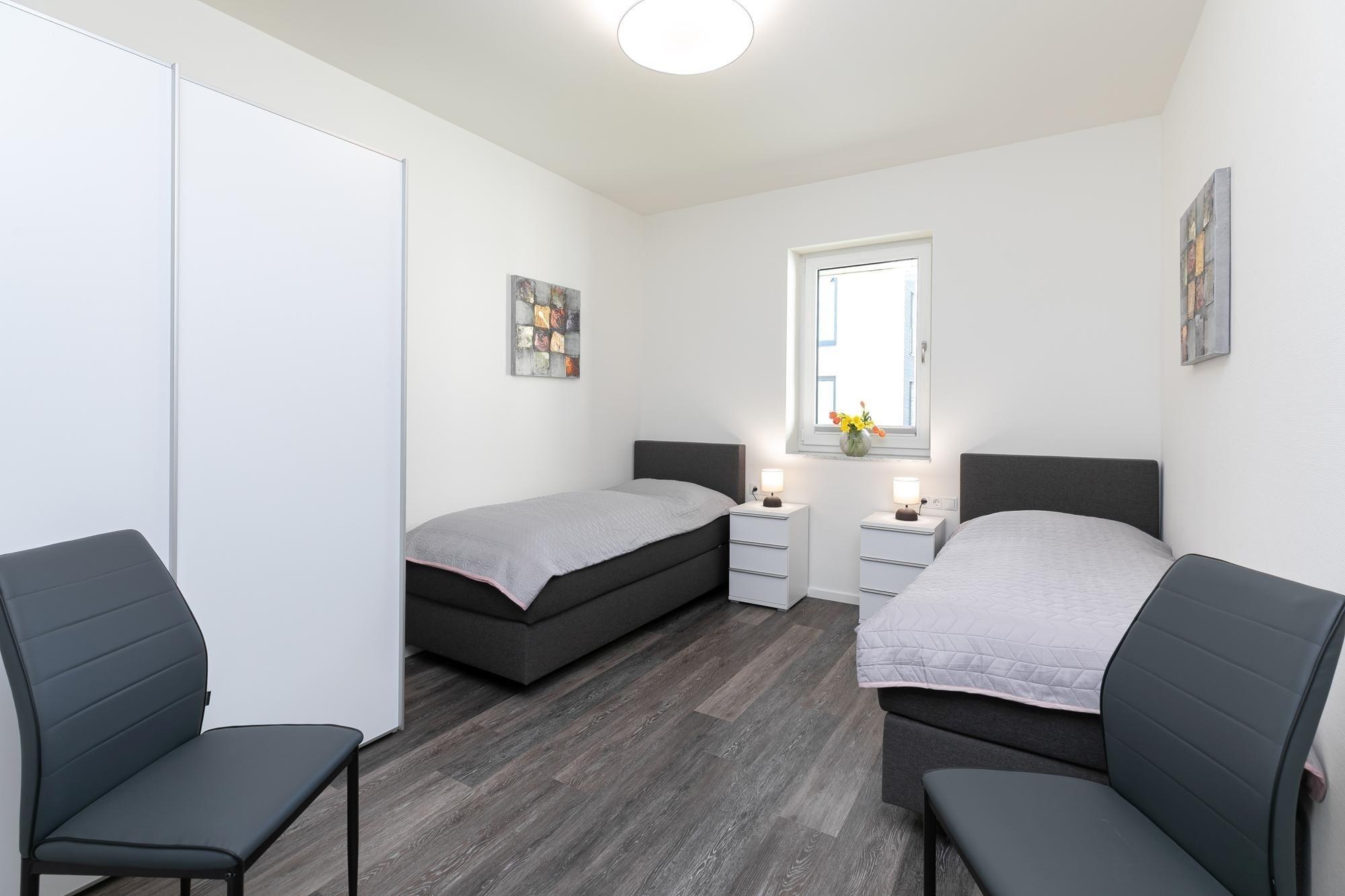 Schlafzimmer 2: 2 Boxspring-Einzelbetten (2x 90x200 cm), TV