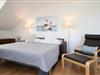 Schlafzimmer: 1 Doppelbett (2x 90x200 cm), Kleiderschrank, TV, Verdunkelung (Rollo).