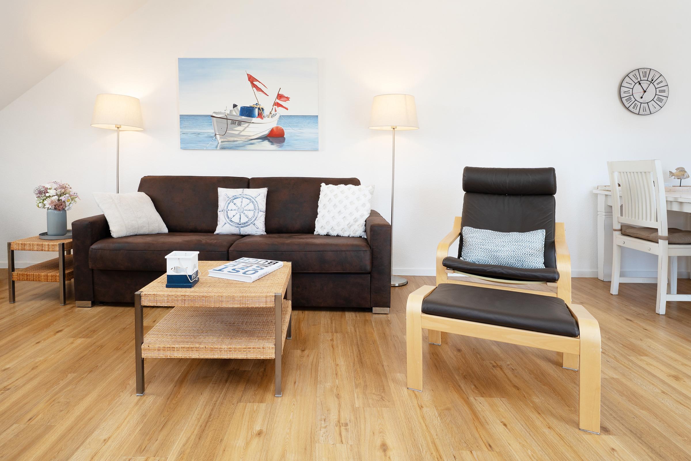 Traum-Lage: Schicke 2-Zimmer-Ferienwohnung in der 1. Reihe zur Ostsee in Kellenhusen für bis zu 4 Personen im Dachgeschoss (2. Stock) mit Balkon, einer Wohnfläche von ca. 49 m² – und Meerblick.