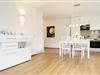 Modernes Wohnen achtern Diek – nur ein paar Meter vom Strand entfernt. Mit einer liebevoll ausgesuchten Einrichtung präsentiert sich das große, helle Wohnzimmer mit bequemer Sofalandschaft und schöner Essecke sowie Flachbild-TV und Blu-Ray-Player. Hier haben Sie auch direktem Zugang zur sonnigen, möblierten Terrasse, auf der Sie die gute Ostseeluft genießen können. Die Küche ist in den Wohnbereich integriert und ist mit Extras wie Mikrowelle und Geschirrspüler gut ausgestattet. Ein Schlafzimmer ist mit einem Doppel-Boxspringbett (2x 80x200 cm) hochwertig möbliert, das zweite Schlafzimmer verfügt über zwei getrennt stehende Einzelbetten (je 90x200 cm). Das moderne Duschbad bietet den Komfort, den man sich im Urlaub wünscht.