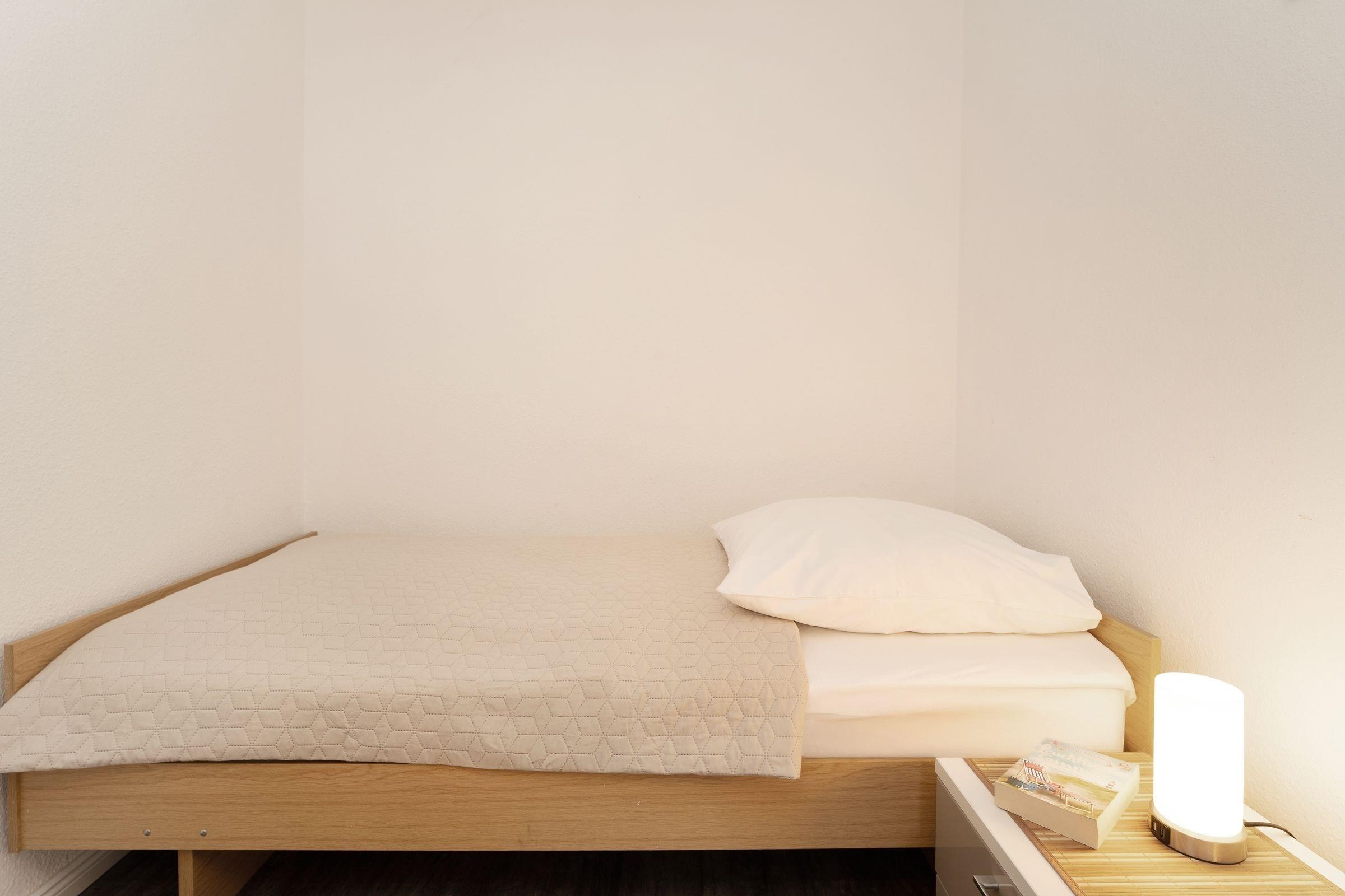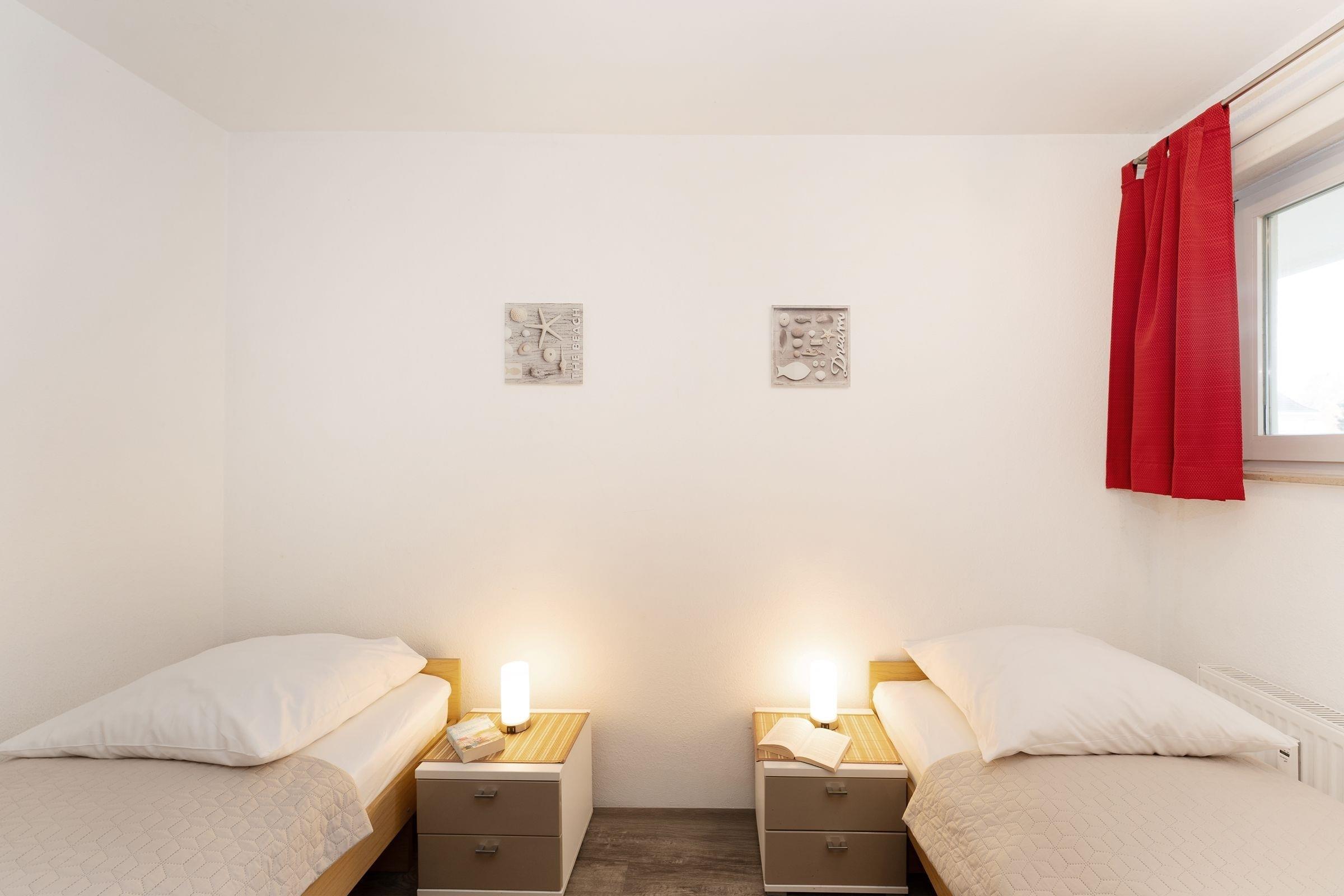 Schlafzimmer: 2 Einzelbetten (je 90x190 cm), Verdunkelung: Jalousie, kein Platz für ein Babybett vorhanden
