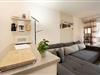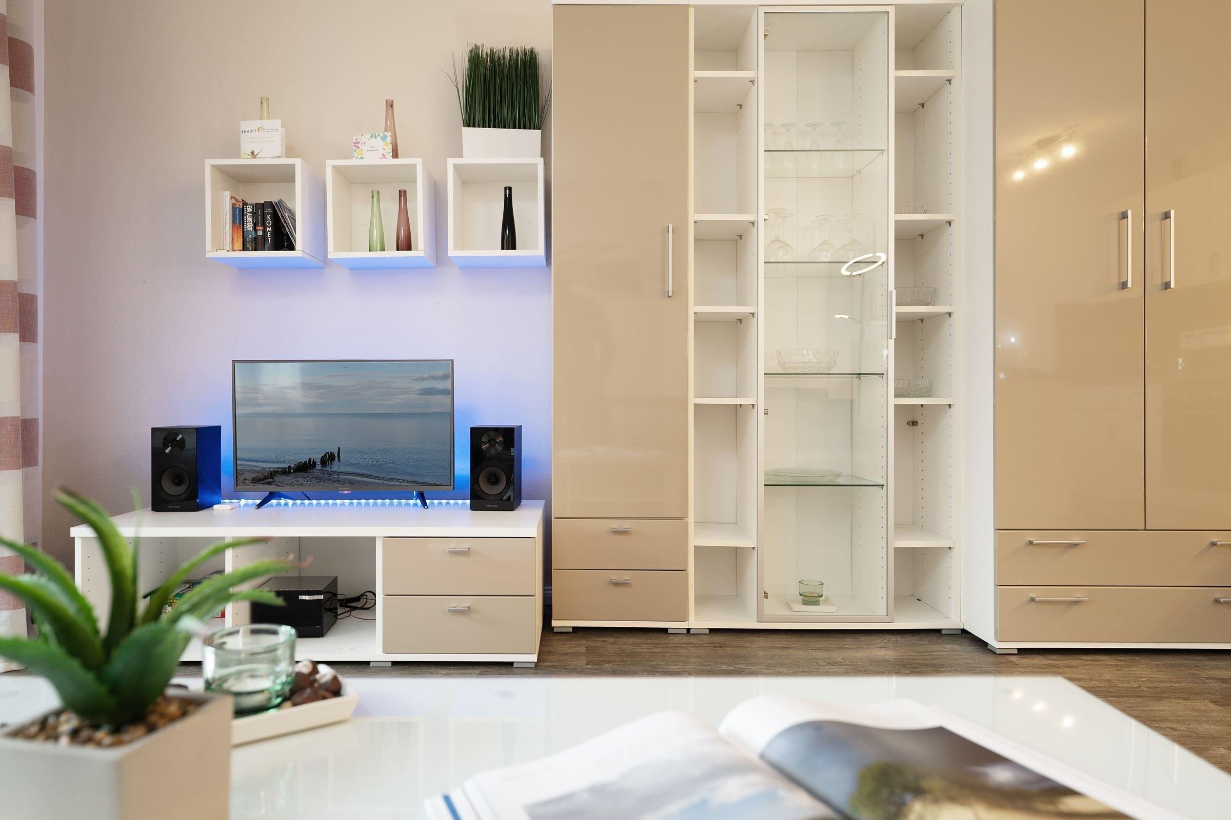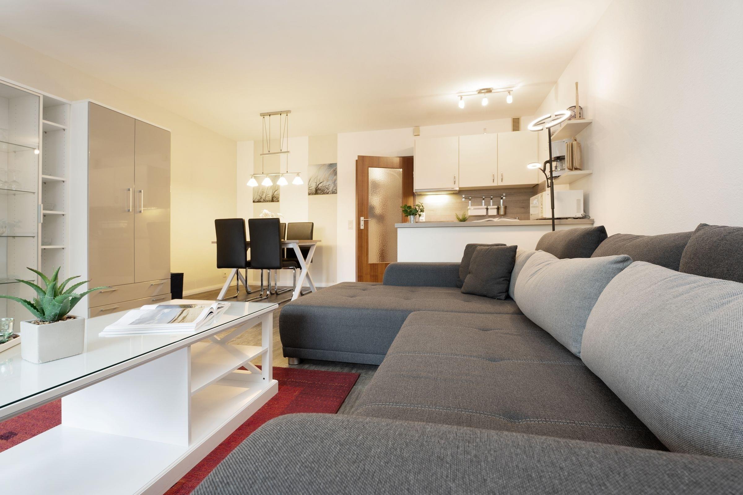 In zentraler, strandnaher Lage erwartet Sie diese modern eingerichtete Ferienwohnung. Aufgeteilt ist dieses geräumige Objekt in ein Wohnschlafzimmer mit elektrisch ausfahrbarer Schlafcouch (ca. 160x240 cm), TV, Radio, DVD-Player und einer schönen großen möblierten Balkon-Loggia. Die Küche ist zum Wohnzimmer hin offen. Durch die gute Ausstattung mit Backofen, Mikrowelle, Kaffeemaschine, Toaster und weiteren Küchengeräten haben Sie die Möglichkeit, Ihre Lieblingsspeisen zuzubereiten. In einem separaten Schlafzimmer befinden sich zwei Einzelbetten (je 90x190 cm). Das innenliegende Duschbad ist hell gefliest.