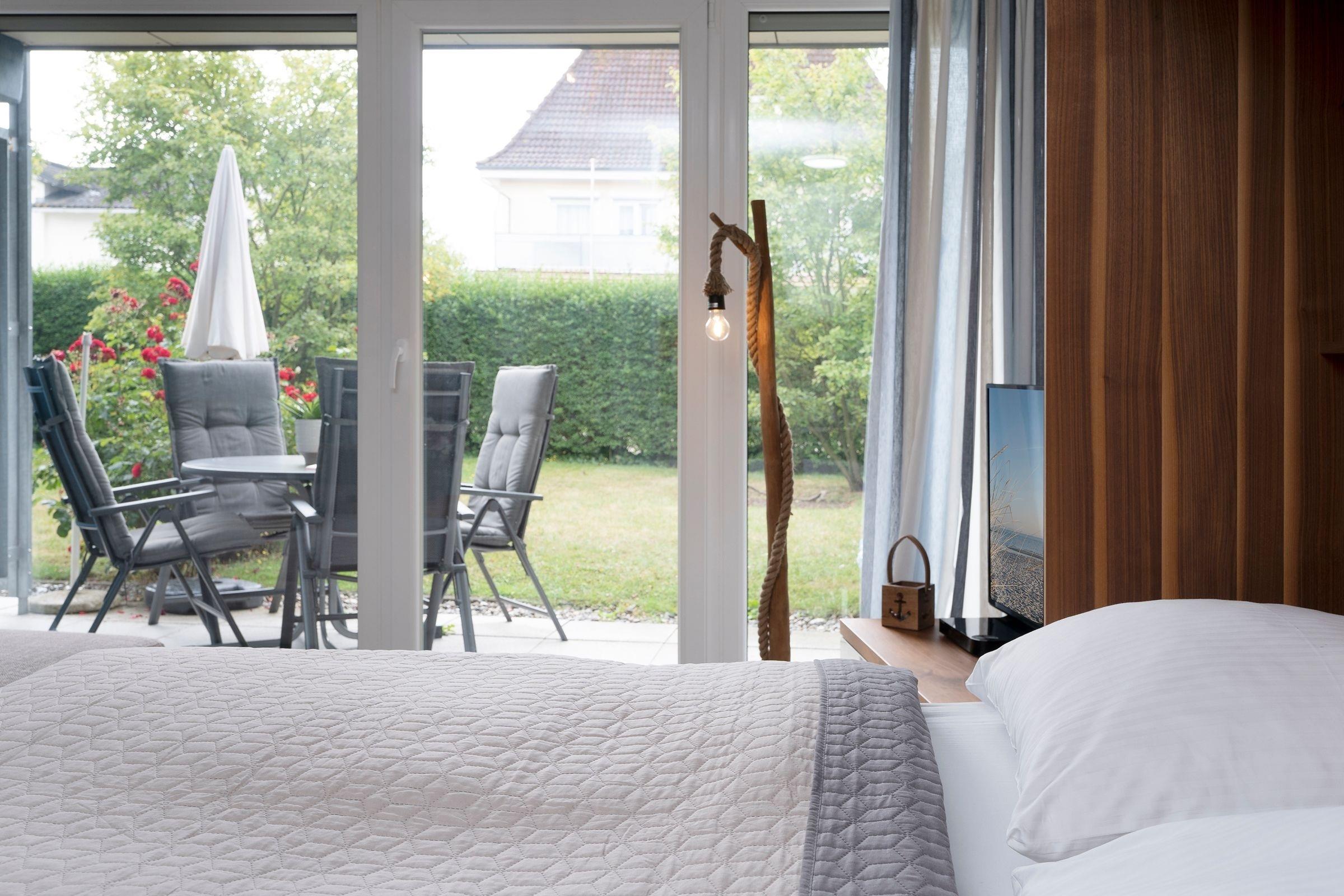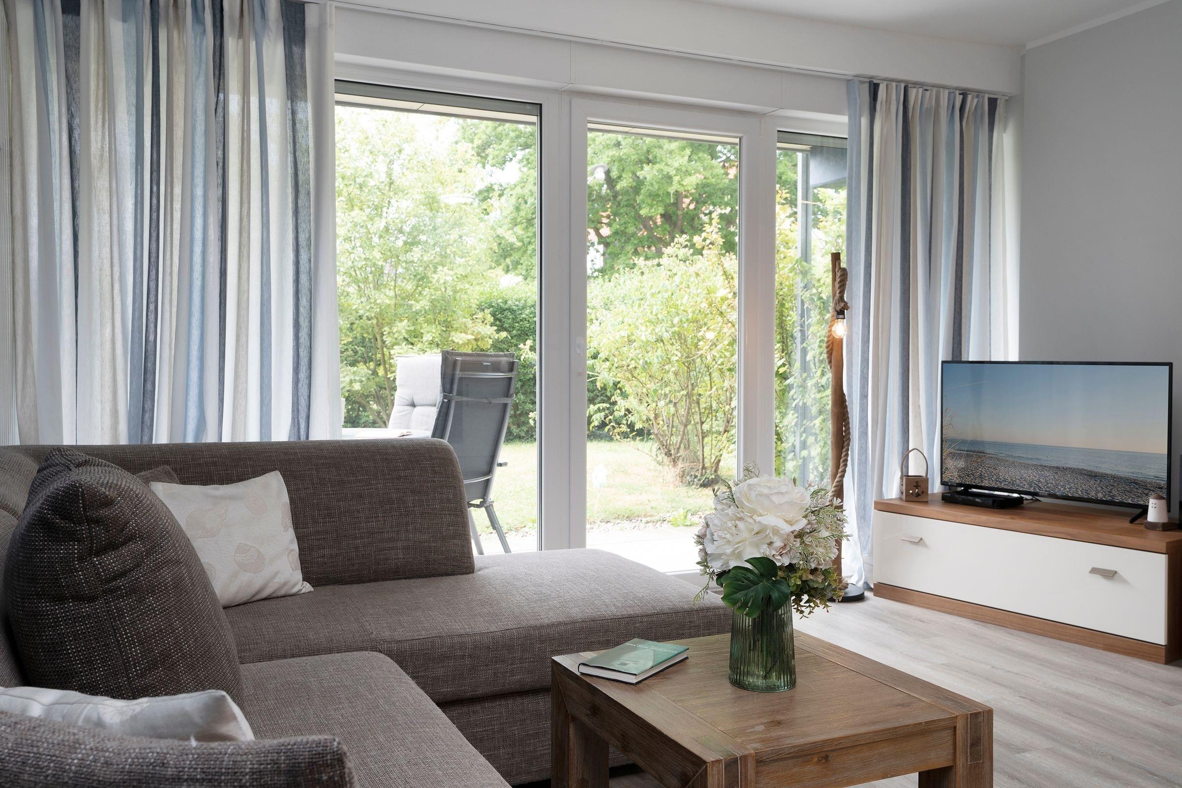 Herzlich Willkommen in Ihrem wohlverdienten Urlaub. Der modern gestaltete Wohnbereich empfängt Sie mit einer gemütlichen Couchecke, die ideal für gesellige Filmabende nach einem schönen Urlaubstag geeignet ist. Das Doppelschrankbett (ca. 160x190 cm) verwandelt diesen Raum im Handumdrehen in einen bequemen Schlafplatz für zwei Personen. Von hier aus gelangen Sie auf die möblierte Terrasse, auf der Sie viele Sonnenstunden genießen können. Die in den Wohnbereich integrierte Küche ist mit Backofen, Geschirrspüler, 4- Platten-Herd, usw. gut ausgestattet. Das separate Schlafzimmer ist mit einem komfortablen Boxspringbett (ca. 160x200cm) möbliert. Das tageslichthelle Badezimmer bietet Annehmlichkeiten wie eine Badewanne, einen beleuchteten Spiegel und eine praktische Handtuchheizung.