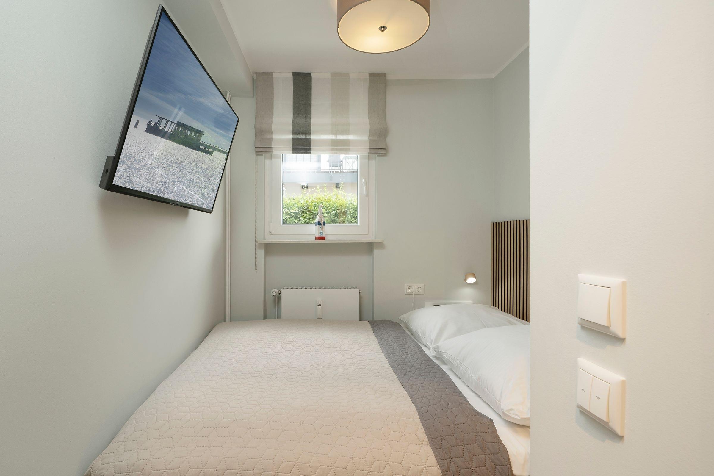 Schlafzimmer: Boxspringbett (160x200 cm), Verdunkelungsmöglichkeit.
