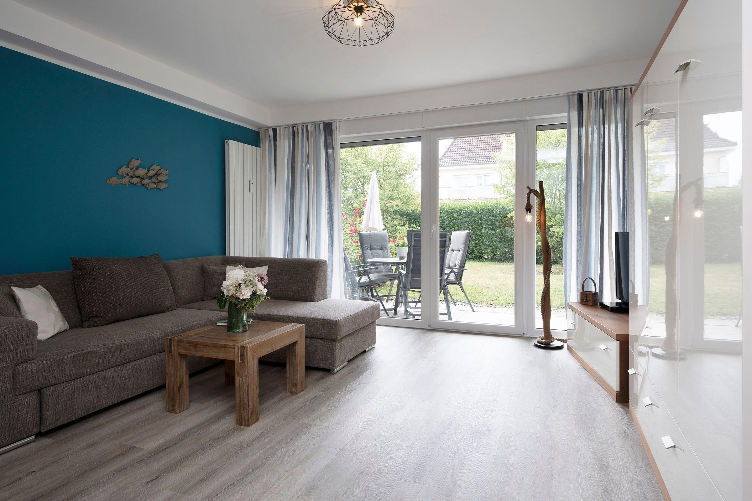 Moderne Ferienwohnung Küstenblau mit Terrasse
