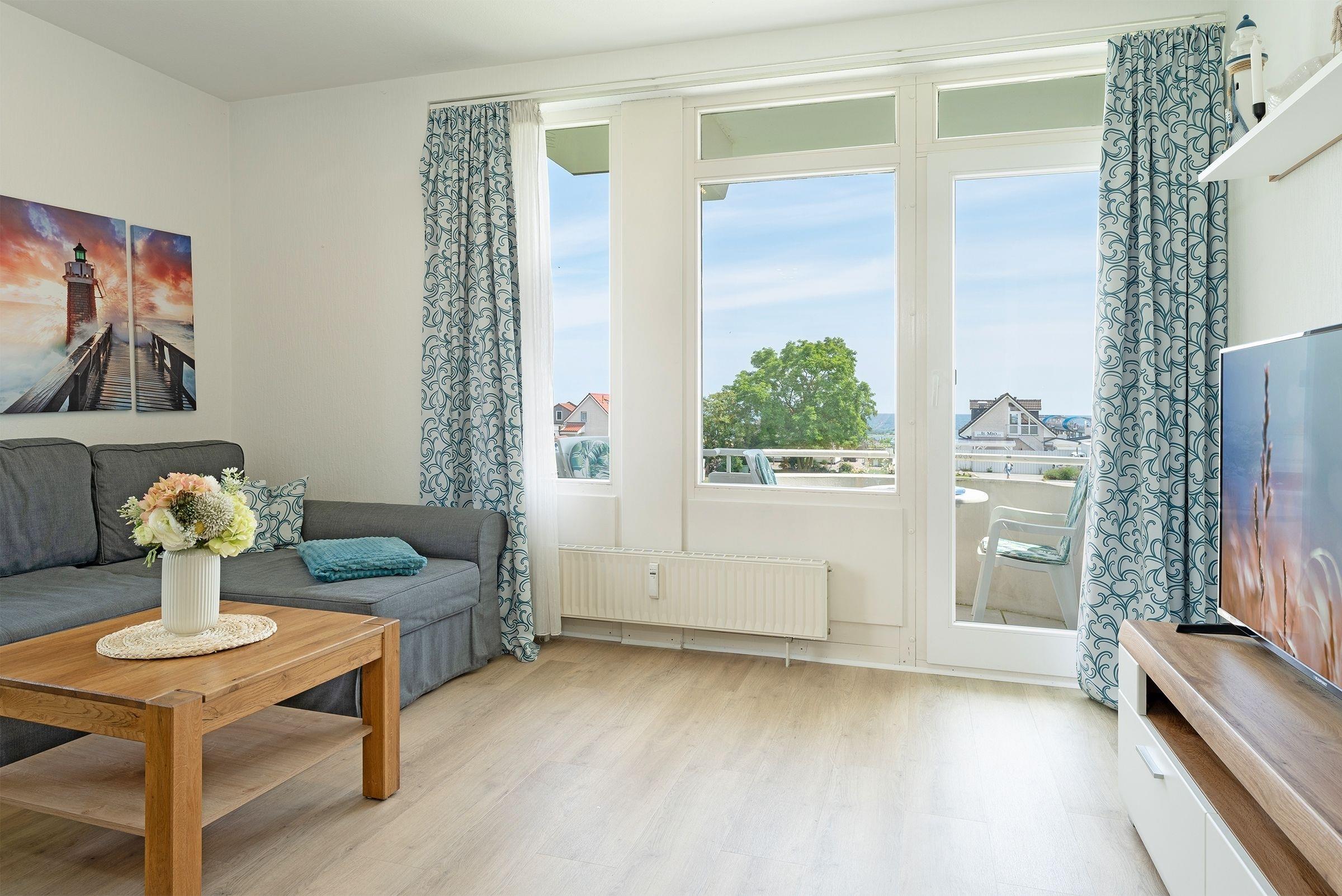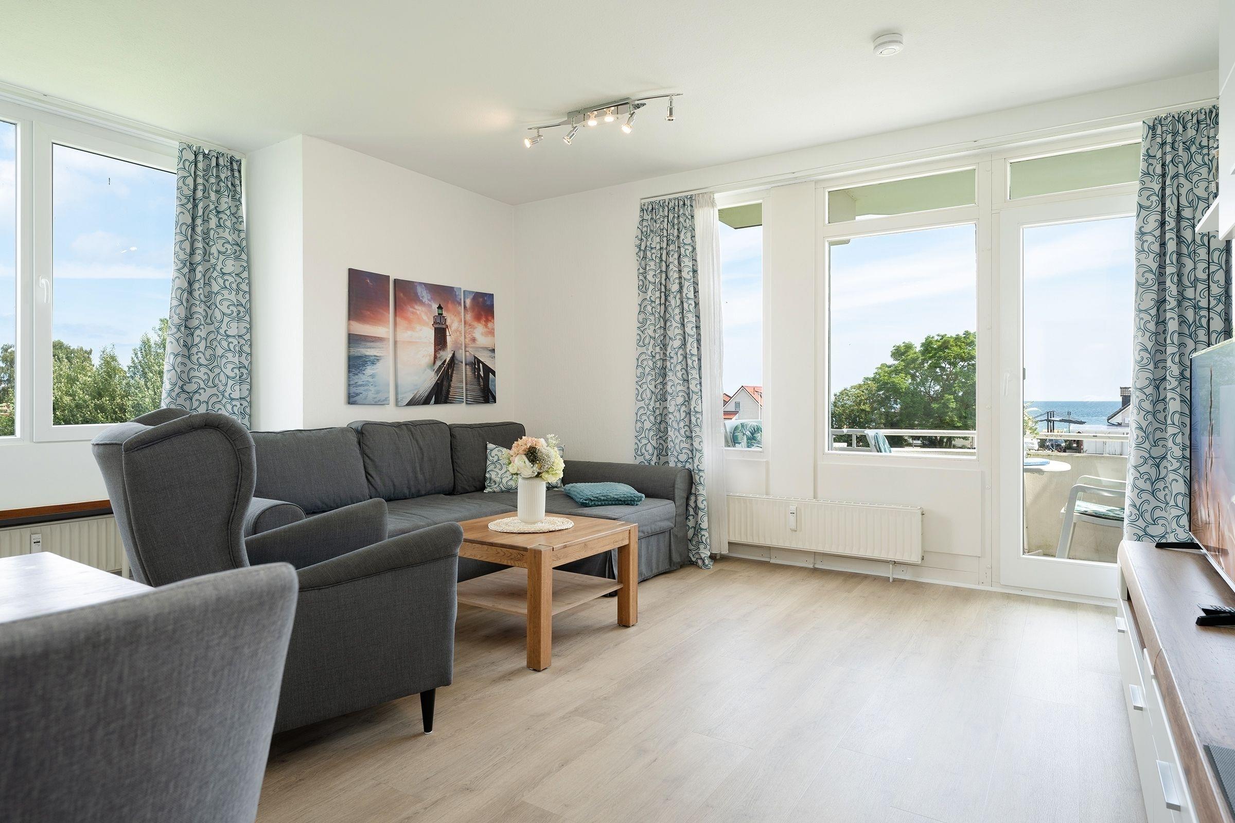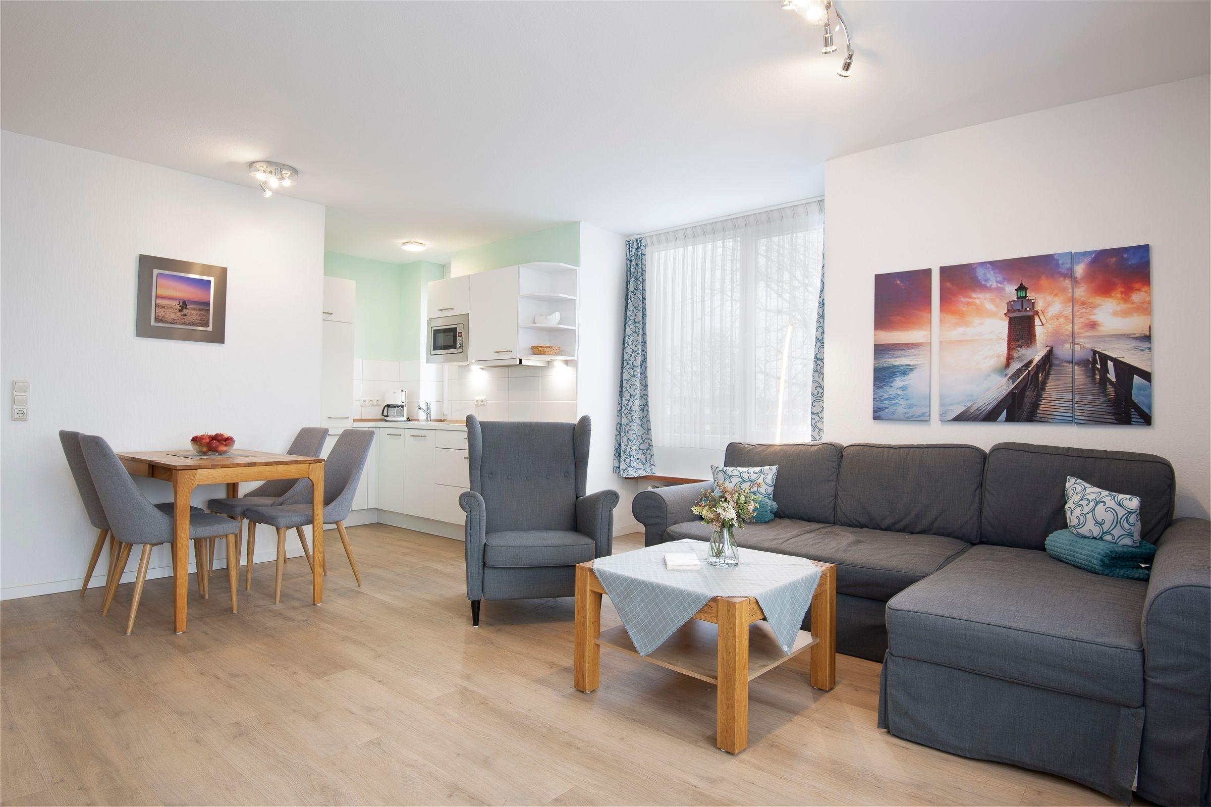 Diese strandnahe 2-Zimmer-Ferienwohnung mit Balkon befindet sich in der 1. Etage der Appartementhausanlage Haus Seeblick. Mit einer Wohnfläche von ca. 50 m² ist die Wohnung für bis zu 4 Personen geeignet.