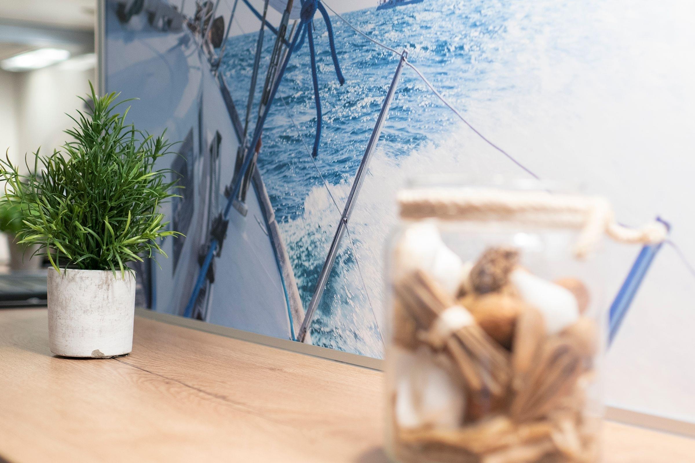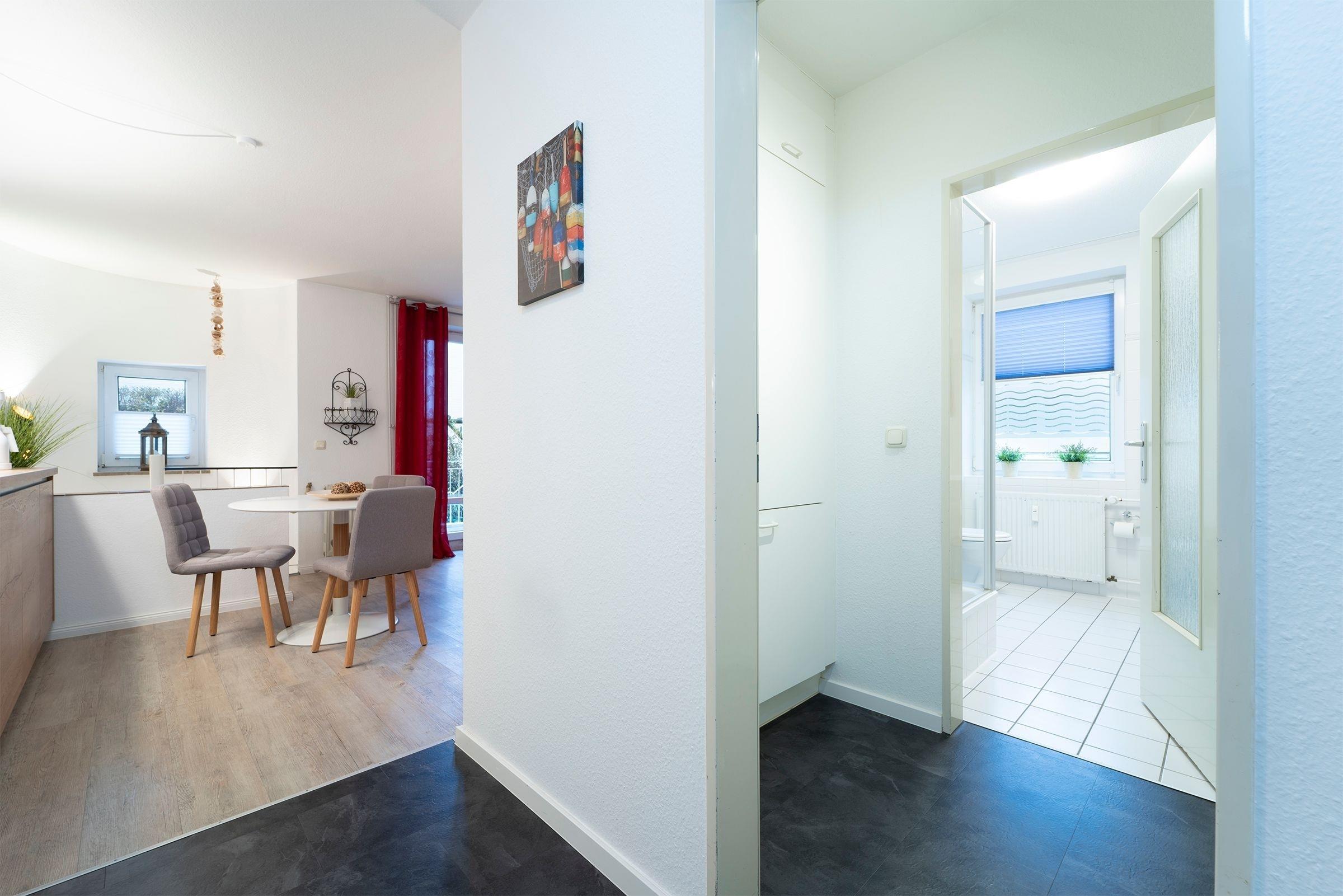 Die 2-Zimmer-Ferienwohnung Muschel für bis zu 4 Personen befindet sich im Hochparterre des Hauses Gorch Fock und umfasst eine Wohnfläche von ca. 48 m².