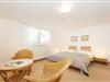 Vom Wohnungsflur aus führt eine Treppe ins wohnlich gestaltete Untergeschoss. Hier ist der offene Wohn-/Schlafbereich mit Sofa und Sesseln und zweitem TV gemütlich eingerichtet. In den Wohnraum integriert ist der Schlafbereich mit hochwertigem Doppelbett (2x 90x200 cm), Nachtisch mit Leselampe, sowie geräumigem Kleiderschrank. Ein zweites Schlafzimmer bietet mit einem Einzelbett (90x200 cm) in lauschiger Schlafnische, Leselampe, Kommode und Kleiderschrank einen weiteren schönen Schlafplatz. Der WLAN-Anschluss ist inklusive.