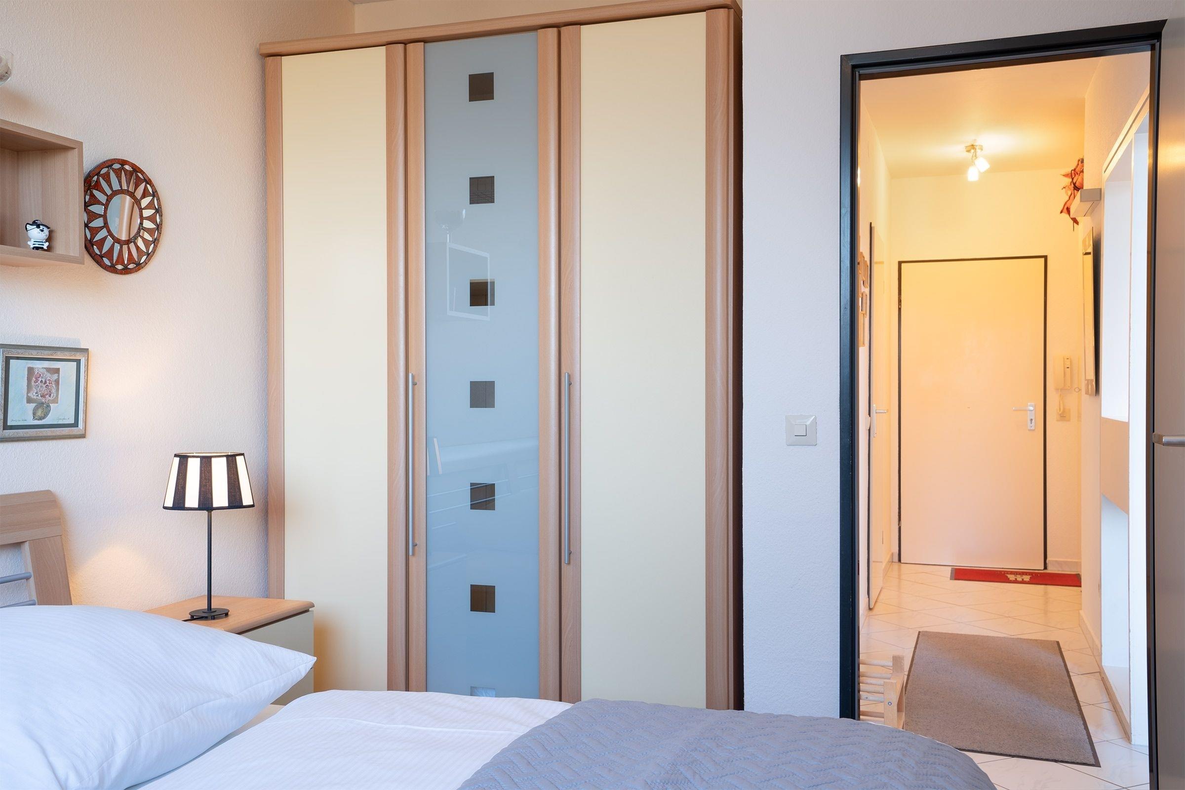 Schlafzimmer: 1 Doppelbett (2x 90x200 cm), Kleiderschrank, Verdunkelung (Jalousie)