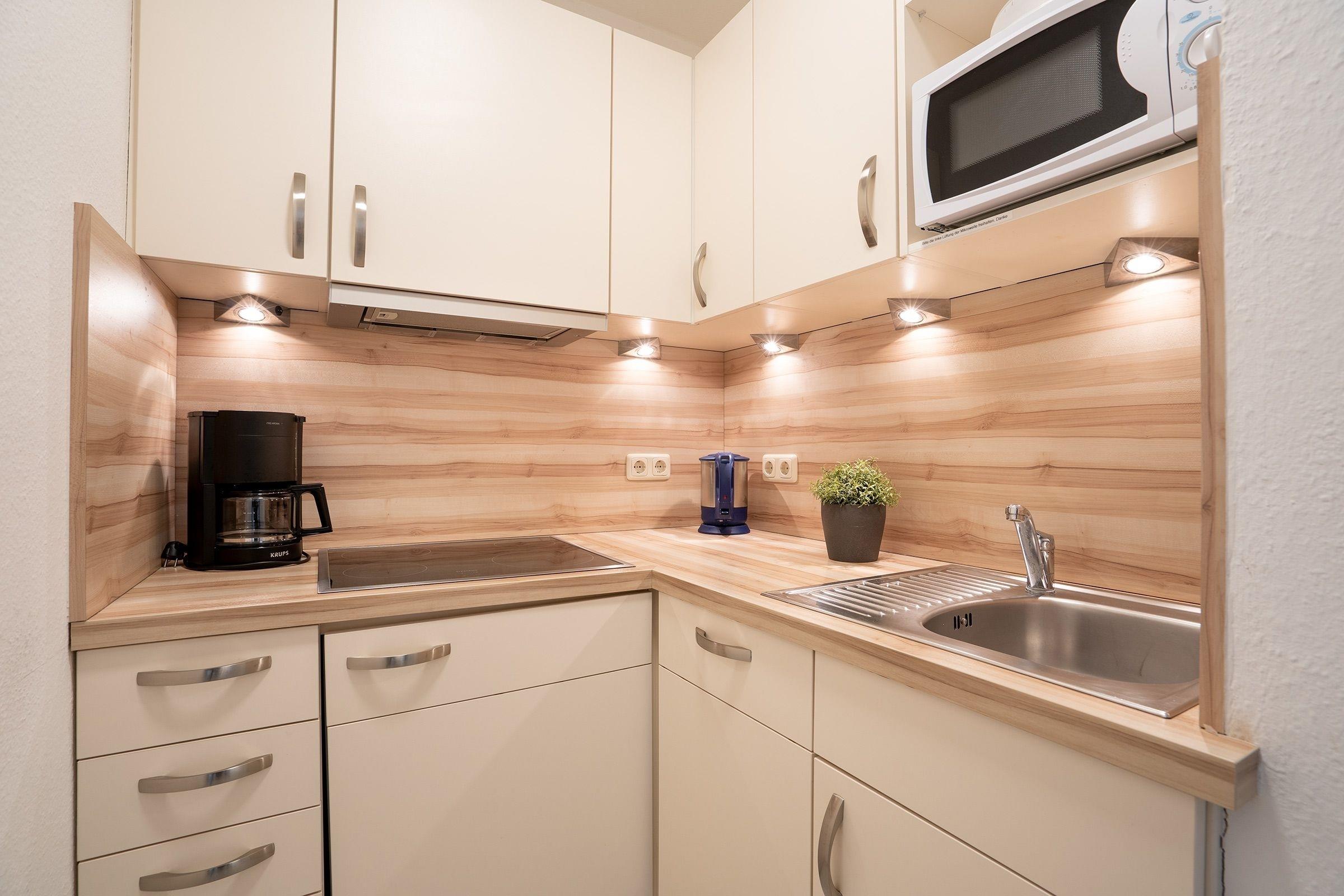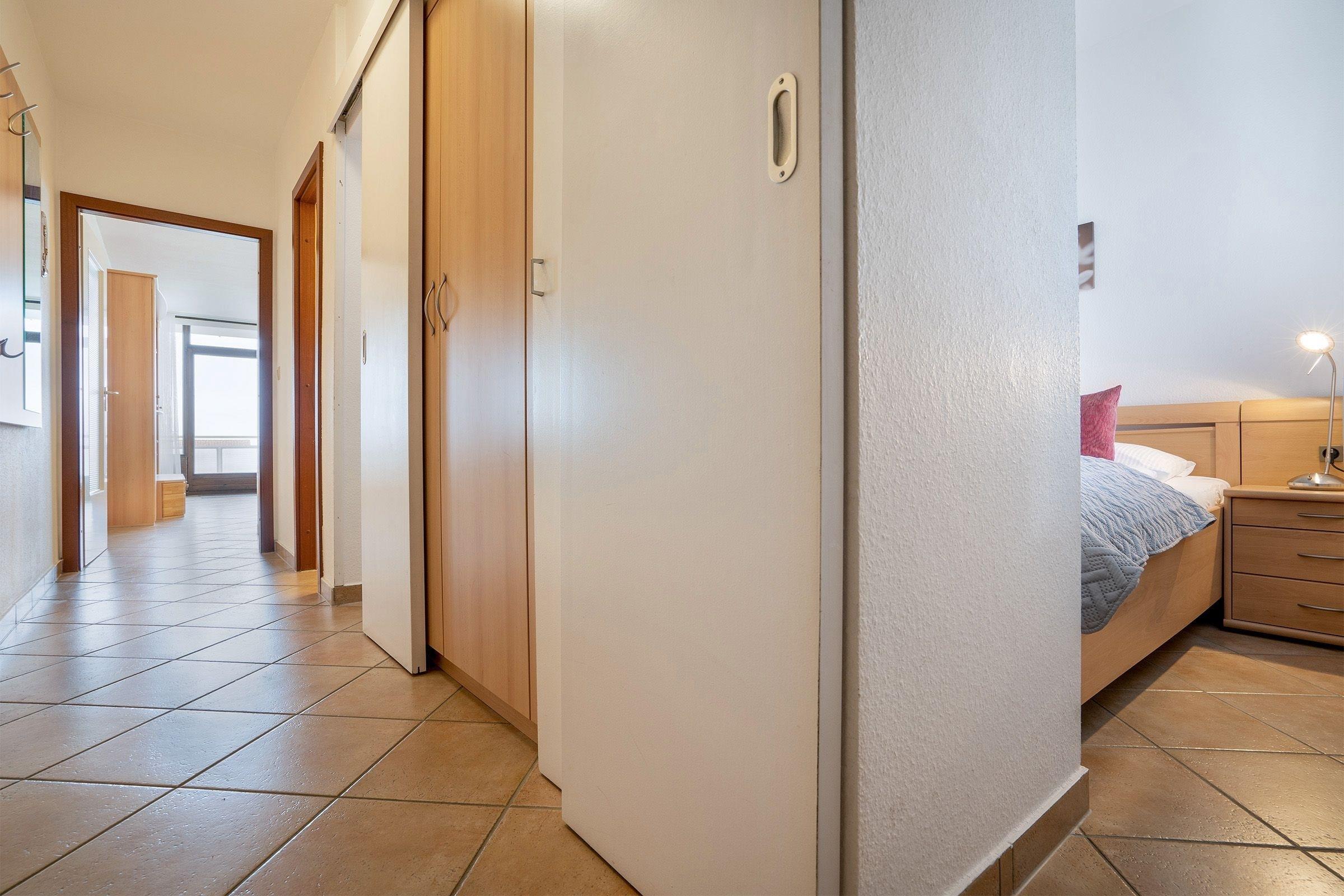 Herzlich Willkommen in dem gemütlich eingerichteten Wohn-/Essbereich. Selbstverständlich steht Ihnen hier bei der Couchecke ein Flachbildschirm zur Verfügung. Mit wunderbarem Ausblick können Sie in der Essecke direkt am großen Fenster Platz nehmen. Schmieden Sie hier Ihre Pläne für tolle Ausflüge an der Küste – oder relaxen Sie direkt auf dem Balkon und genießen die Sonne. Ihre Speisen können Sie in der separaten Küche mit moderner Ausstattung zubereiten. Sämtliche Geräte, die das Kochen erleichtern, stehen für Sie bereit. Dazu natürlich auch eine Spülmaschine. Angenehme Nachtruhe finden Sie in dem Doppelbett (2x 90x180 cm) im sogenannten Moltke-Schlafzimmer, das von 2 Seiten begehbar ist. Ein funktionales Duschbad rundet das Angebot ab.