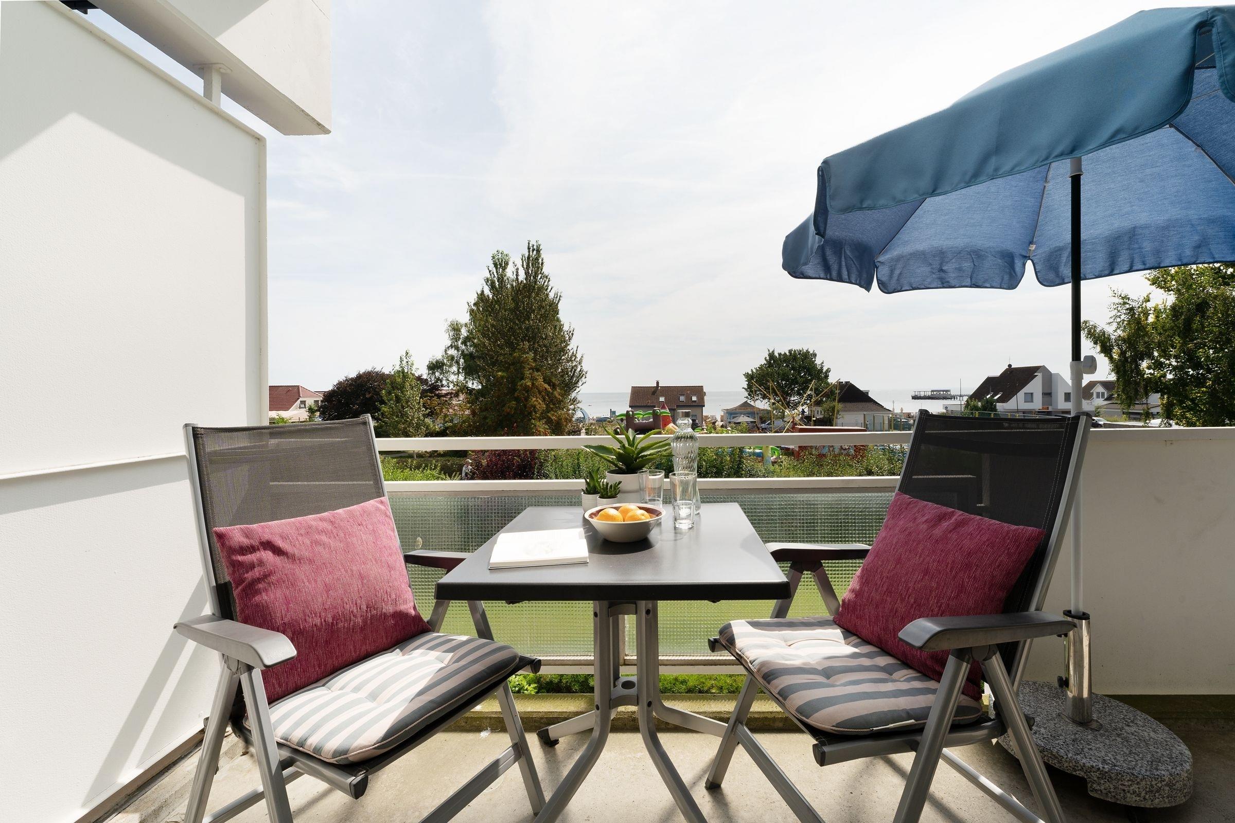 Moderne Ferienwohnung Meeresfunkeln mit Balkon und Seeblick in Kellenhusen, nur 50 m vom Strand entfernt.