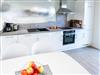 Die moderne angrenzende und voll ausgestattete Küche lässt keine Wünsche offen, ein 4-Platten-Ceranfeld und Backofen, Kühlschrank, Spülmaschine, Kaffeemaschine, Toaster und Wasserkocher etc. gehören zum Inventar.