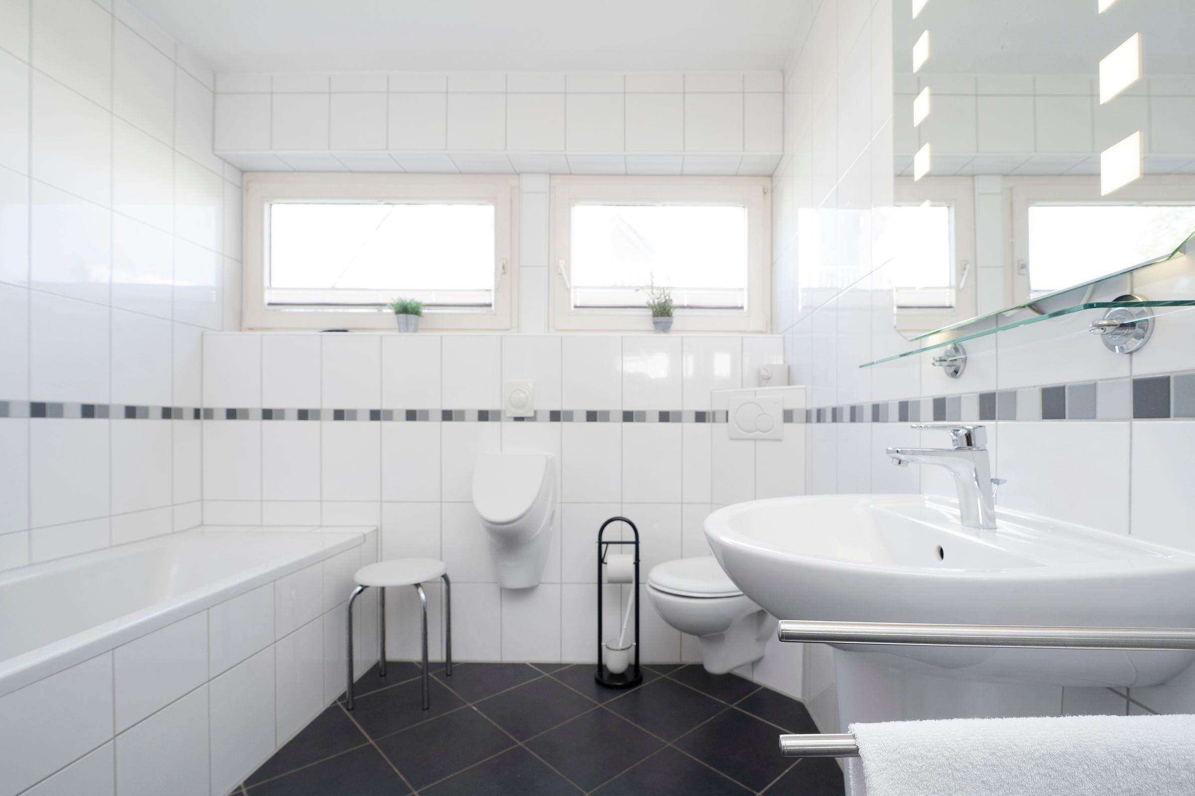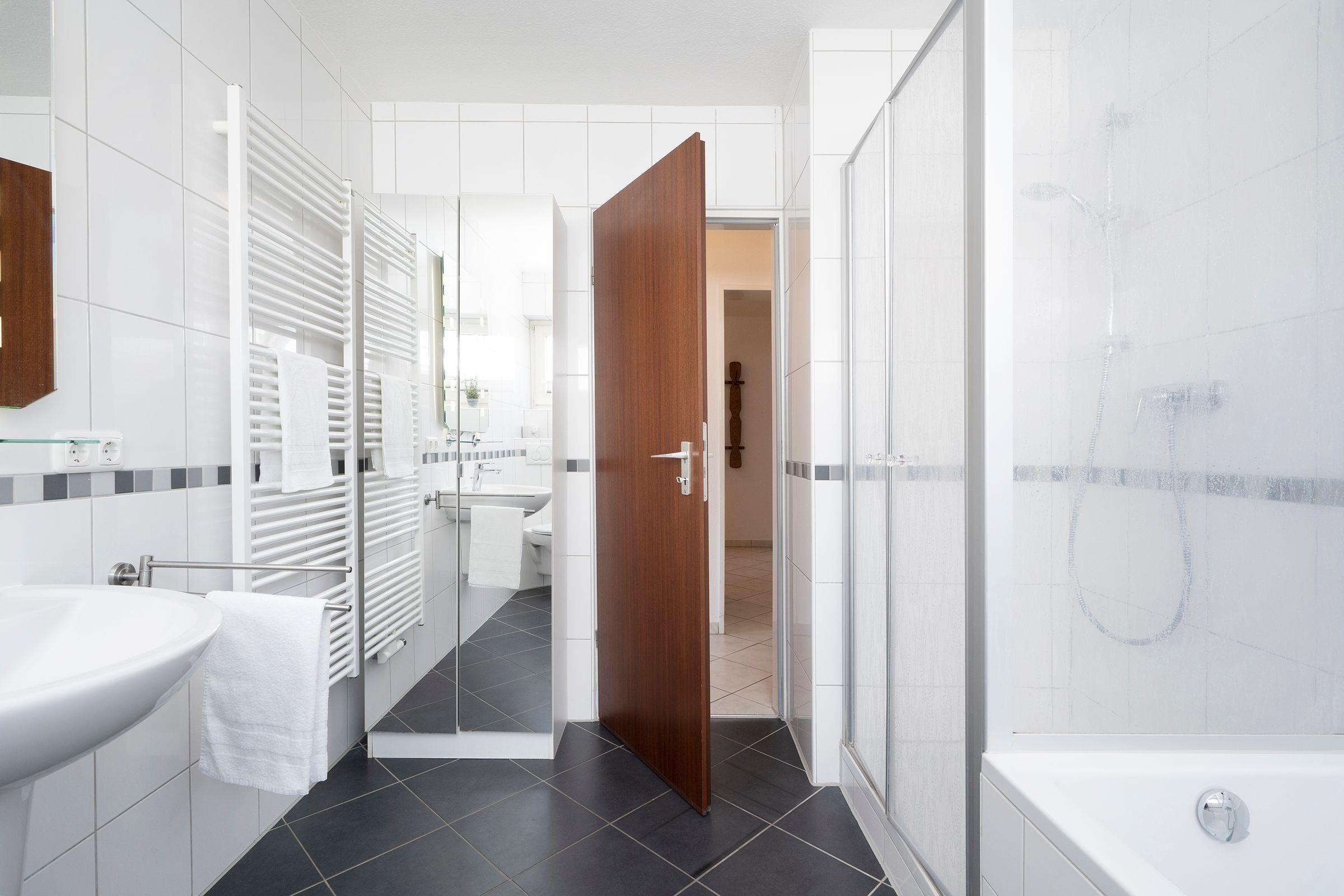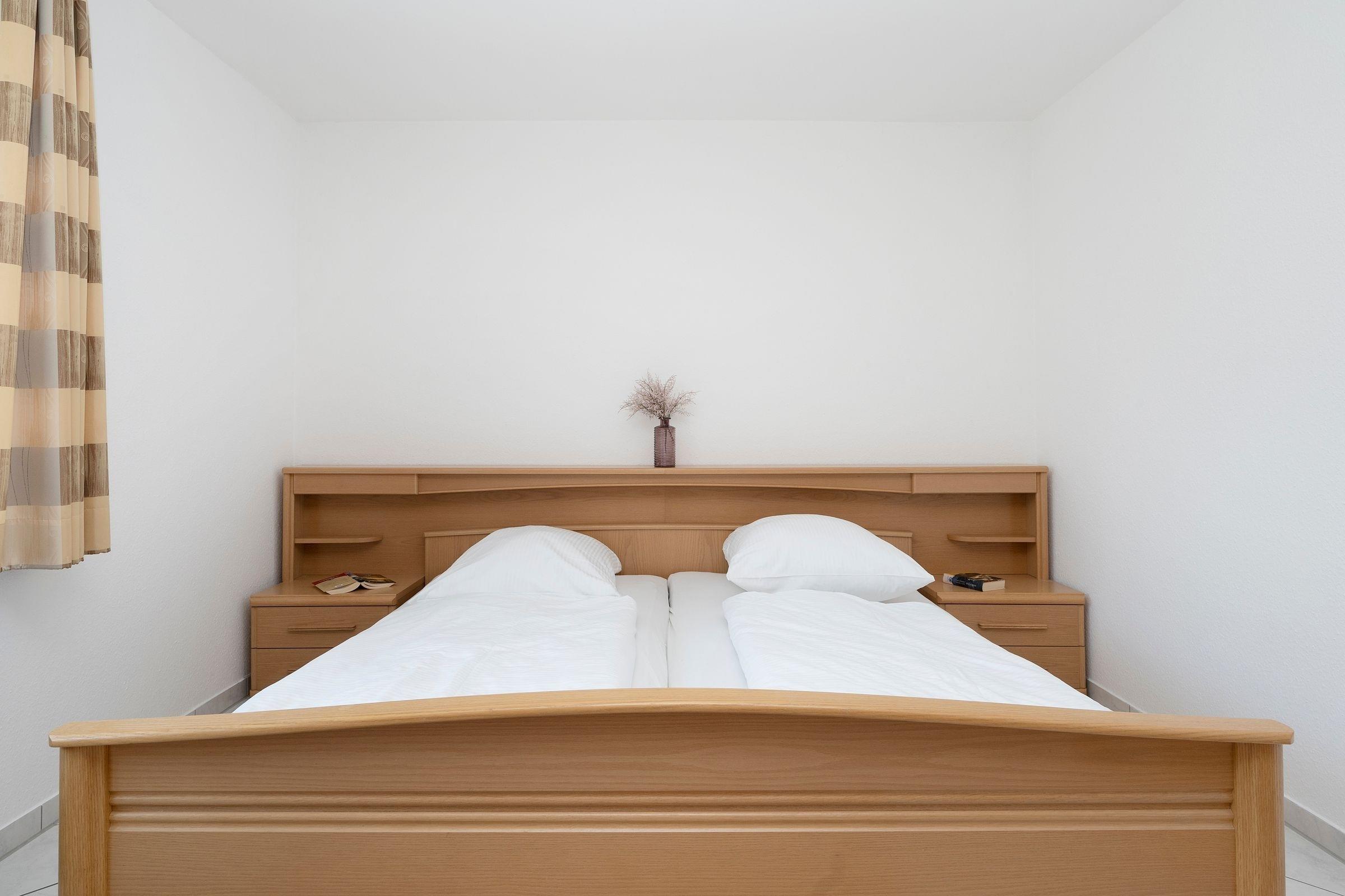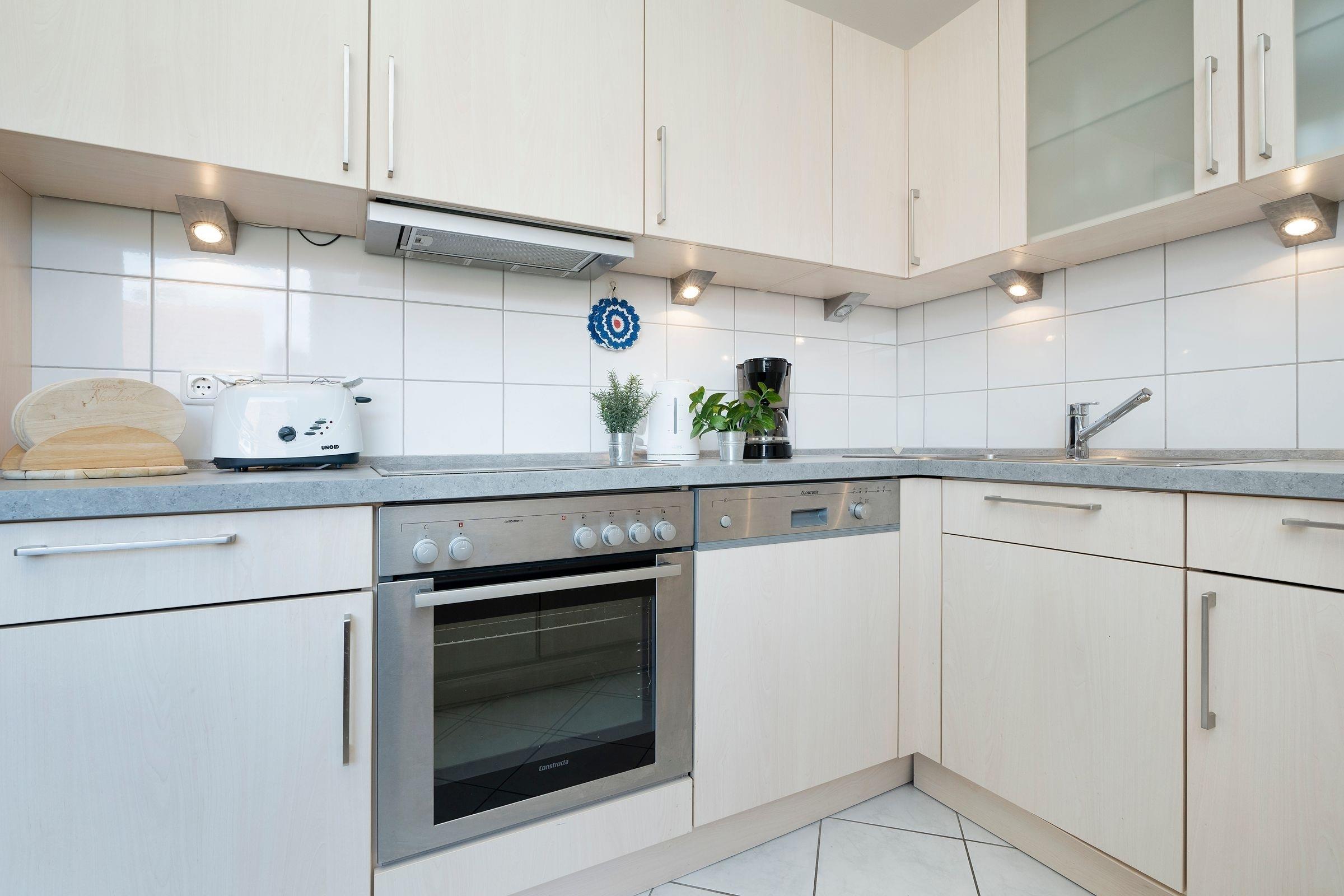 Diese Ferienunterkunft empfängt Sie mit einem großzügigen Wohn- und Essbereich. Der Wohnbereich bietet mit großem Ecksofa und TV ausreichend Platz für alle Urlaubsgäste, um einen gemütlichen Filmabend zu verbringen. Von hier haben Sie Zugang zur Südterrasse mit Markise und Strandkorb, auf der Sie Ihren Tag mit einem ausgiebigen Frühstück beginnen können. Über den Flur erreichen Sie die separate Küche, in der Sie mit Kühlschrank-/Gefrierkombination, Geschirrspüler, Backofen, 4-Platten-Ceranfeld und Kaffeemaschine bei der Zubereitung köstlicher Speisen Ihrer Kreativität freien Lauf lassen können. Außerdem verfügt diese Wohnung über zwei geräumige Schlafzimmer mit jeweils einem Doppelbett (je 2x 100x200 cm). Das helle große Bad ist ausgestattet mit Badewanne (170x75 cm), Dusche mit flachem Einstieg und Handtuchwärmer und komplettiert einen angenehmen Aufenthalt.
