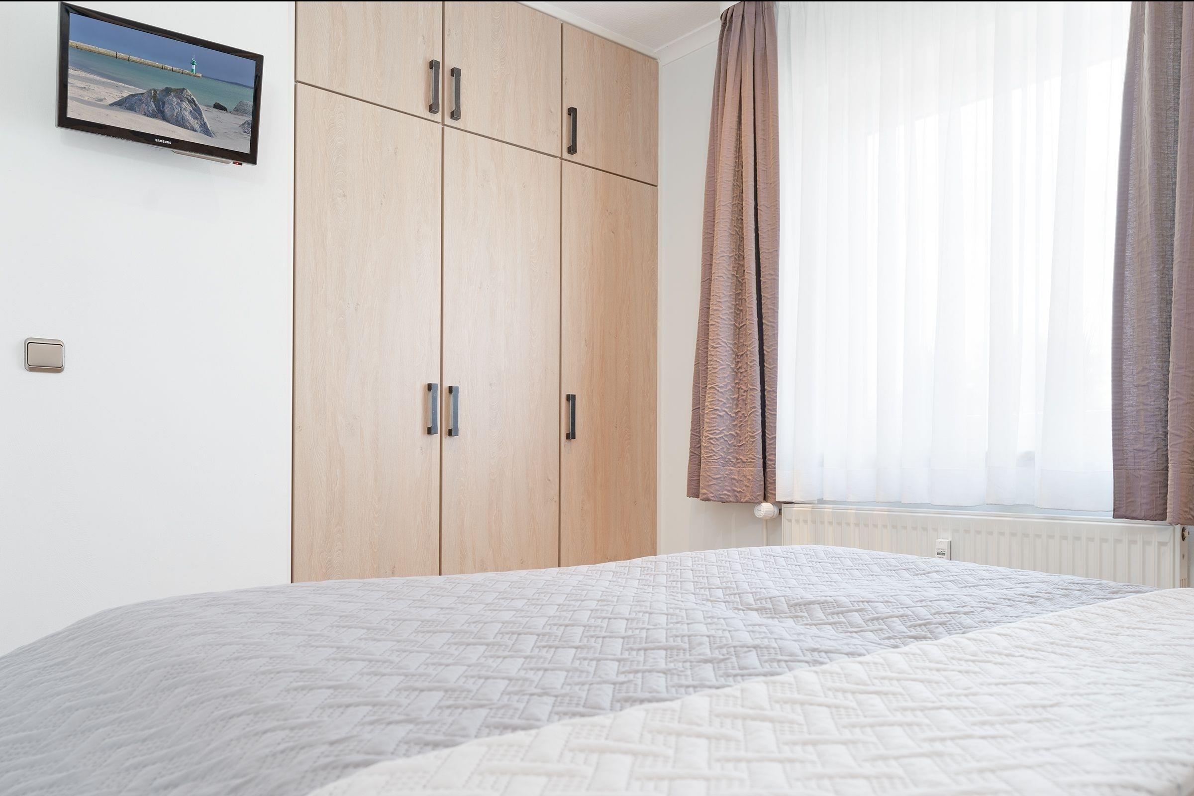 Schlafzimmer: 1 Boxspringbett (2x 90x200 cm) durchgehender Topper (180x200 cm), Kleiderschrank, Verdunkelung