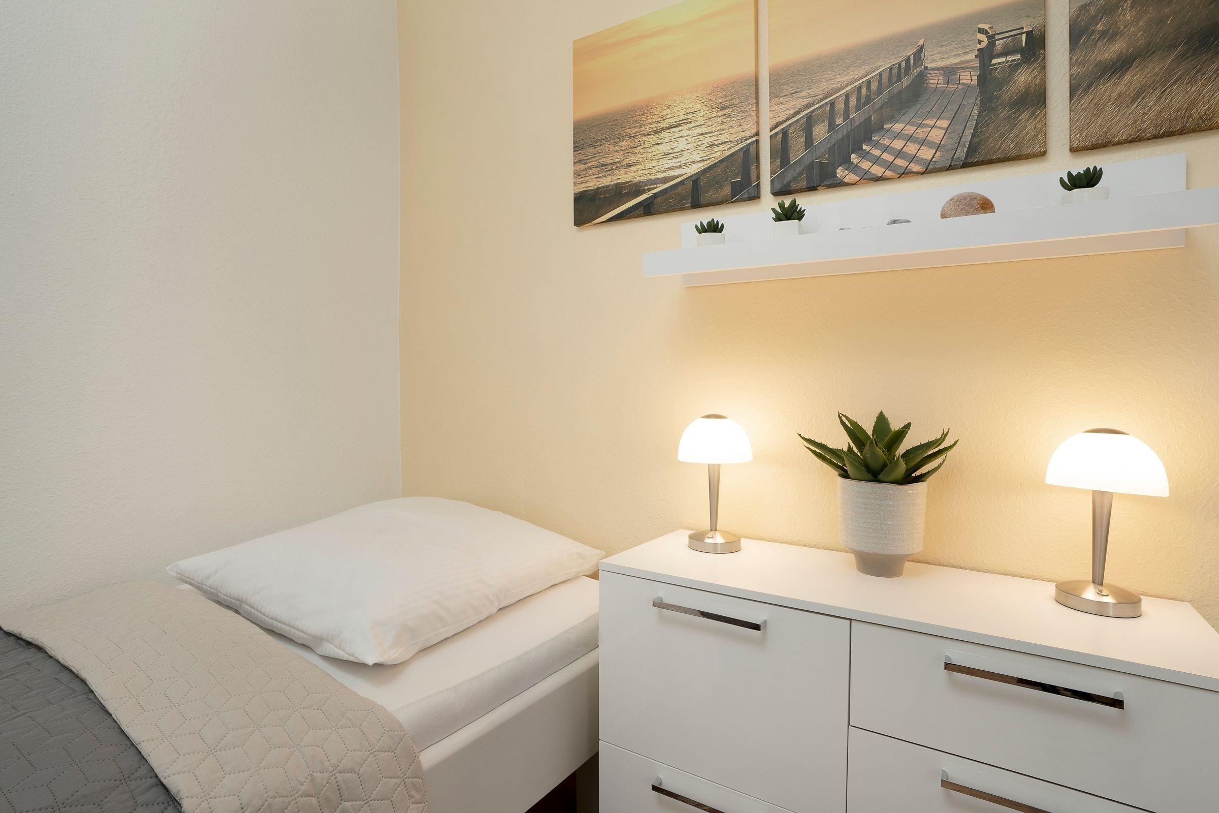 Schlafzimmer: 2 Einzelbetten(2x 90x200 cm), Kleiderschrank.