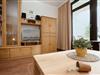 Im gemütlichen Wohnzimmer mit offener Küche werden Sie erholsame Urlaubsstunden verleben. Die geschmackvolle Couchgarnitur lädt zu kuscheligen Abenden vor dem Flachbild-TV oder intensiven Gesprächen bei einem Glas Wein ein. Die Küche mit Geschirrspüler ist gut ausgestattet, sodass Sie sich selbst kulinarisch verwöhnen können. Ausreichend Platz zum Essen finden Sie am geräumigen Esstisch. Absolutes Highlight ist der möblierte Balkon mit phänomenalem Blick auf unsere wunderschöne Ostsee. Hier können Sie die Seele baumeln lassen und die Sonne genießen. In einem kleinen, separaten Schlafzimmer mit getrennt stehenden Betten (je 90x200 cm) können Sie sich nach einem ereignisreichen Urlaubstag entspannen. Ein hell gefliestes Duschbad rundet die Ausstattung dieser niedlichen Ferienwohnung ab.