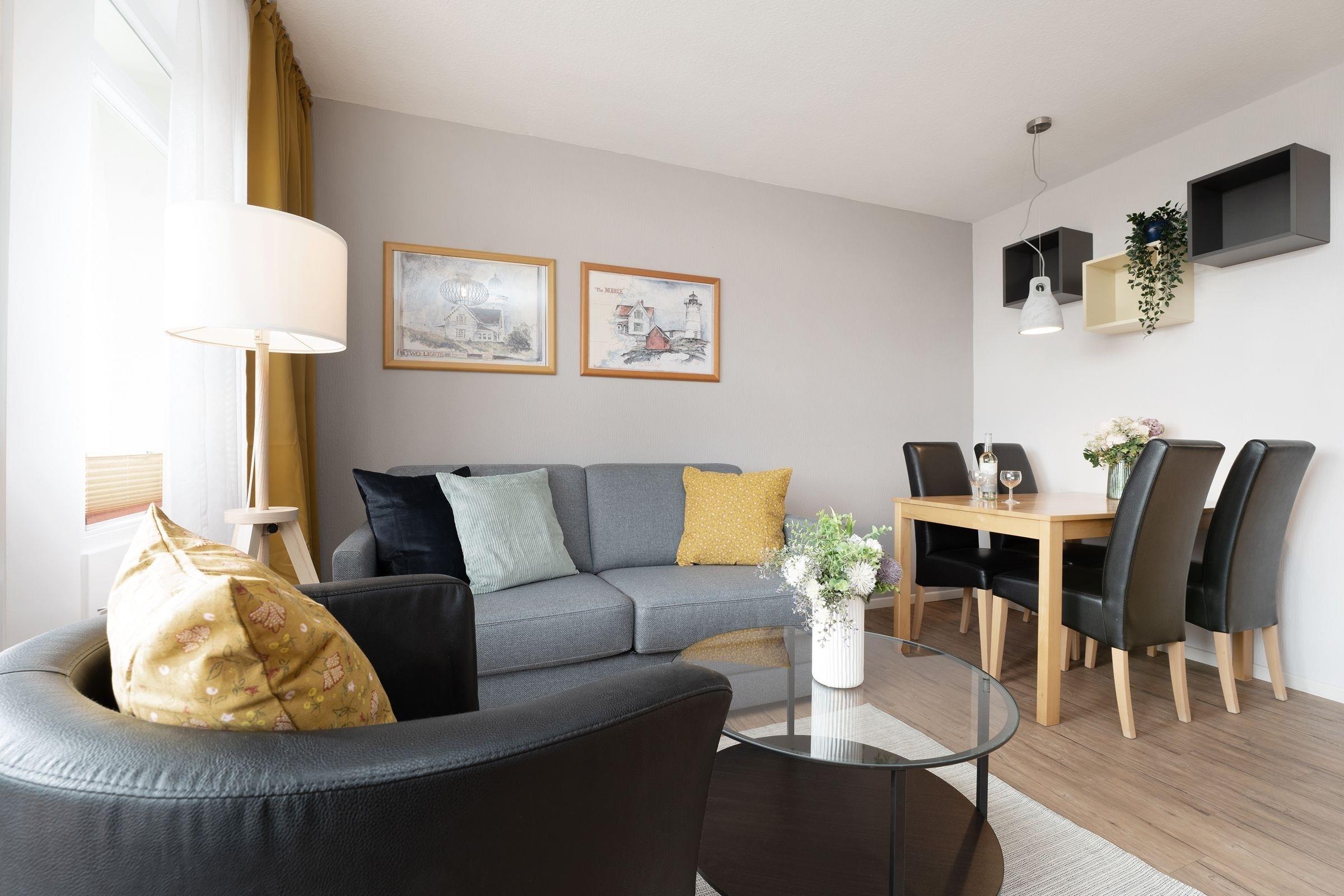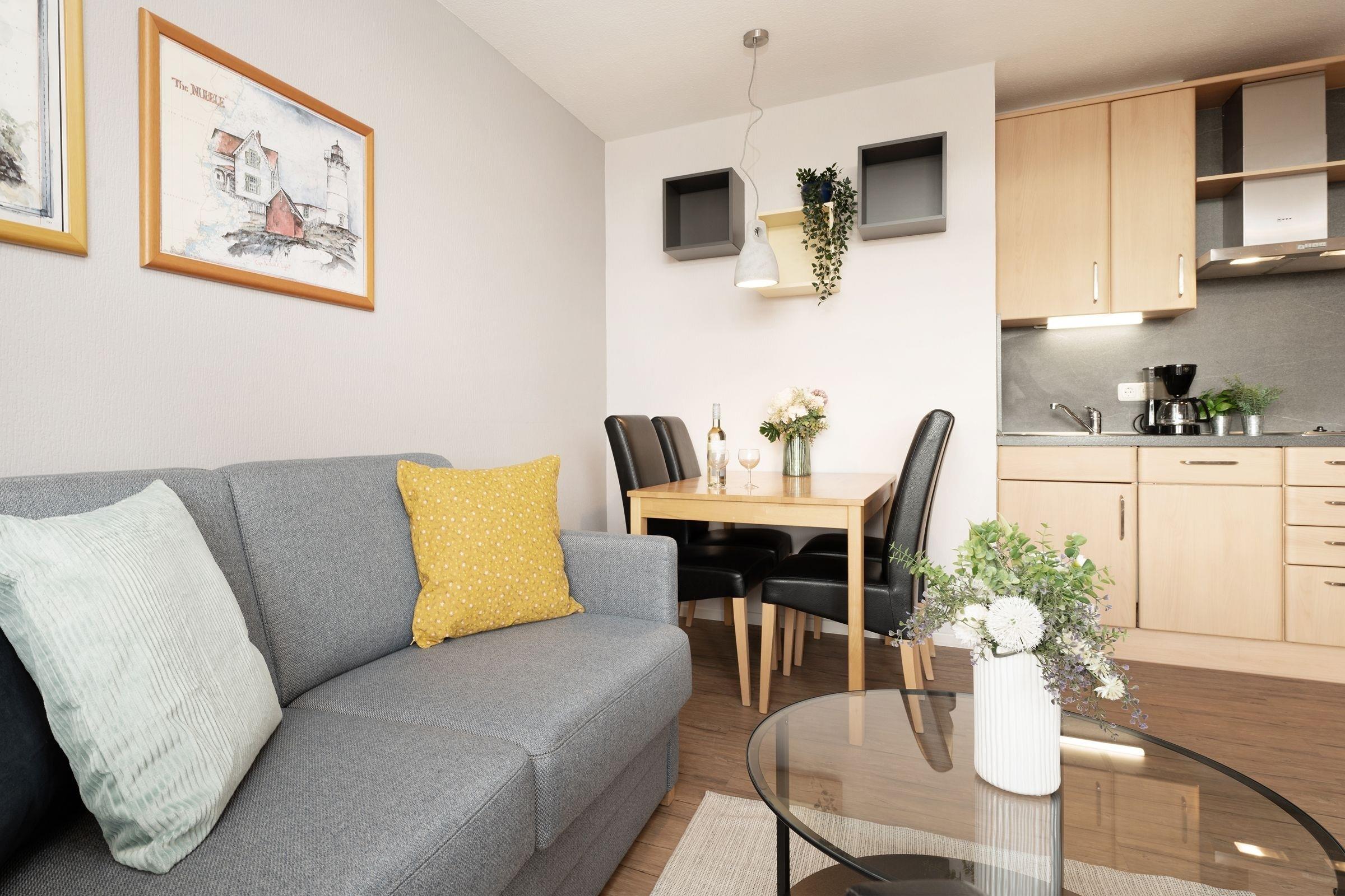 Urlaub in der 1. Reihe von Kellenhusen: 2-Zimmer-Ferienwohnung im Haus Seeblick mit ca. 39 m² Wohnfläche und Terrasse mit Meerblick für bis zu 4 Personen.
