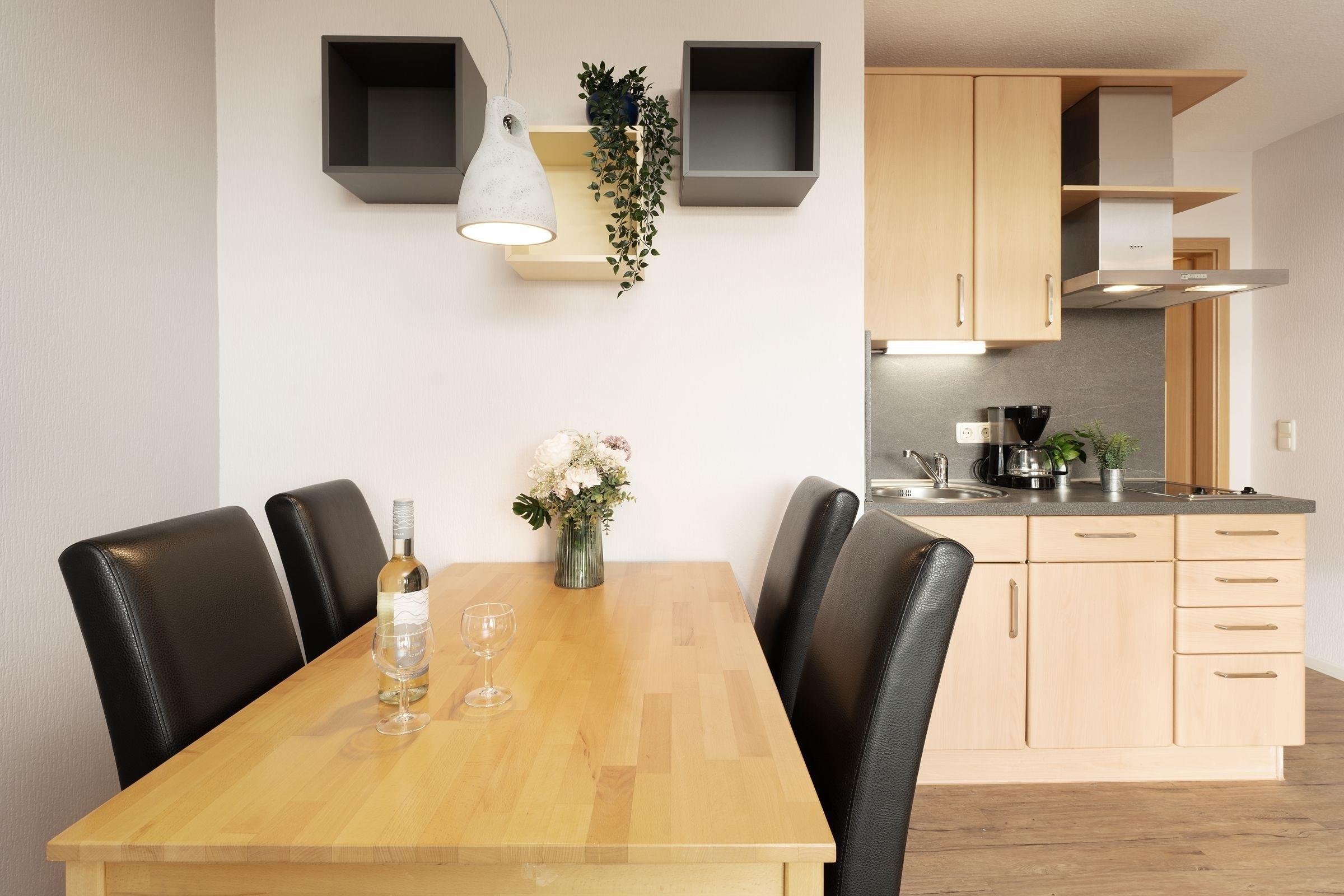 Der Ostsee so nah ... Treten Sie ein in Ihre modern eingerichtete Ferienwohnung. Sowohl gemütliche Filmabende als auch erholsame Nächte erwarten Sie im liebevoll gestalteten Wohnschlafzimmer mit einer Schlafcouch (150x180 cm). Für ausreichend Unterhaltung sorgen der Kabel-TV (Flachbild) mit DVD-Player und ein Radio. Ein Highlight dieser Ferienwohnung ist die Terrasse mit Meerblick und Morgensonne. Ideal, um die ersten warmen Sonnenstrahlen zu genießen und mit einem ausgiebigen Frühstück in den neuen Urlaubstag zu starten. In der hochwertig ausgestatteten Küche mit Ceranfeld, Kühl-Gefrier-Kombi, Mikrowelle, Toaster etc. finden Sie alle wichtigen Geräte und Utensilien, um Ihre Lieblingsgerichte auch im Urlaub problemlos zuzubereiten. Im hell eingerichteten Schlafzimmer erwartet Sie ein komfortables Doppelbett (2x 90x200 cm), das für süße Träume und einen erholsamen Schlaf sorgt. Abgerundet wird das Angebot durch das moderne Duschbad mit komfortabler bodentiefer Dusche.