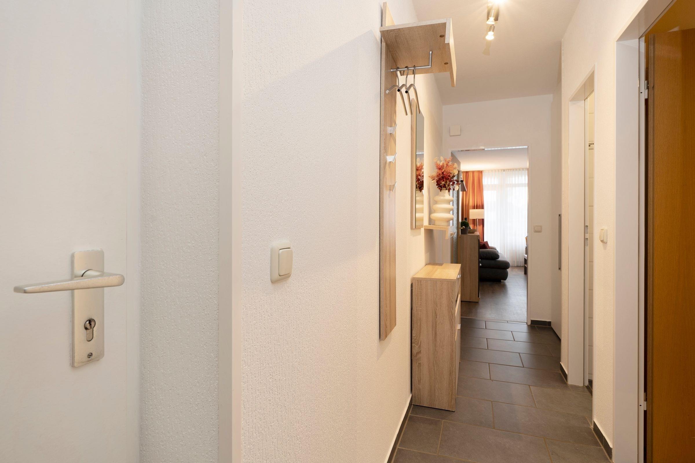 Es erwartet Sie eine modern gestaltete Wohnung mit offenem Raumkonzept. Betreten Sie den Wohnbereich mit praktischer Doppelbettcouch (ca. 180x200 cm), die tagsüber zum Füße hochlegen und in der Nacht zu einem erholsamen Schlaf einlädt. Ein Kabel-TV mit Flachbildfernseher, DVD-Player, Radio mit CD sorgen für reichlich Unterhaltung an ruhigeren Urlaubstagen. Mit einer sonnigen Terrasse bietet diese Ferienwohnung den perfekten Ort, um Sonne zu tanken und die frische Meeresbrise zu genießen. In der voll ausgestatteten Küche mit Essecke, Geschirrspüler, Ceranfeld, Mikrowelle, Kaffeemaschine, Toaster, Kühlschrank mit Gefrierfach, Wasserkocher etc. können Sie nach Herzenslust kochen und leckere Gerichte zaubern, sei es ein ausgiebiges Frühstück, ein frischer Fisch aus der Region oder ein feines Abendessen. Das behagliche Schlafzimmer mit einem Doppelbett (ca. 180x200 cm) bietet Ihnen den perfekten Rückzugsort für eine ruhige und erholsame Nachtruhe. Abgerundet wird diese Wohnung durch das neue Duschbad mit bodentiefer Dusche und WC.