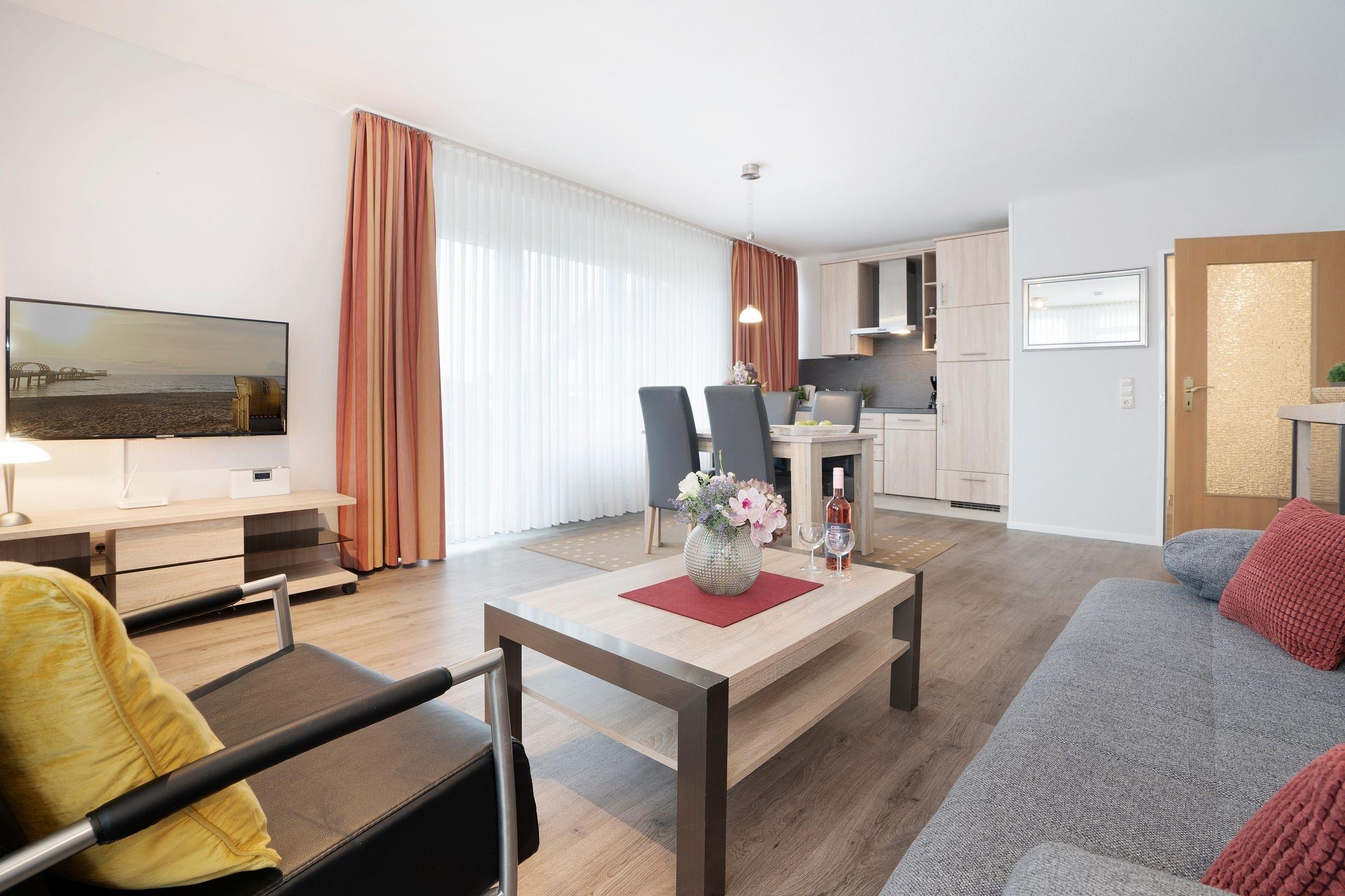 Schöne küstennahe 2-Zimmer-Ferienwohnung in Kellenhusen mit ca. 49 m² Wohnfläche und Terrasse im Haus Seeblick für 2-4 Personen.