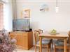 Ankommen und wohlfühlen – die niedliche Ferienwohnung im Appartementhaus Im Sonnenwinkel besticht durch ihre liebevoll ausgesuchte Einrichtung. Kommen Sie herein und nehmen Sie in der gemütlichen Sitz-Ecke Platz. Ob auf dem komfortablen Sofa oder den beiden Sesseln, hier findet jeder seinen Lieblingsplatz vor dem TV-Gerät. (Das Sofa lässt sich ausziehen und kann als Ausweich-Schlafplatz genutzt werden.) Auch die schicke Ess-Ecke ist großzügig gestaltet. Gleich dahinter haben Sie Zutritt auf die schöne Terrasse – wie wäre es hier mit ein paar erholsamen Sonnenstunden? Die Küchenzeile im Wohn- und Ess-Bereich verfügt über eine Spülmaschine und ist insgesamt gut ausgestattet. Angenehme Nachtruhe verspricht das Doppelbett (2x 90x200 cm) im Schlafzimmer. Die wunderbare Foto-Tapete lässt Sie garantiert von der Ostsee träumen. Um die Ecke finden Sie das moderne Duschbad, das einen guten Start in den Tag verspricht. Praktisch: Eine Waschmaschine und ein Trockner stehen Ihnen im Haus kostenfrei zur Verfügung.
