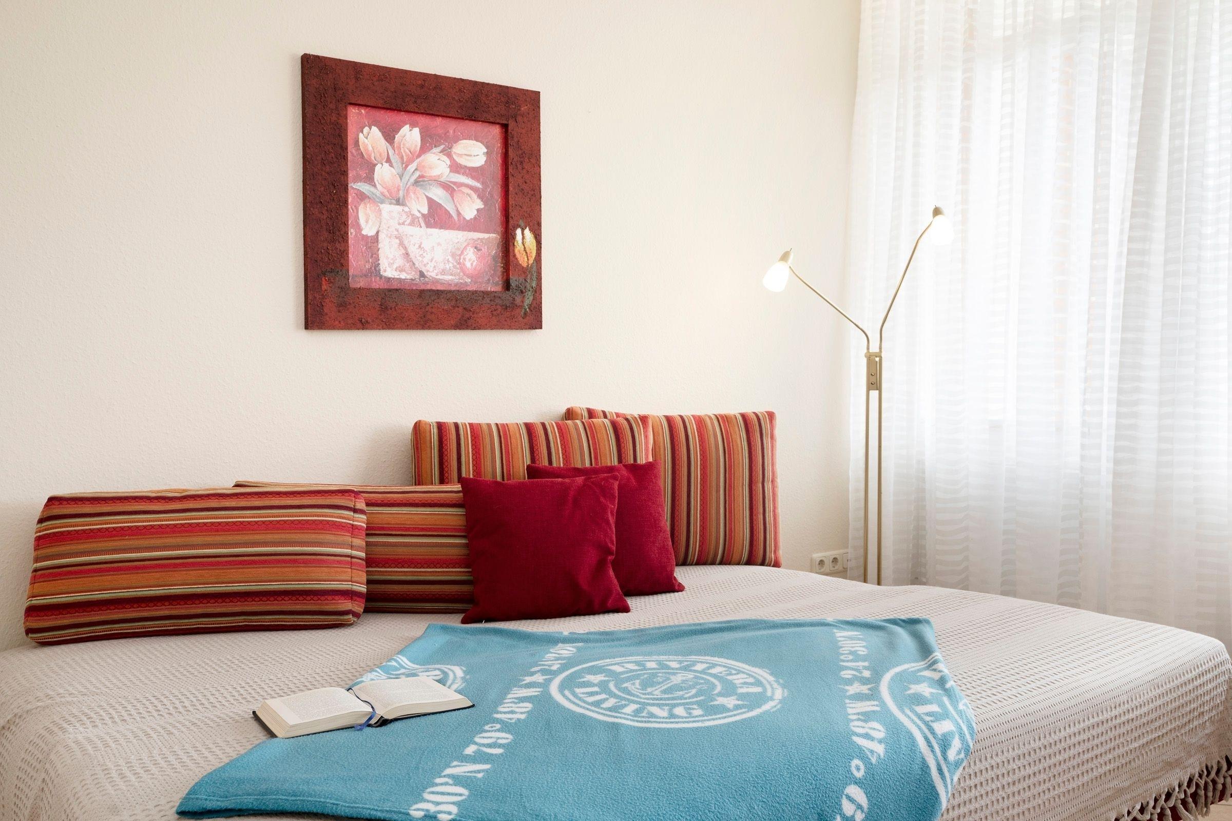 Gut durchdacht und liebevoll eingerichtet – die niedliche Ferienwohnung im Appartementhaus Im Sonnenwinkel bietet auf kleinem Raum alles, was das Urlaubs-Herz begehrt. Die schicke rote Couch und der Sessel laden zu gemütlichen Lese- oder auch TV-Stunden ein. Für die Nacht lässt sich die Couch bei Bedarf mühelos in ein Bett (ca. 2x 80x200 cm) verwandeln. Gleich nebenan haben Sie Zutritt auf den großzügigen Süd-Balkon. Genießen Sie hier den Sonnenschein und lassen Sie den Abend bei einem Glas Wein ausklingen. Die moderne Küchenzeile im Wohnbereich ist gut ausgestattet. Hier können Sie wunderbar Ihre Lieblingsspeisen zubereiten und anschließen in der Ess-Ecke Platz nehmen. Für die Nacht steht Ihnen ein Schlafzimmer mit einem Einzelbett (90x200 cm) zur Verfügung. Die schicke Foto-Tapete ist dabei ein echter Hingucker. Gleich nebenan befindet sich das moderne Duschbad, das einen guten Start in den Tag garantiert. Praktisch: Eine Waschmaschine und ein Trockner stehen Ihnen im Haus kostenfrei zur Verfügung.
