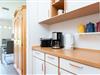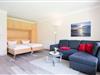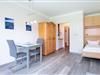 Die Wohnung verfügt über ein Wohn-/ Schlafzimmer mit Ecksofa, TV (Kabelanschluss), Esstisch und einem Kleiderschrank. Als Schlafmöglichkeit dient die Schrankwand mit ausklappbaren Betten (2x 90x200 cm). Die Küche ist zum Wohnzimmer offen und ist mit allen Notwendigkeiten wie z. B. Kaffeemaschine, Toaster, Wasserkocher und Kühlschrank ausgestattet. Ein hell gefliestes, innenliegendes Badezimmer mit Dusche und WC ist ebenfalls vorhanden. Viele schöne Stunden können Sie auf der sonnigen Terrasse verbringen...