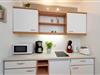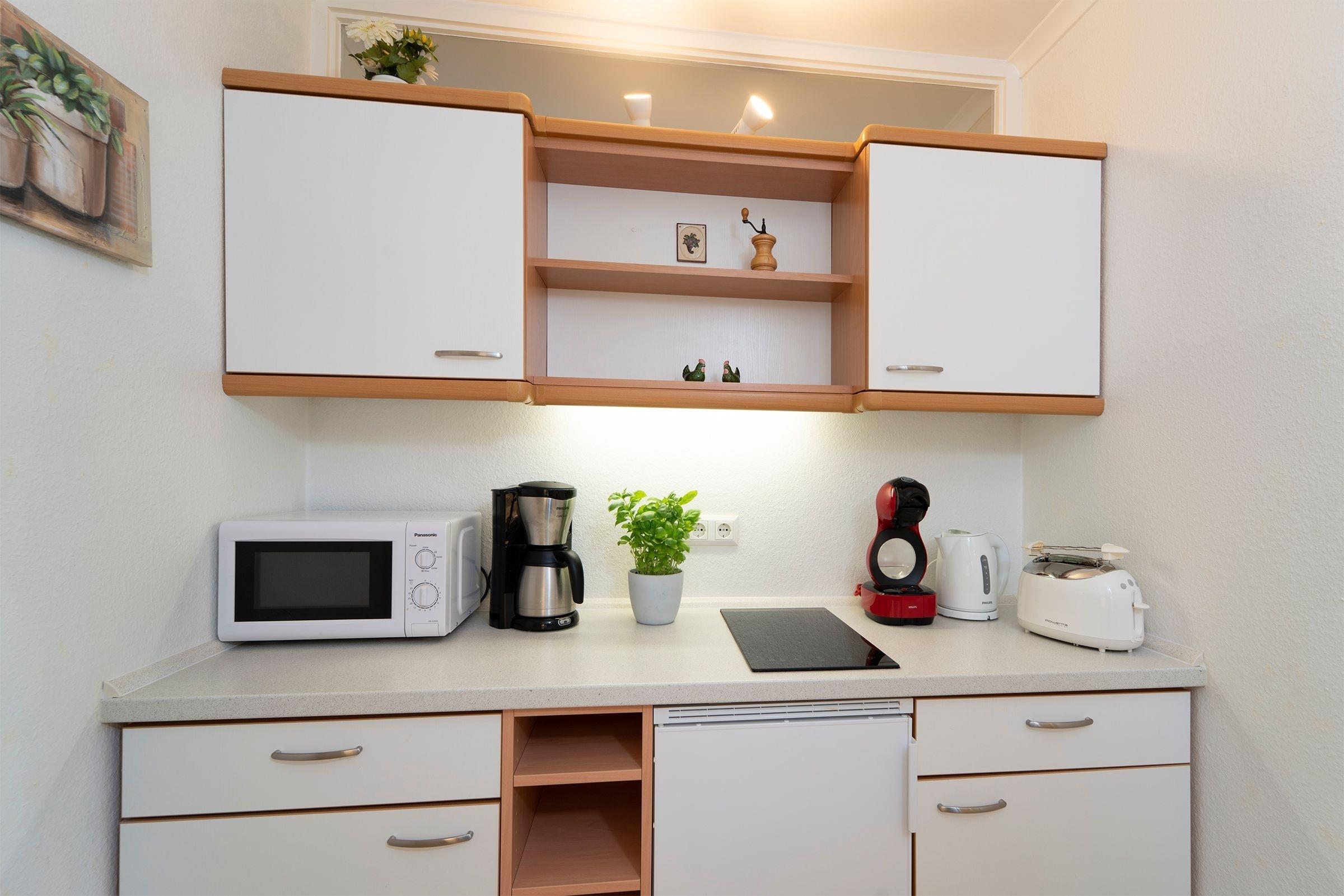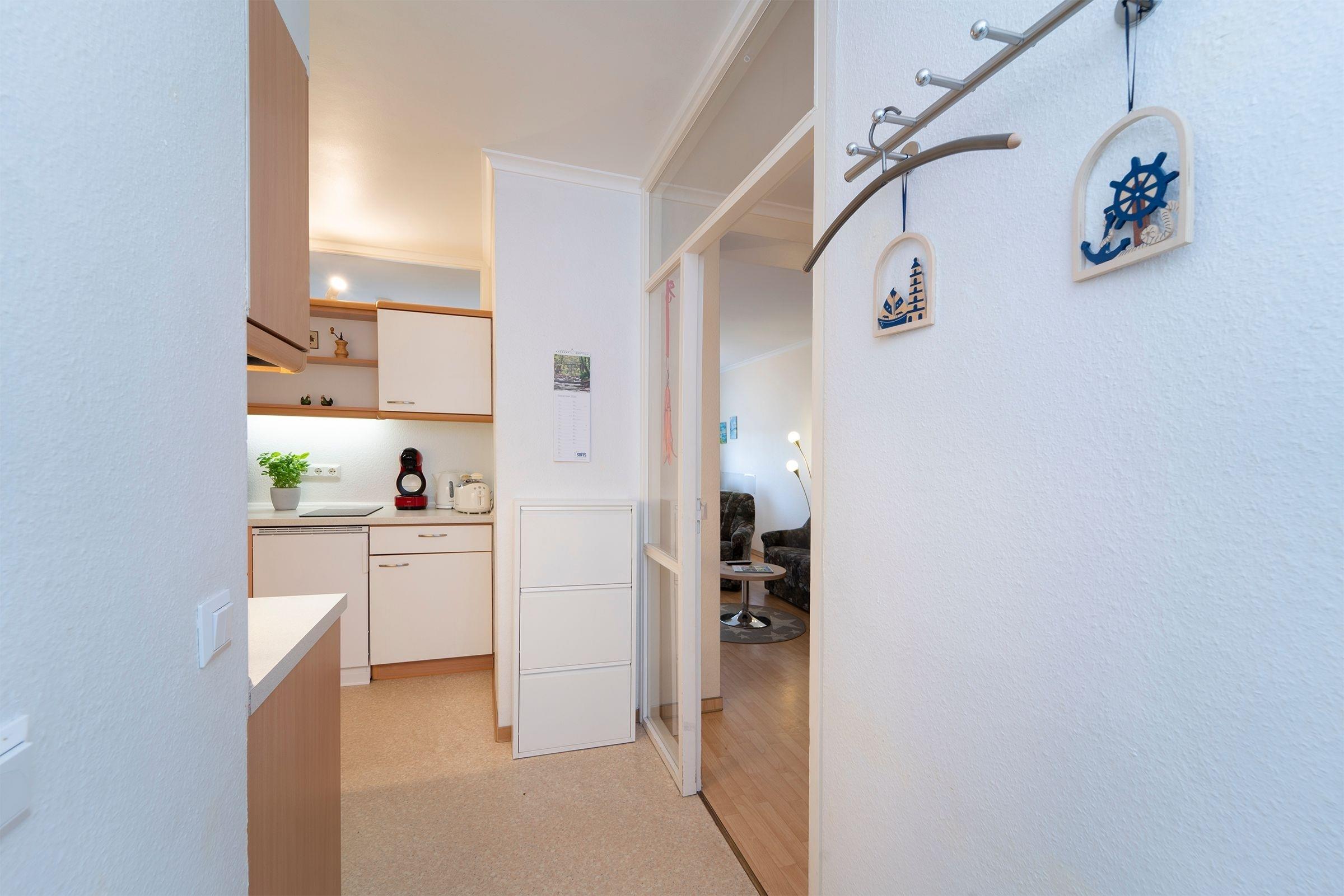 Hier wohnen Sie gleich hinter dem Deich. Nur ein paar Schritte - und Sie können den herrlichen Sandstrand genießen. Die Unterkunft besticht durch seine durchdachte Aufteilung: Im gemütlichen Wohn-/Schlafbereich finden Sie neben einer Essecke am Fenster und einer Couchgarnitur vor dem TV-Gerät im hinteren Bereich ein bequemes Doppelbett (2x 90x200 cm), das durch einen Vorhang abgetrennt werden kann. Hier haben Sie auch Zutritt auf die geräumige Balkon-Loggia, auf der Sie die Morgensonne genießen können. Die offene Küche ist mit Kochfeld, Spülmaschine und einer Kaffeefilter- und Kaffee-Kapselmaschine (Dolce Gusto) gut ausgestattet. Ein weiteres Zimmer bietet für die Nacht 2 Einzelbetten (je 90x200 cm). Und das moderne Bad verfügt über eine ebenerdige Dusche.