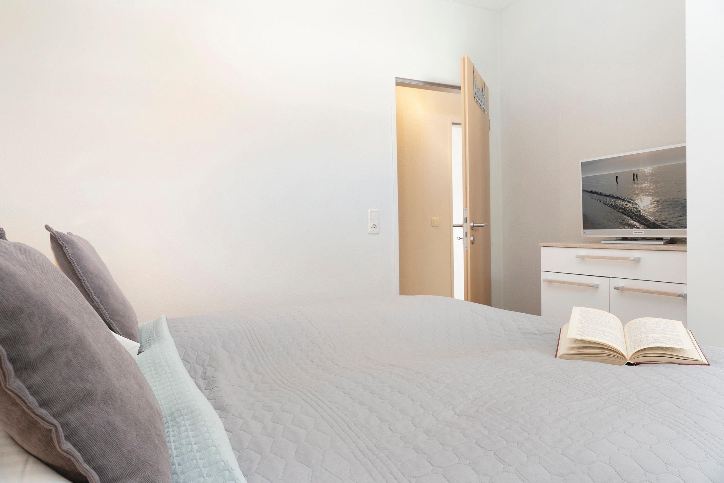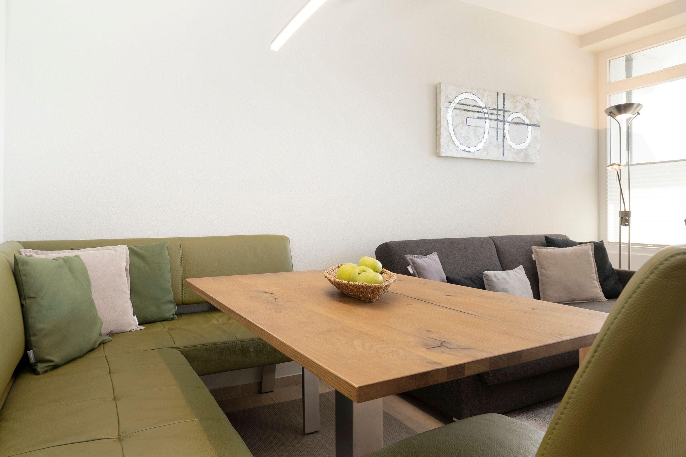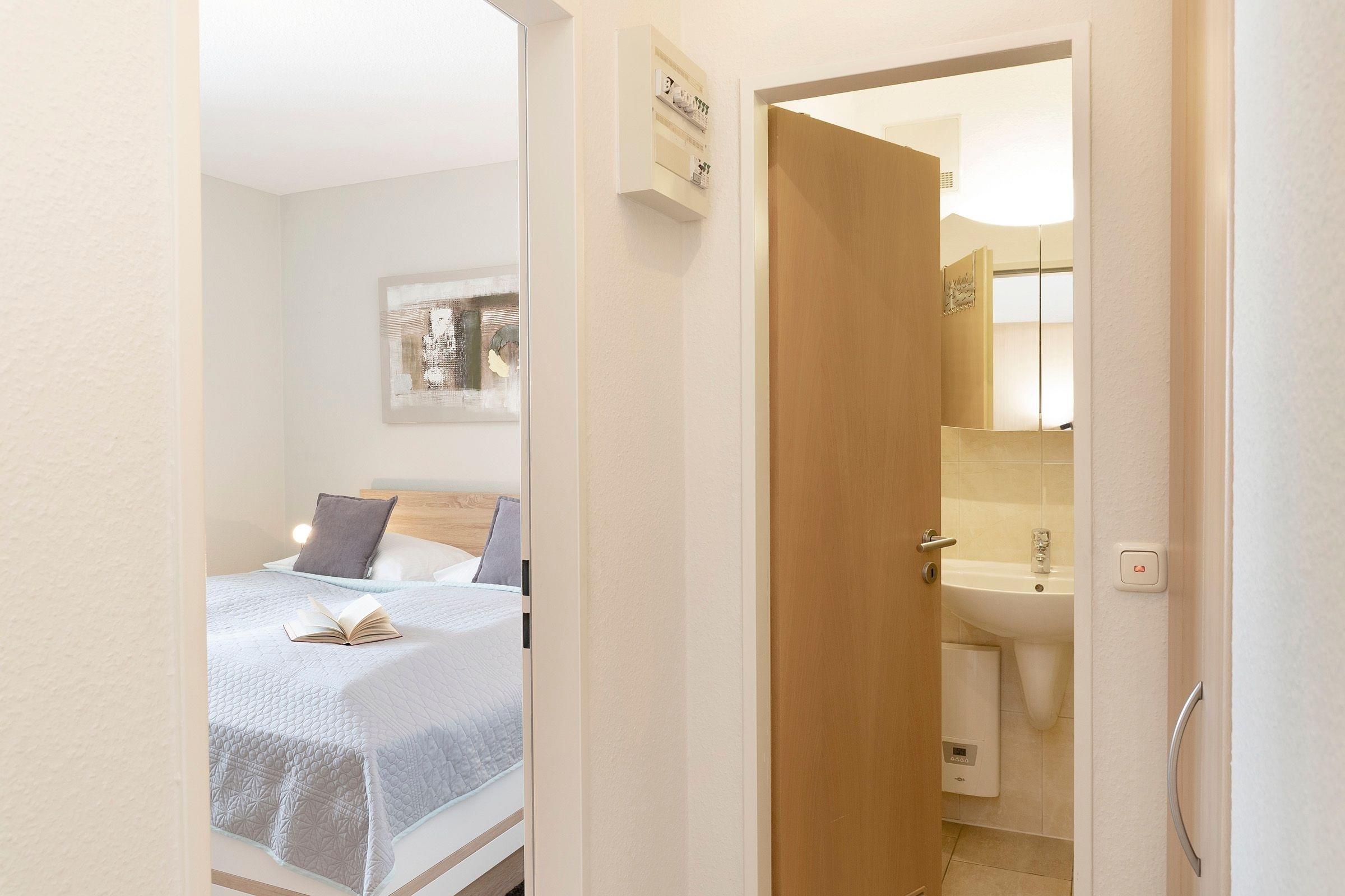 Willkommen in einer Oase der Gemütlichkeit. Es begrüßt Sie ein offenes Raumkonzept mit modernem Wohnschlafzimmer und bequemer Doppelbettcouch (160x200 cm). Für ausreichend Unterhaltung ist mit Kabel-TV ebenfalls gesorgt. Der traumhafte Balkon zur Seeseite überzeugt mit den ersten Sonnenstrahlen des Tages und lädt zu einem Glas Wein am Ende eines schönen Urlaubstages ein. Die im Wohnzimmer integrierte Küche mit angrenzender Essecke ist mit Kaffeemaschine, Nespressomaschine, Heißluftfritteuse, Toaster, 2-Platten-Herd, Mikrowelle, Geschirrspüler etc. voll ausgestattet. Ein helles, separates Schlafzimmer mit Doppelbett (2x 90x200 cm) und weiterem Fernseher verspricht erholsame Nächte. Abgerundet wird diese Wohnung durch das Badezimmer mit Dusche und WC.