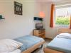 Schlafzimmer 1: 2 Einzelbetten (2x 90x200 cm), TV, Verdunkelung (Gardinen)