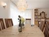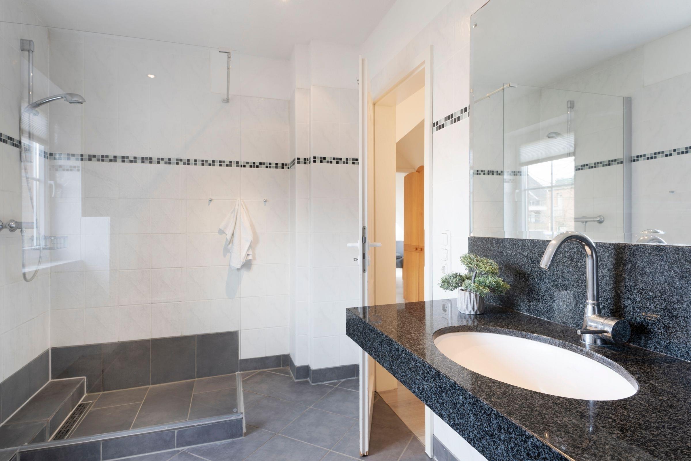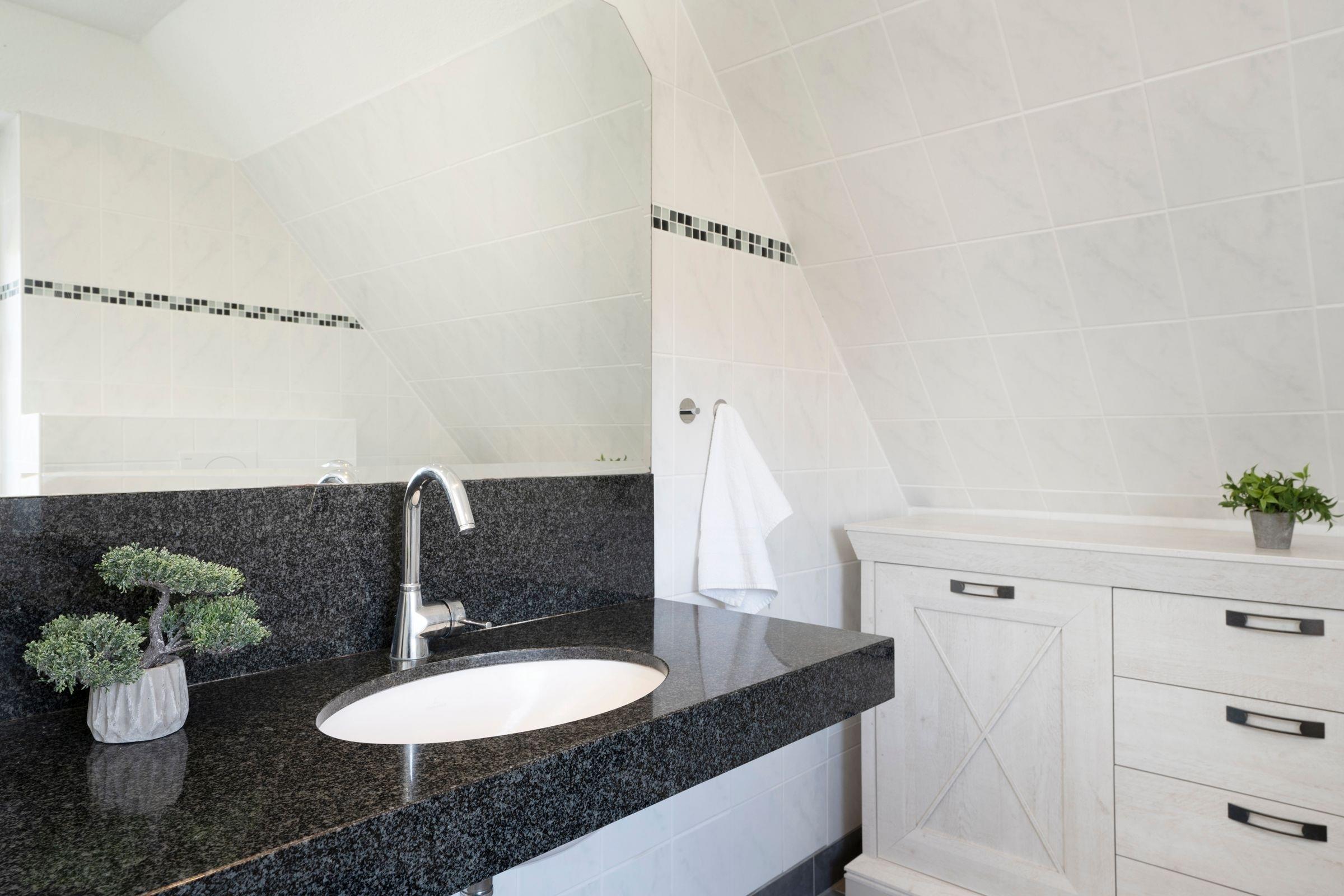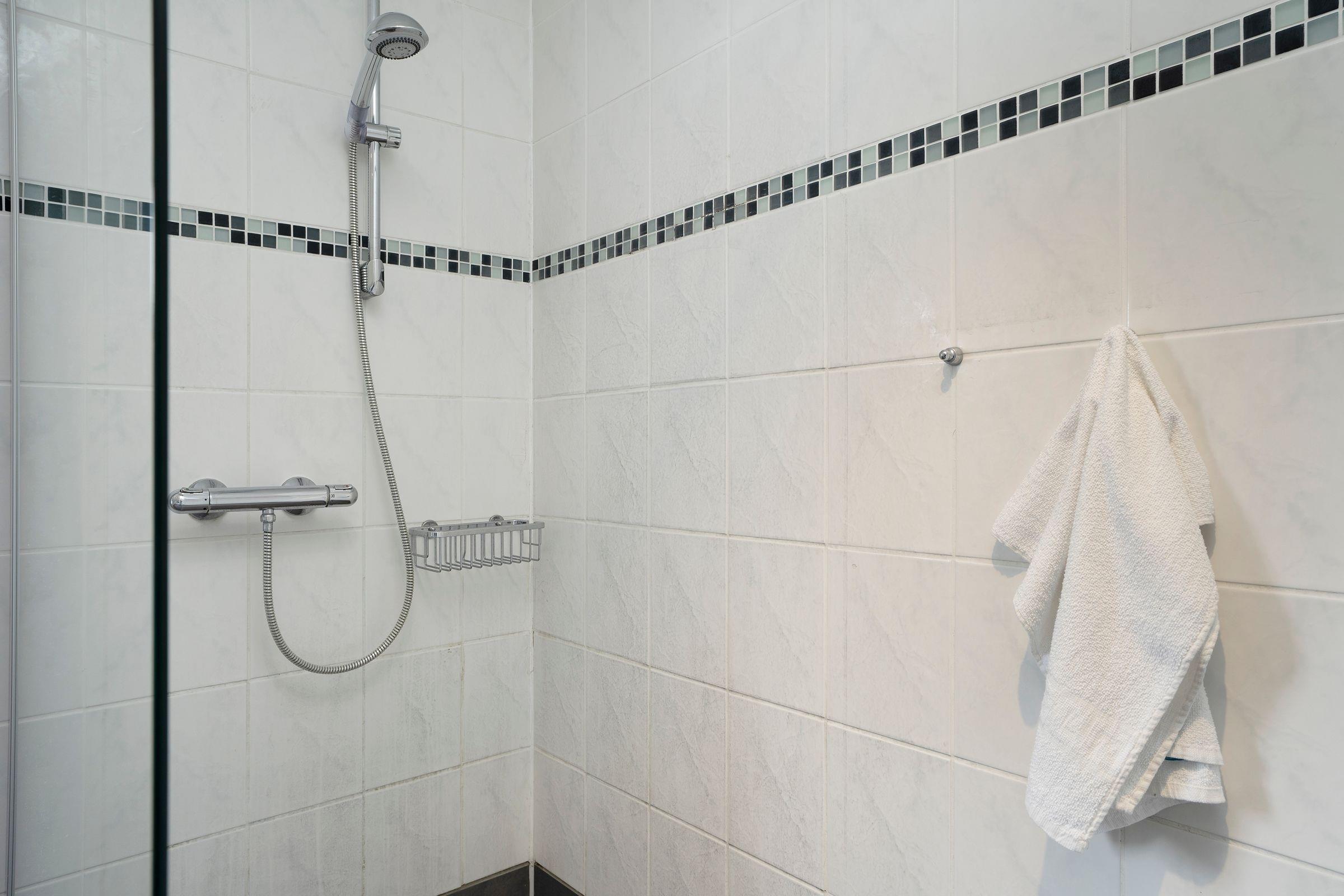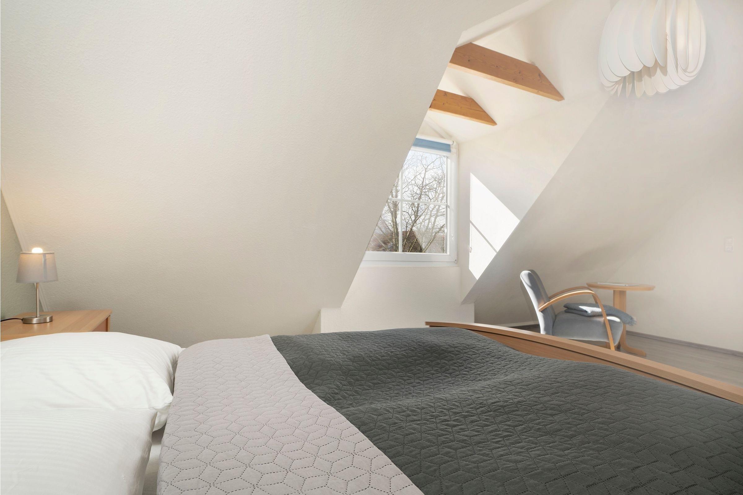 Über den hellen Flur gelangen Sie in den großen Wohn- und Essbereich. Auf der komfortablen Sitzgarnitur ist genügend Platz für alle, um einen gemeinsamen Abend vor dem Kamin oder dem Fernseher zu verbringen. Vom Esstisch aus haben Sie einen fantastischen Blick in den Garten. Auf dem Flur gibt es ein kleines Gäste-WC. Auf der rechten Seite befindet sich die gut ausgestattete Küche mit einem weiteren Esstisch. Im Obergeschoss finden Sie zwei Schlafzimmer mit je einem Doppelbett (je 2x 90x200 cm) sowie ein Schlafraum mit einem Einzelbett (90x200 cm). Das moderne Badezimmer mit Fenster und bodengleicher Dusche ist ein echtes Highlight.
