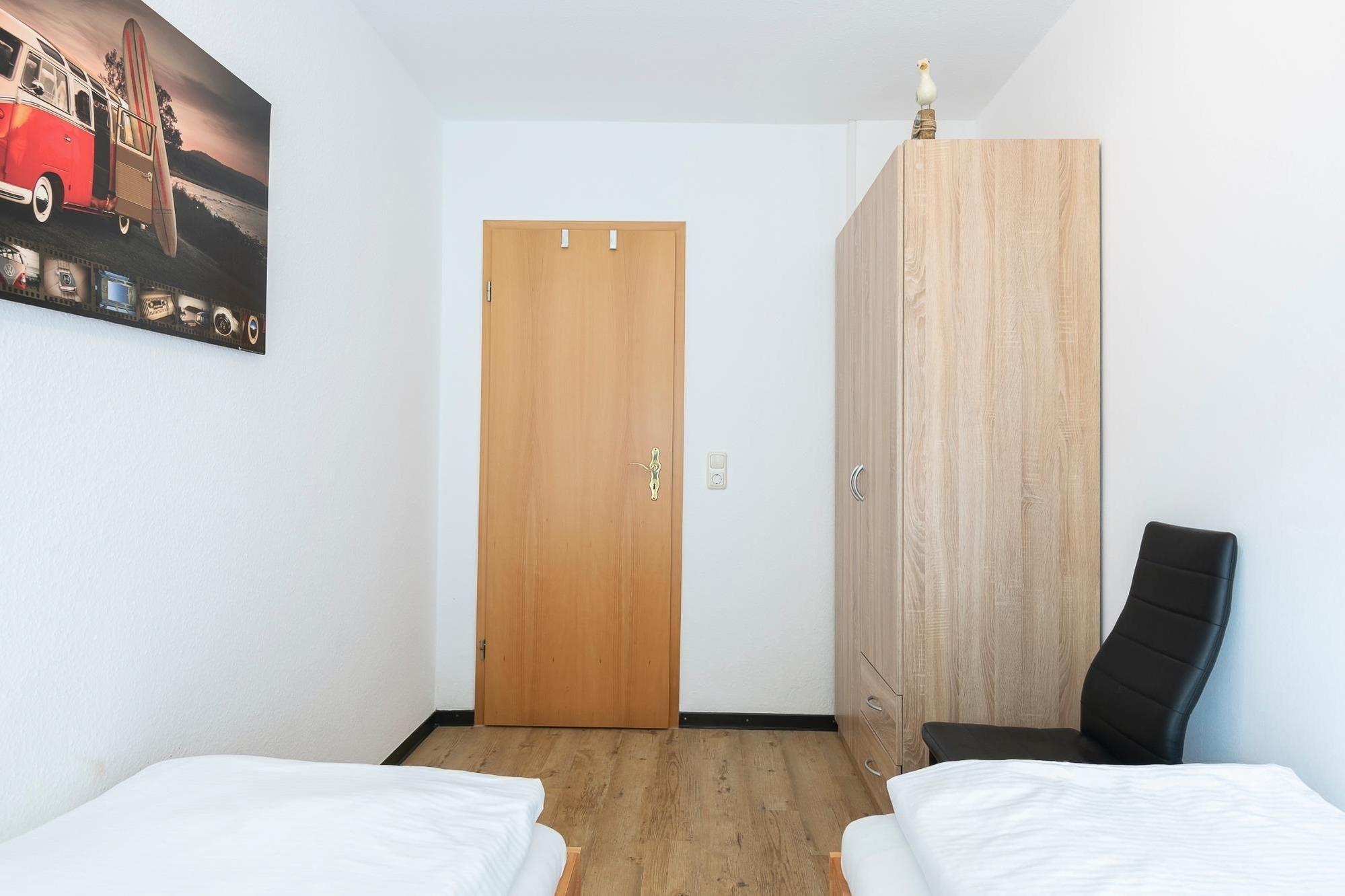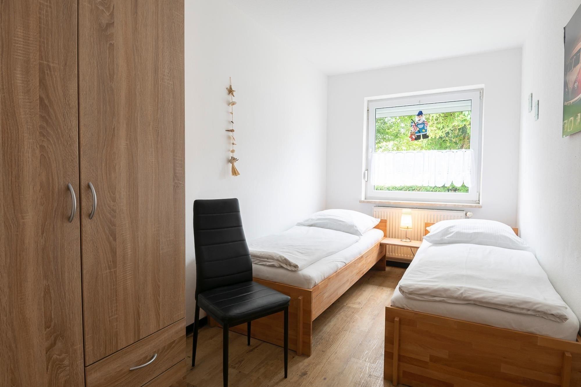 Schlafzimmer 2: 2 Einzelbetten (2x 80x200 cm), Außen Jalousien.