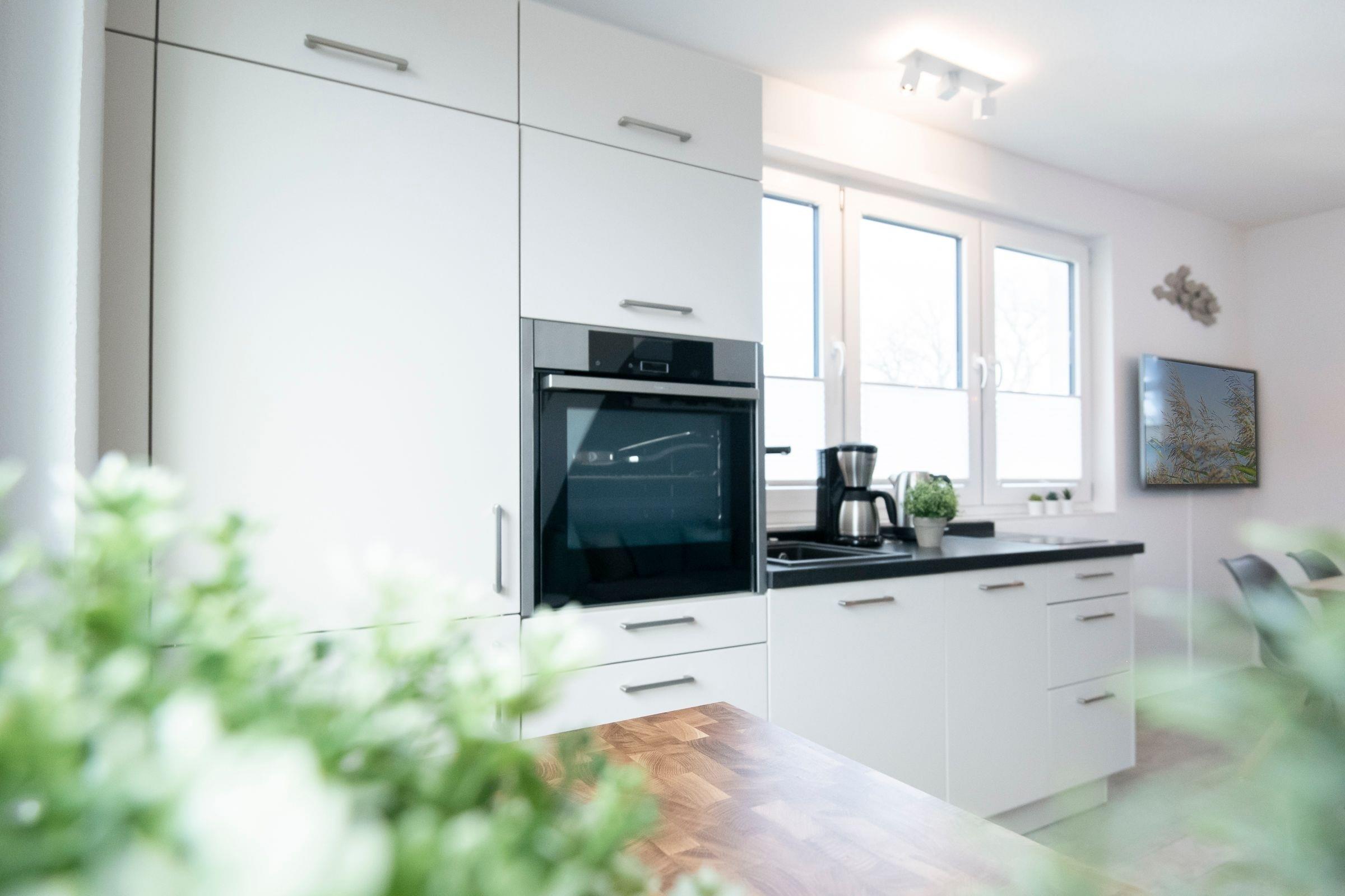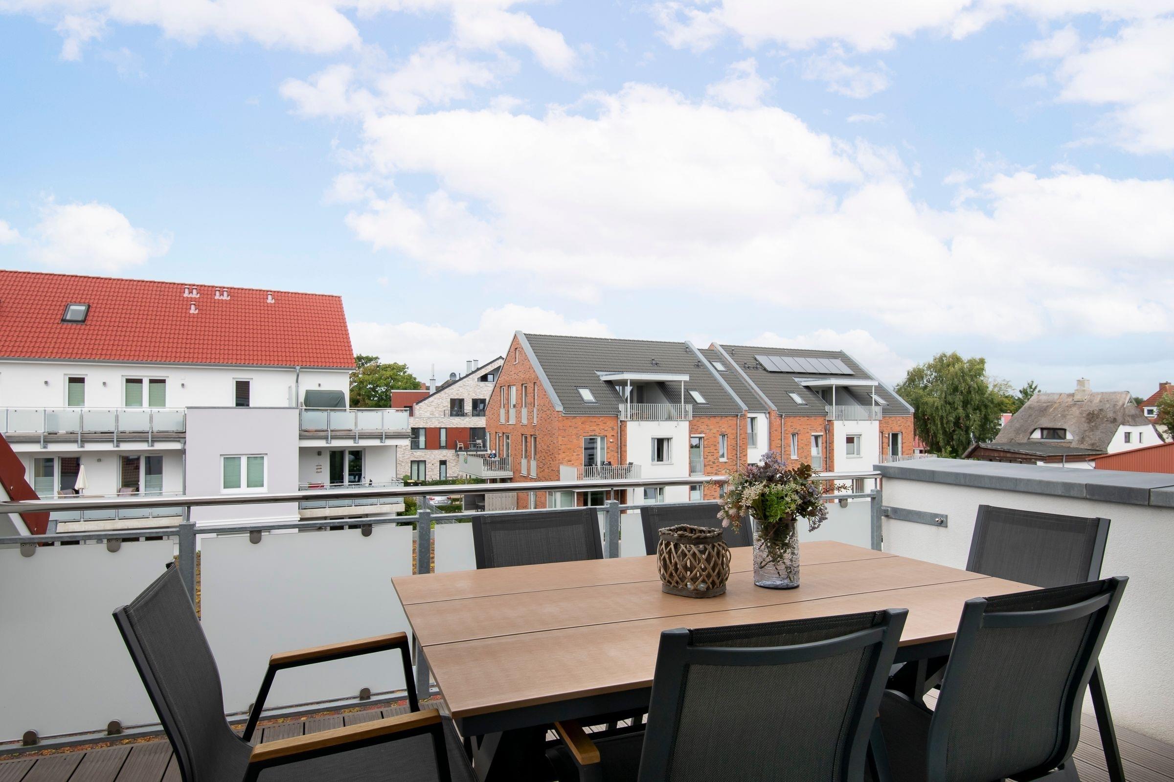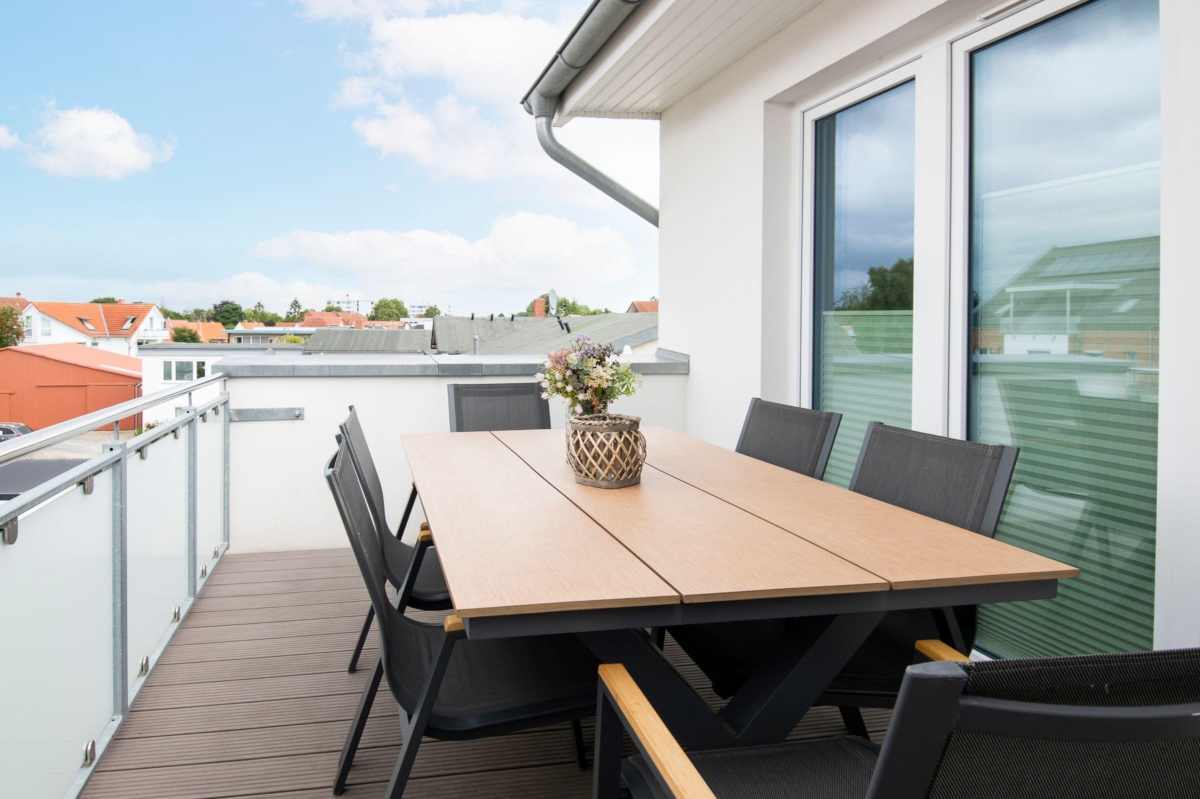 Hochwertig eingerichtet empfängt Sie der Wohnbereich mit offener Küche. Kuschel- und Fernsehabende auf dem Sofa lassen Sie den Alltag schnell vergessen. In der modernen Küche mit Induktionsherd (2 Kochplatten), Backofen, Spülmaschine und weiteren Helferlein können Sie sich mühelos frische regionale Köstlichkeiten zubereiten. Die gemeinsamen Mahlzeiten nehmen Sie in geselliger Runde am Esstisch mit ausreichend Sitzmöglichkeiten ein. Für Ihre Unterhaltung ist auch an Regentagen gesorgt, denn die Wohnung verfügt über 2 Flachbildfernseher, ein Radio und einen kostenfreien WLAN-Anschluss. Diese Ferienwohnung bietet Ihnen gleich 2 Balkone, auf denen Sie ein leckeres Frühstück oder ein Glas Wein bei guter Ostseeluft genießen können. Nehmen Sie Platz auf den Balkon- und Loungemöbeln und lassen Sie die Seele baumeln.