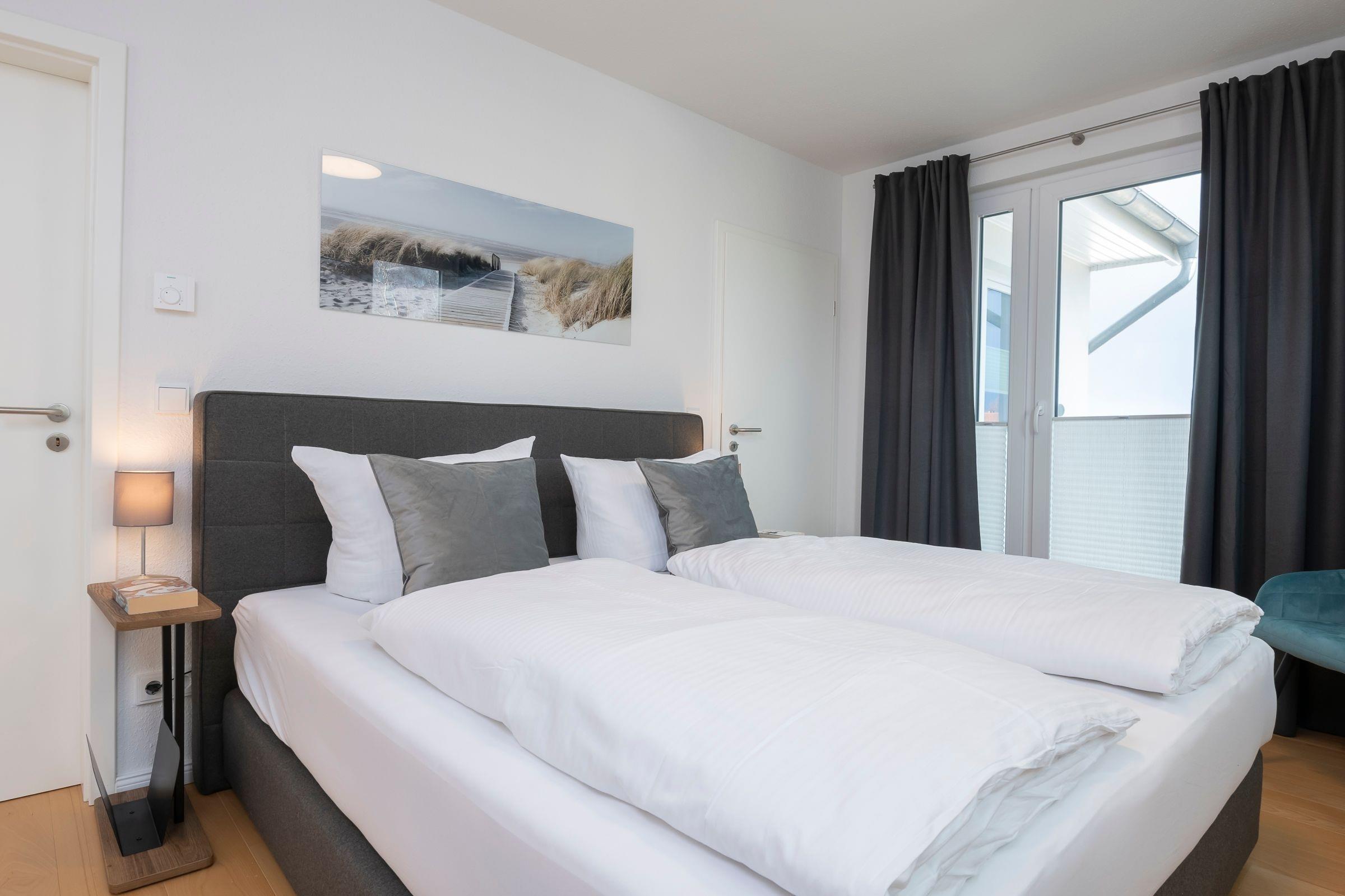 Schlafzimmer 1: 1 Boxspring-Bett (2 x 90x200 cm), Kleiderschrank, Platz für ein Kinderbett, Verdunkelung