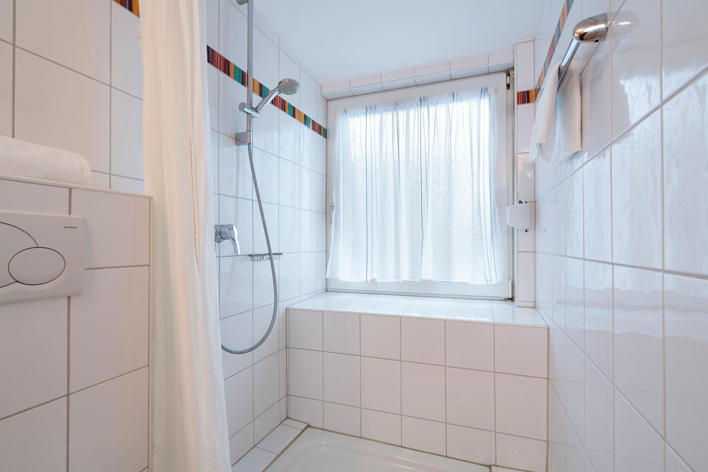 Nachdem Sie Ihren Urlaubsort erkundet haben können Sie im Wohn- und Essbereich entspannt die Füße hochlegen und bei einem guten Glas Wein und schmackhaften Köstlichkeiten am Esstisch den nächsten Tag planen. Natürlich können Sie sich auch mit einem spannenden Buch auf den möblierten Balkon zurückziehen und die Ruhe genießen. Im Gemeinschaftsgarten steht allen Gästen des Hauses darüber hinaus ein Kohlegrill zur Verfügung. Über einen kostenlosen WLAN-Anschluss streamen Sie Ihre Lieblingsmusik und bleiben mit Ihren Lieben in Verbindung. Beginnen Sie den Tag mit einem ausgiebigen Frühstück, dass Sie mühelos in der angrenzenden Küche zubereiten. Die Wohnung bietet 4 Schafmöglichkeiten. Im Wohnzimmer verwandeln Sie das Sofa mit nur wenigen Handgriffen in einen kuscheligen Rückzugsort für Nacht (ca. 150x200 cm). Nebenan lädt Sie das komfortable Doppelbett (2x 90x200 cm) zum Träumen ein. Für Ihre Urlaubsgarderobe finden Sie im Kleiderschrank ausreichend Platz zum Verstauen. Das Tageslichtbad mit Dusche und Spiegelschrank rundet die Ausstattung dieses Feriendomizils ab.