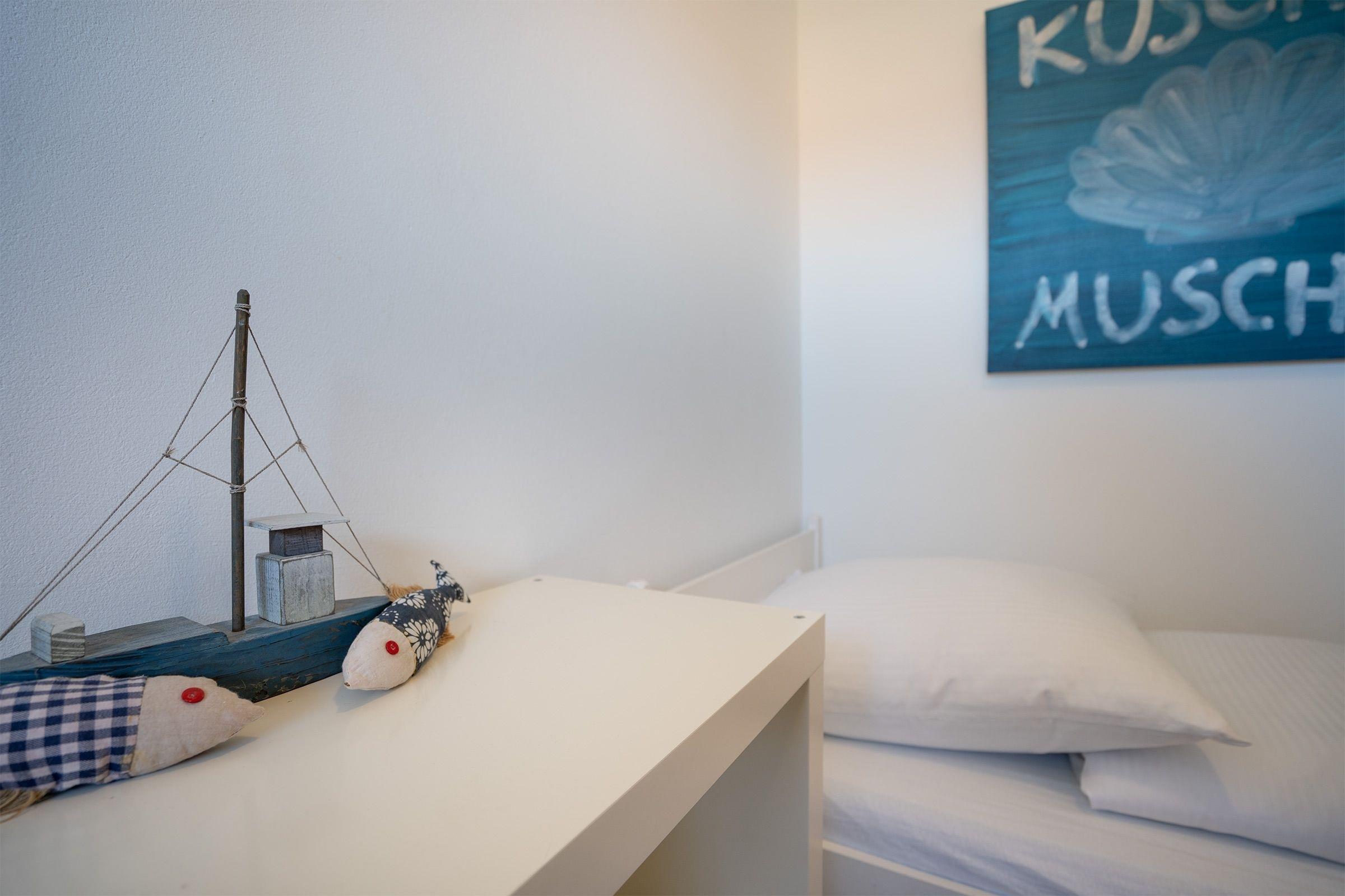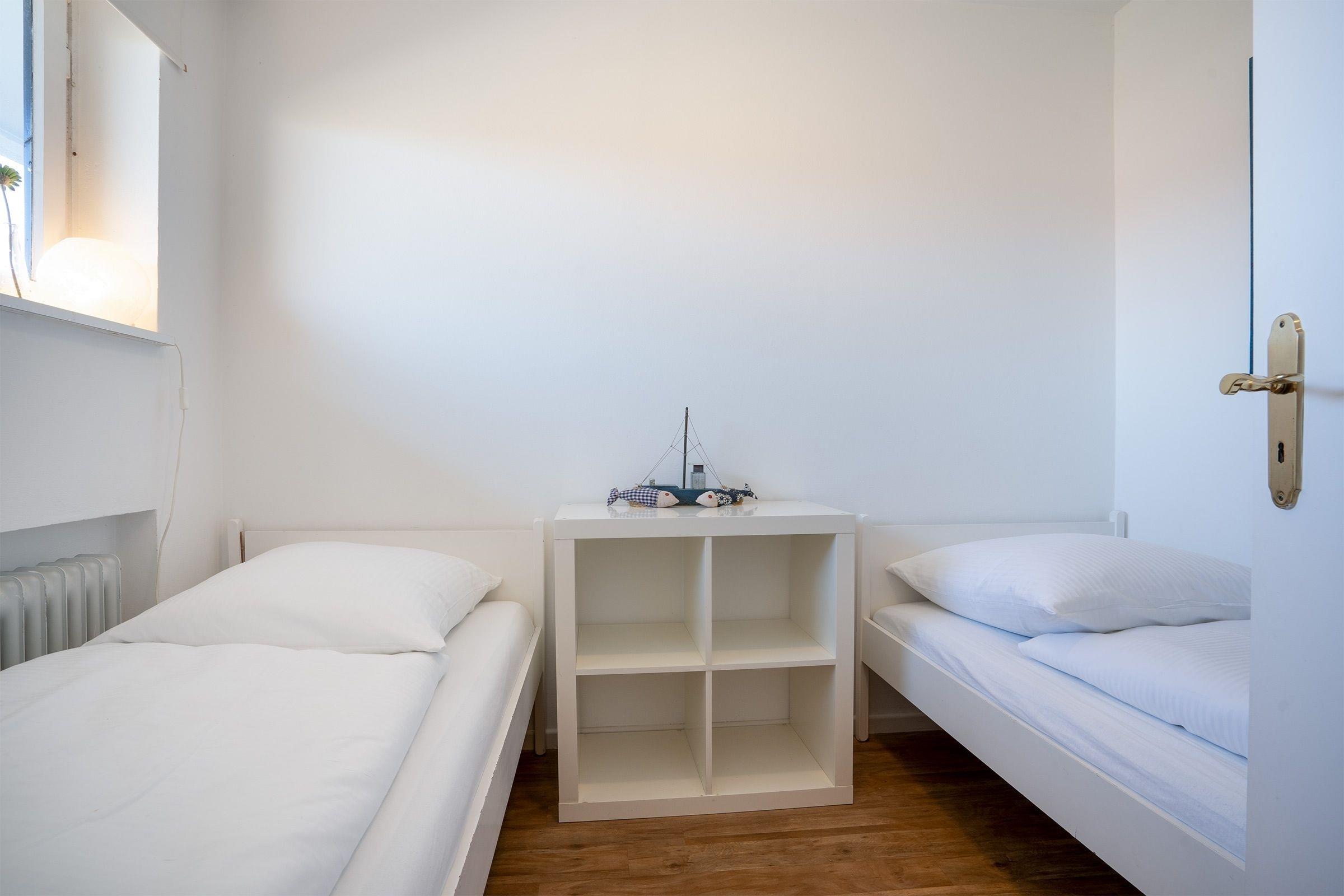 Schlafzimmer: 2 Einzelbetten (je 90x190cm), kein Platz für Babybett vorhanden
