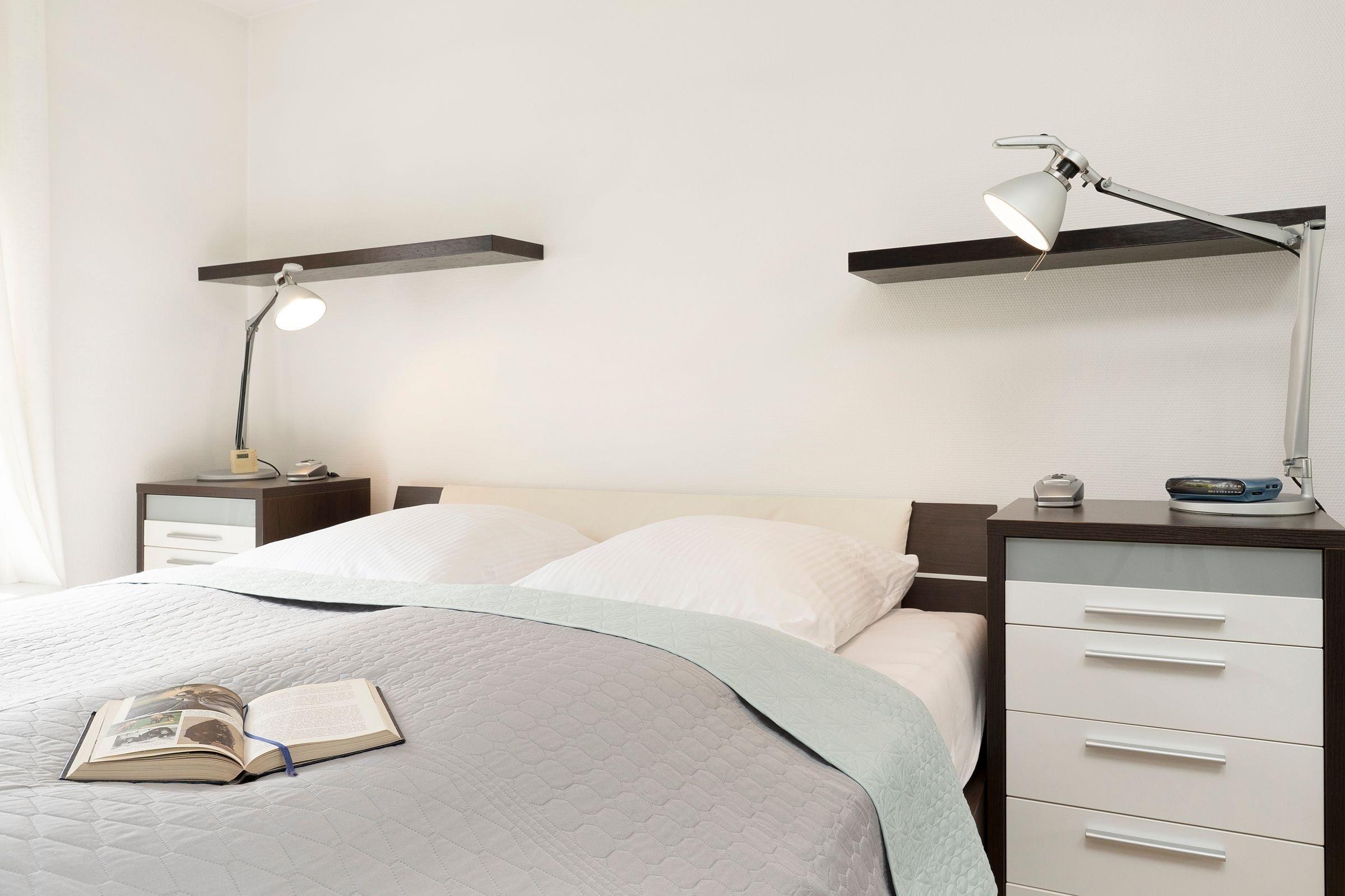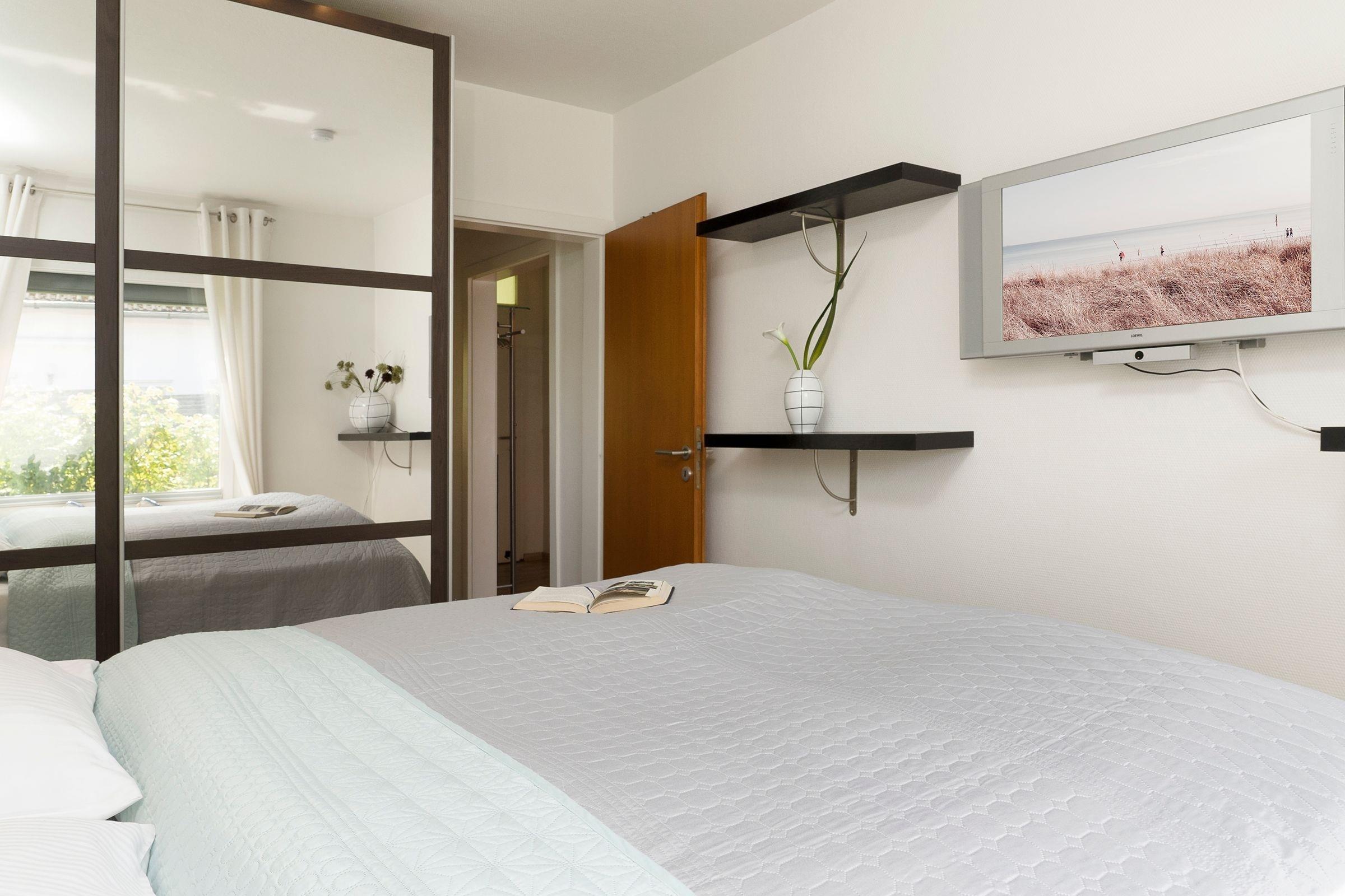Schlafzimmer 1: 1 Doppelbett (2x 90x200 cm), TV, Kleiderschrank, Verdunkelung (Außenrollo)