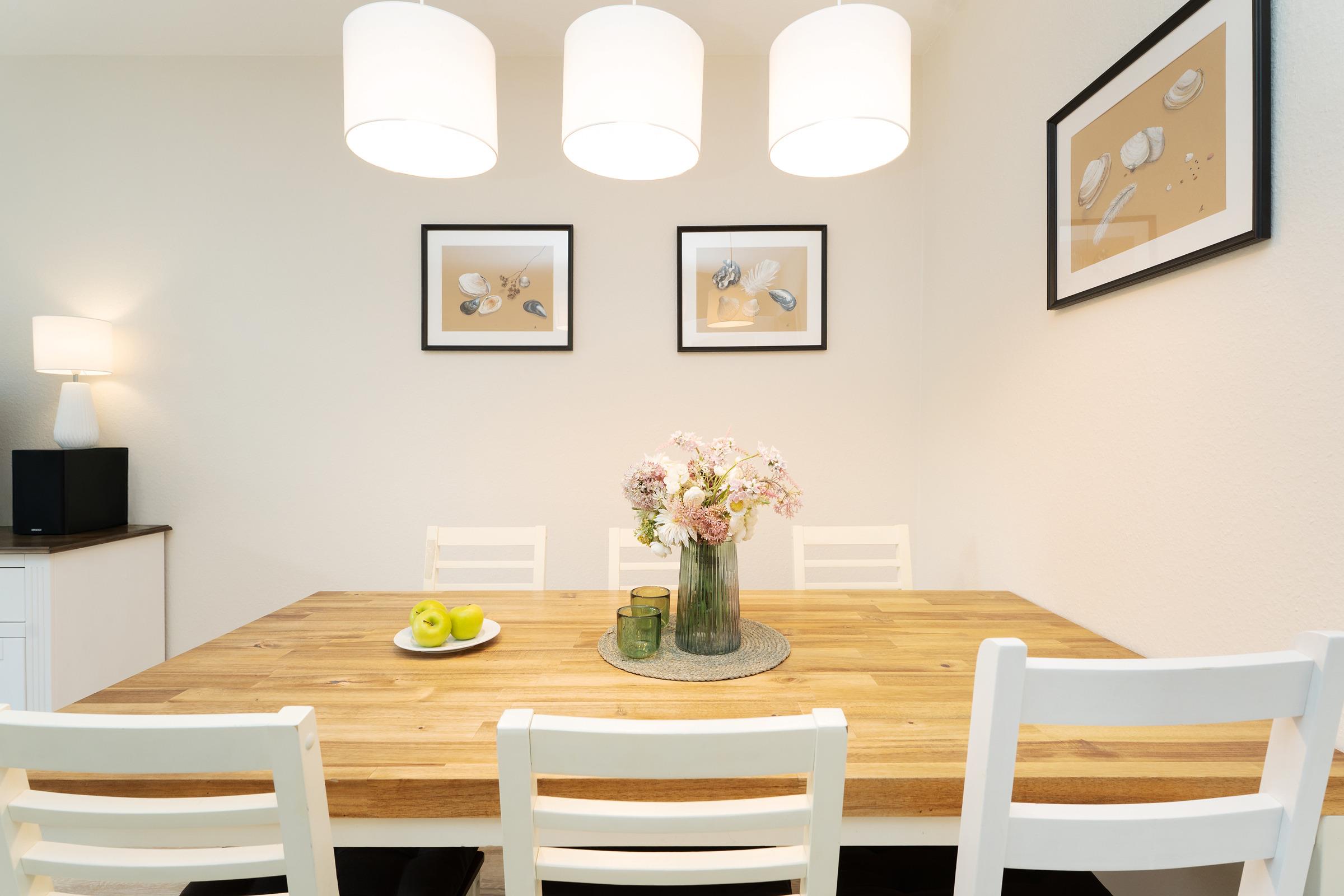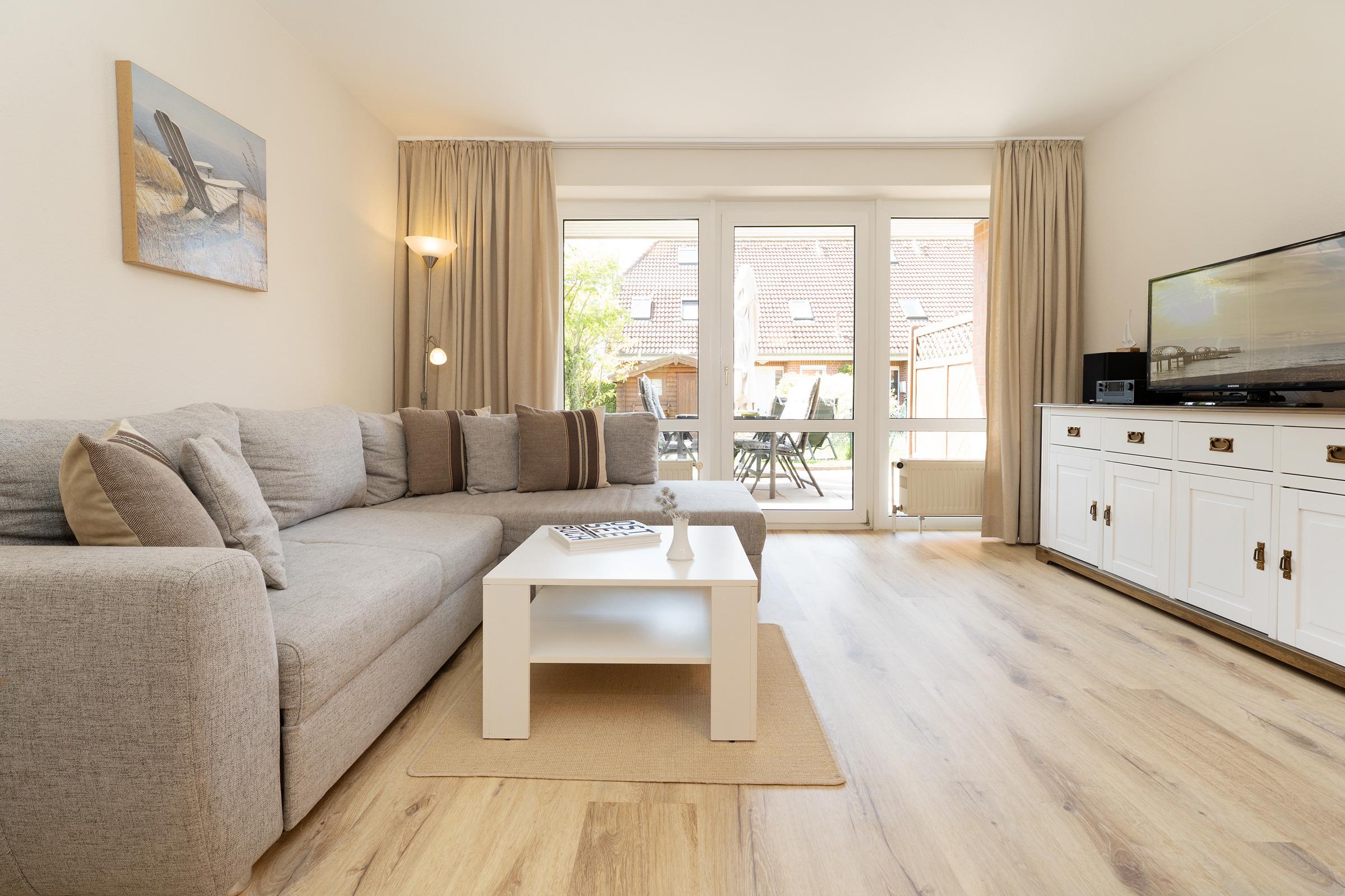 Herzlich Willkommen im Urlaub. Ihr Zuhause auf Zeit befindet sich im Ferien-Wohnpark Amselweg und bietet Ihnen viel Platz und Komfort. Hell und gemütlich präsentiert sich das moderne Haus, das sich über 2 Etagen erstreckt. Im Erdgeschoß befindet sich der großzügige Wohn- und Essbereich mit einem gemütlichen Sofa, das sich in einen Schlafplatz für 2 Gäste (120x200 cm) verwandeln lässt. Von dort gelangen Sie auch auf die möblierte Terrasse und in den Garten. Hier lässt es sich wunderbar entspannen und relaxen. Nutzen Sie tagsüber die Sonnenliegen und schmeißen Sie abends den Grill an. Der Garten ist vollständig eingezäunt, sodass Kinder und Hunde in sicherer Umgebung spielen können. Die separate Küche mit Geschirrspüler ist mit nahezu allen Annehmlichkeiten ausgestattet. Nach langen Tagen am Strand können Sie sich im Badezimmer im OG in der Badewanne erholen oder die Dusche im Badezimmer im EG nutzen. Für eine erholsame Nachtruhe stehen Ihnen im 1. Obergeschoss zwei Schlafzimmer zur Verfügung. Ein Schlafzimmer ist mit Kleiderschrank, einem Doppelbett (180x200 cm) und einem kuscheligen Schlafplatz für ein Kleinkind ausgestattet. Im zweiten Schlafzimmer erwarten Sie zwei Einzelbetten (je 90x200 cm) und ein Kleiderschrank. Praktisch: Waschmaschine und Trockner stehen Ihnen im Haus zur Verfügung.