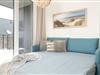 Schlaf-/Wohnbereich: 1 Doppel-Boxspringbett (220x200 cm durchgehender Topper) ,1 Schlafcouch (180x200 cm), TV, Kleiderschrank, Platz für Babybett, Verdunkelung: Plissees