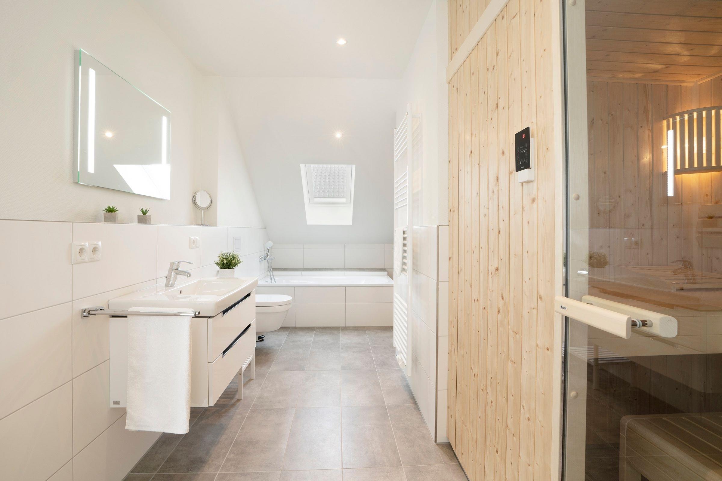 Moderne Ferienwohnung mit Sauna, Dachterrasse und Strandnähe in Kellenhusen für erholsamen Urlaub.