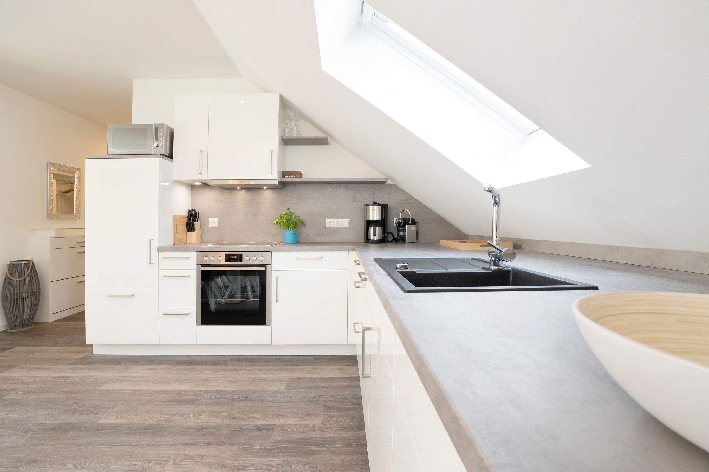 Ihr Lieblingsessen können Sie in der offenen, mit allen Annehmlichkeiten ausgestatteten Küchenzeile zubereiten und am angrenzenden Essplatz gemeinsam einnehmen. Bei schönem Wetter lädt der möblierte Balkon zum Sonnenbaden und Verweilen an der frischen Ostseeluft ein.