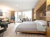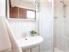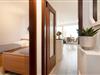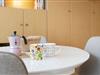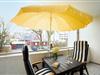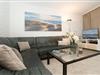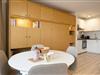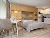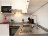 Durch einen kleinen Flur gelangen Sie in den offenen Wohn-, Ess- und Kochbereich. Hier können Sie nach langen Strandspaziergängen und Erkundungstouren die Füße hochlegen oder gemeinsam kochen; lassen Sie sich von frischen Produkten aus der Region inspirieren. Bei gutem Wetter lässt es sich auch abends auf dem überdachten möblierten Balkon gut aushalten. Praktisch: Zur Nacht können Sie sich entspannt in das ausklappbare Doppelbett (ca. 2x 85x200 cm) kuscheln, das tagsüber im Schrank versteckt wird. Direkt nebenan steht Ihnen ein separates Schlafzimmer mit zwei Einzelbetten (je 90x200 cm) und Kleiderschrank zur Verfügung. Für einen frischen Start in den Urlaubstag sorgt ein Tageslichtduschbad.