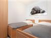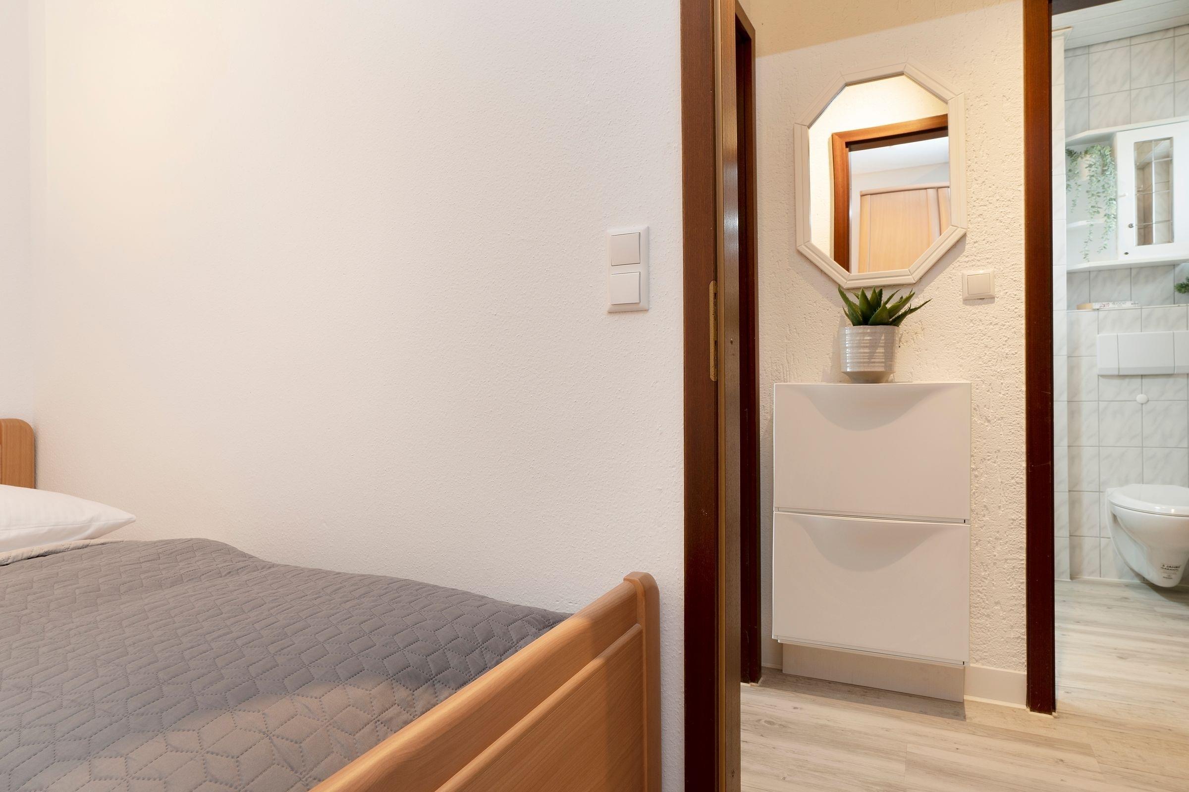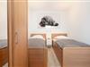 Schlafzimmer: 2x Einzelbett (je 90x200cm), Kleiderschrank, Verdunkelung (Vorhang), kein Platz für Babybett vorhanden