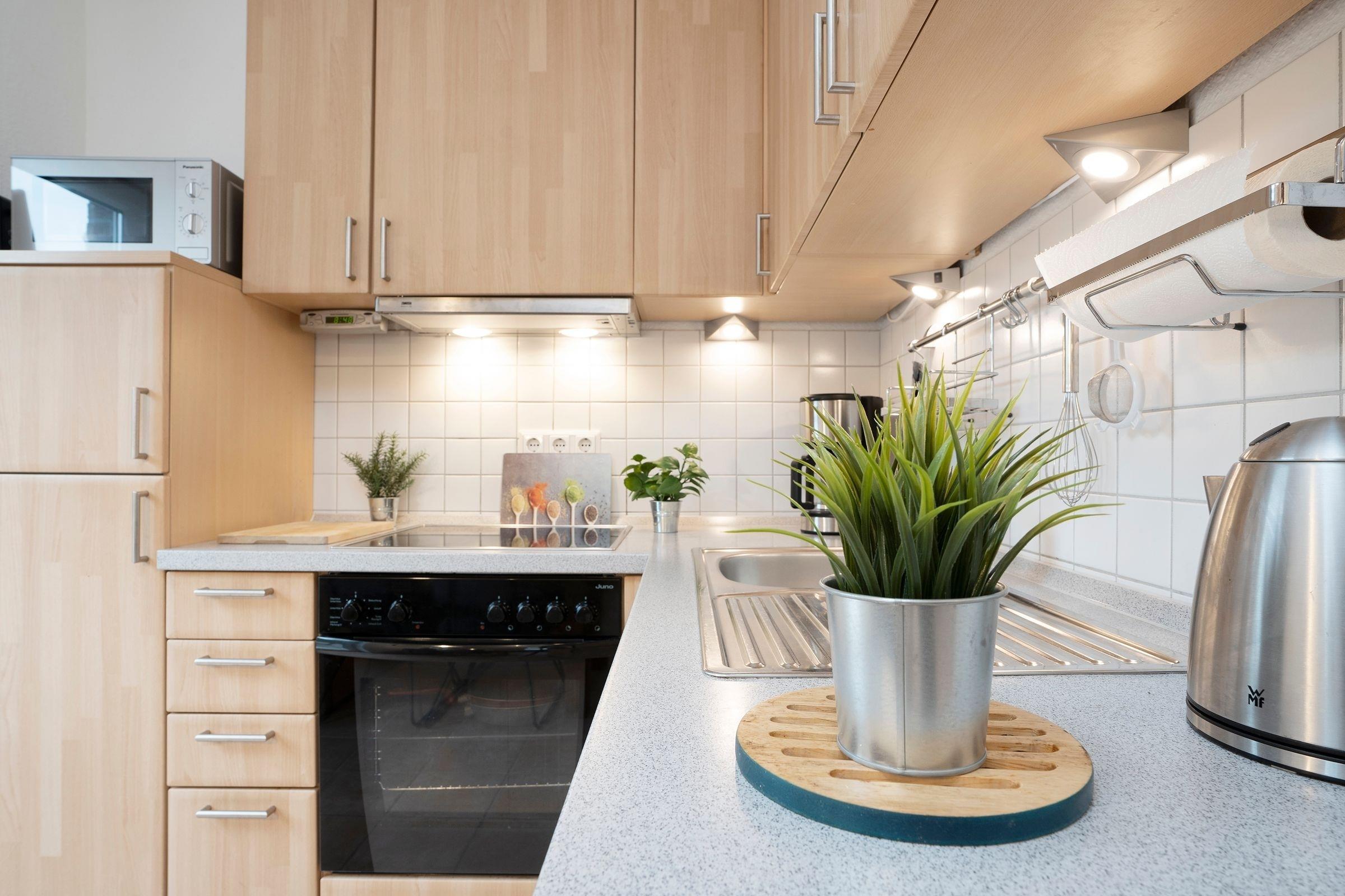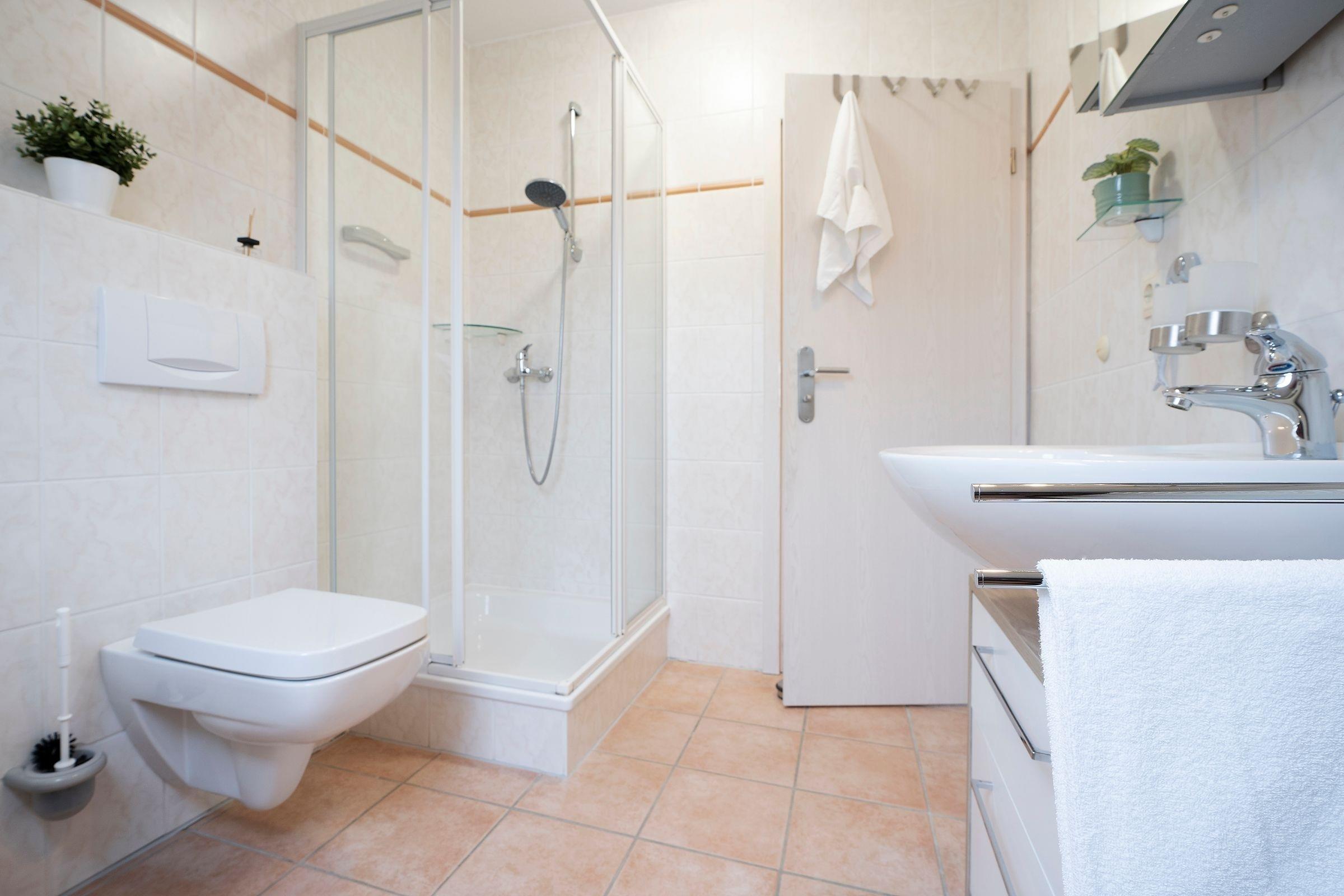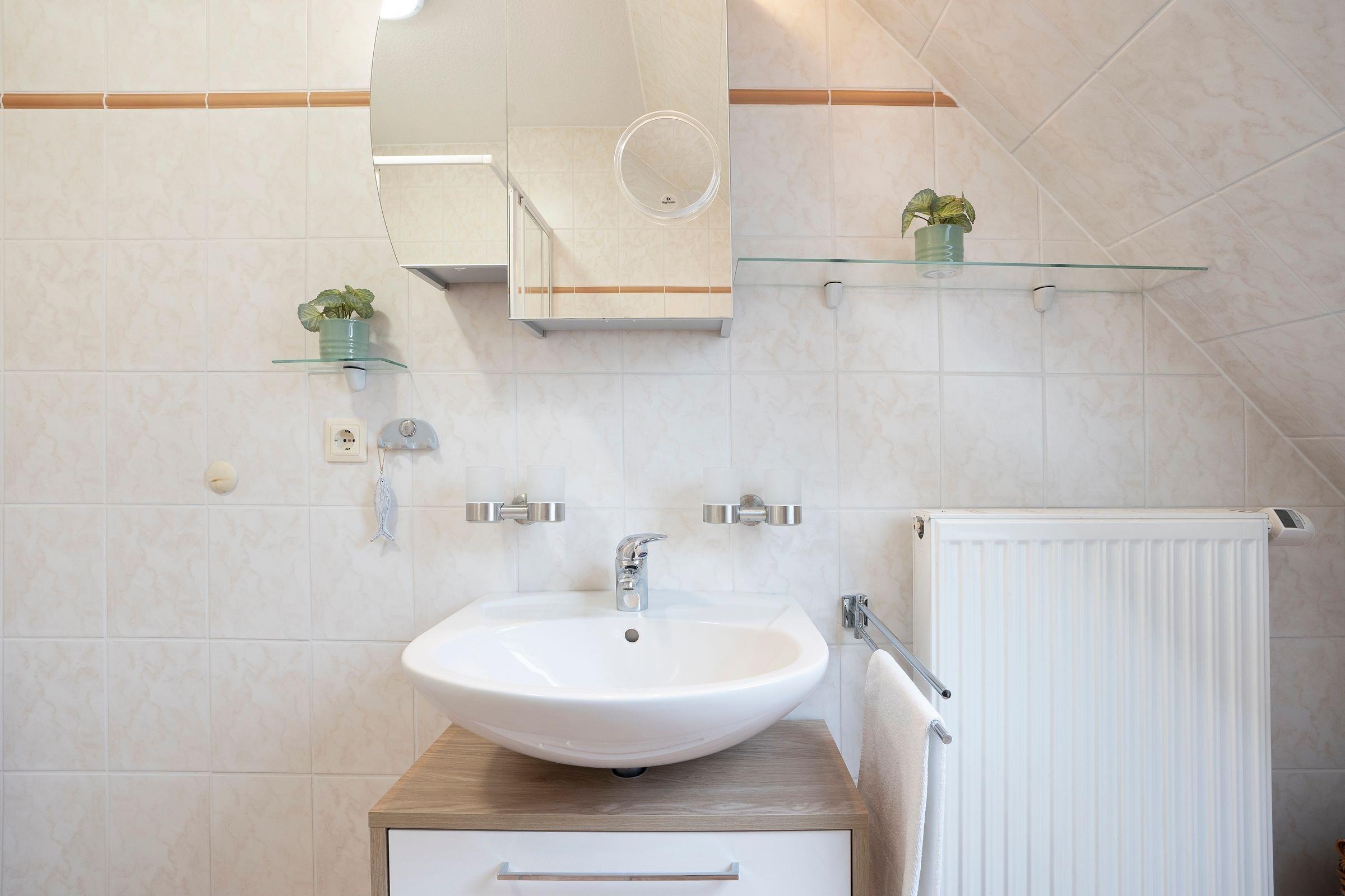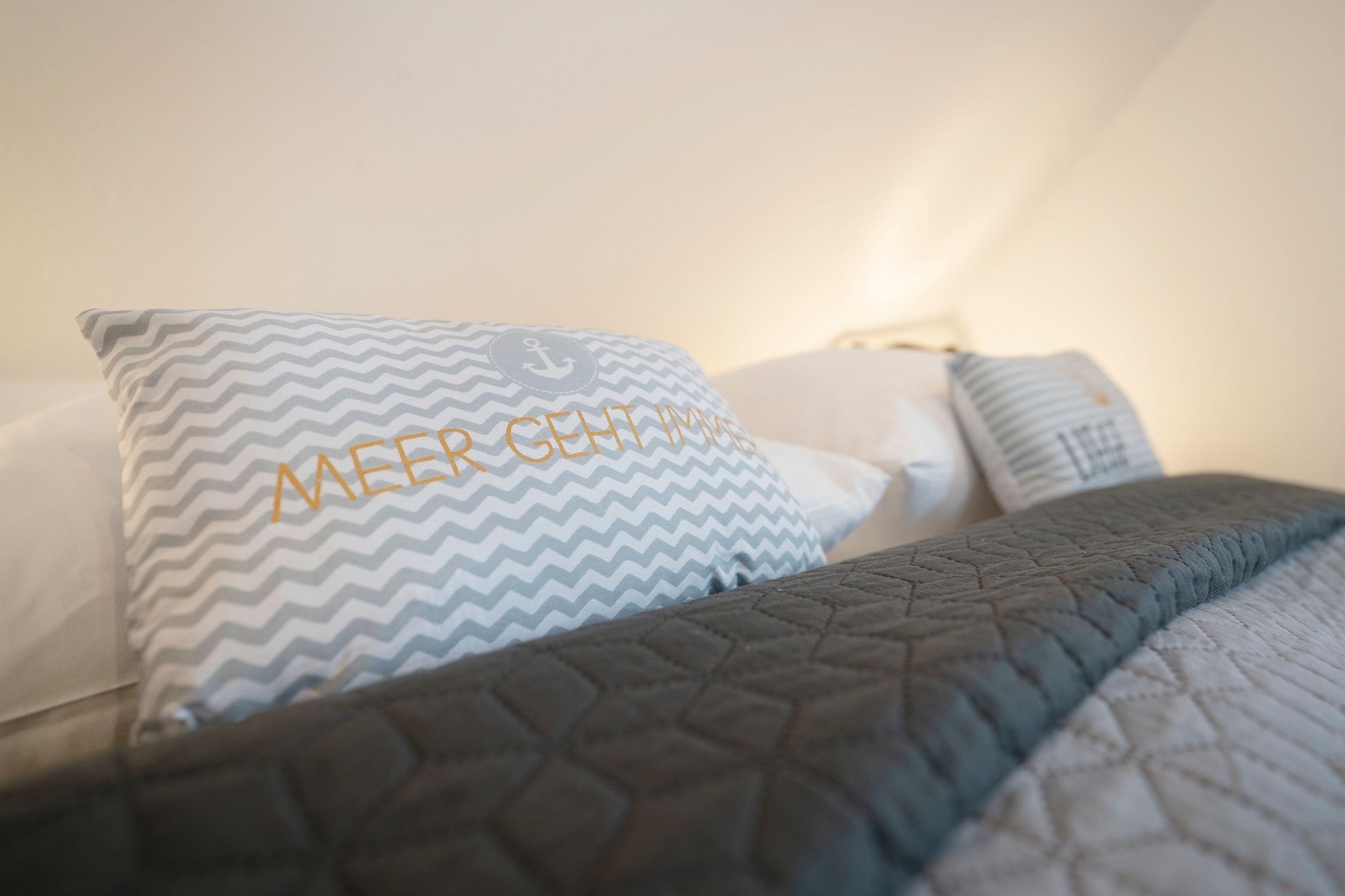 Im ersten Obergeschoss des Hauses empfängt Sie diese Ferienwohnung mit einem gemütlichem Wohnzimmer und voll ausgestatteter Küche, die keine Wünsche offen lässt. Auf dieser Etage befinden sich auch das erste Schlafzimmer mit gemütlichem Doppelbett (2x 80x200 cm), praktischem Kleiderschrank und Rollläden für die Nachtruhe, sowie das Vollbad für einen entspannten Start in den Tag. Folgen Sie der Wendeltreppe in das zweite Obergeschoss und entdecken Sie Schlafzimmer Nr. 2 mit einem Doppelbett (2x 90x200 cm), Kleiderschrank und genug Platz für ein Kinderreisebett. Auch diesen Raum können Sie für die nächtliche Erholung mittels Rollläden und Gardinen abdunkeln. Wer sich nach Tageslicht sehnt, wird auf dem möblierten Balkon mit Nord-Ost-Ausrichtung fündig.