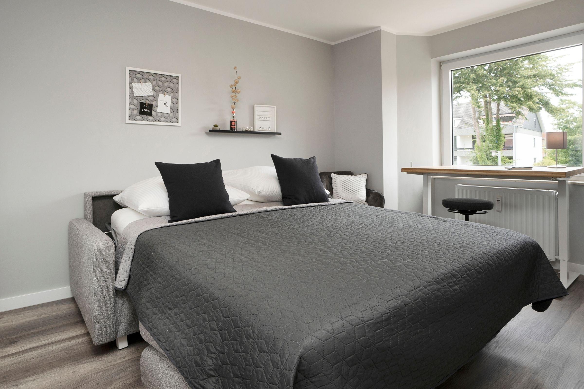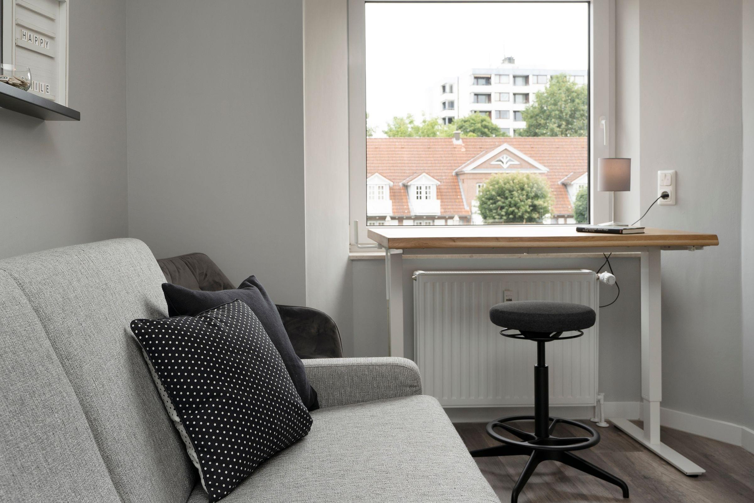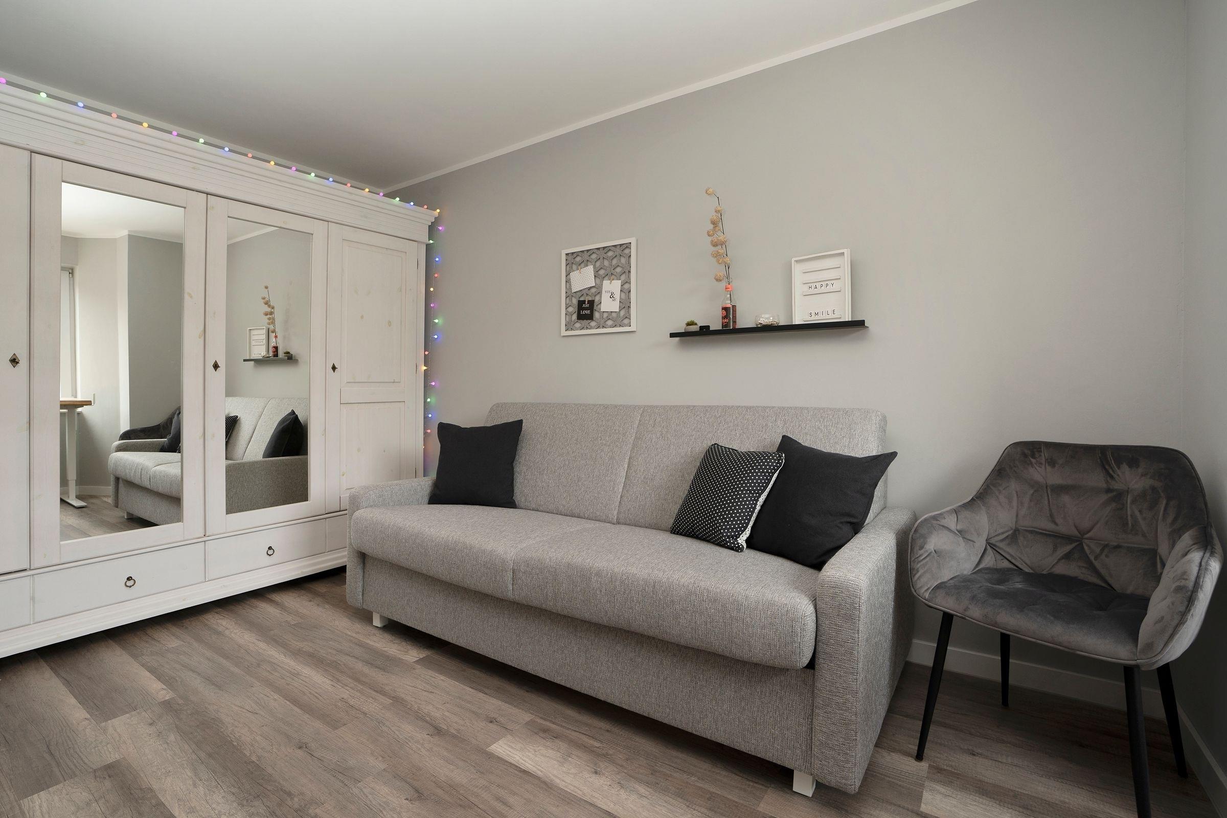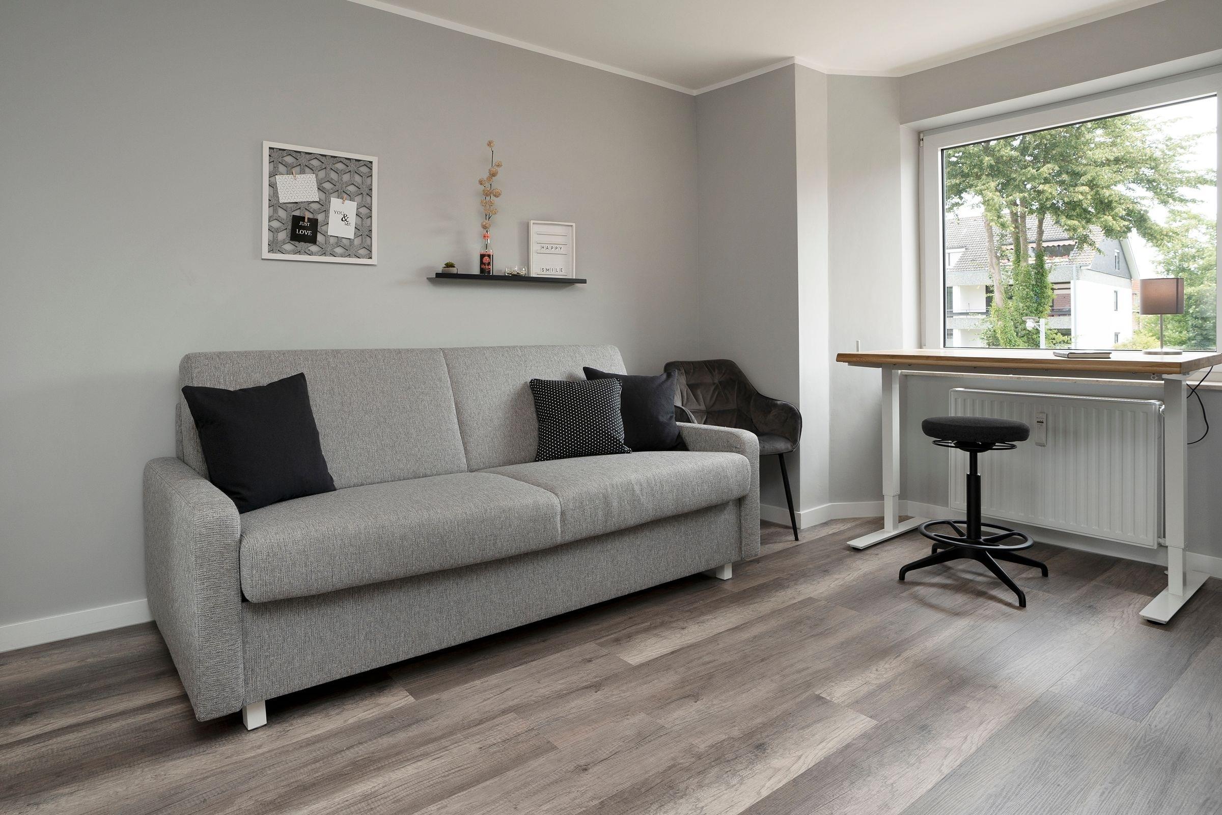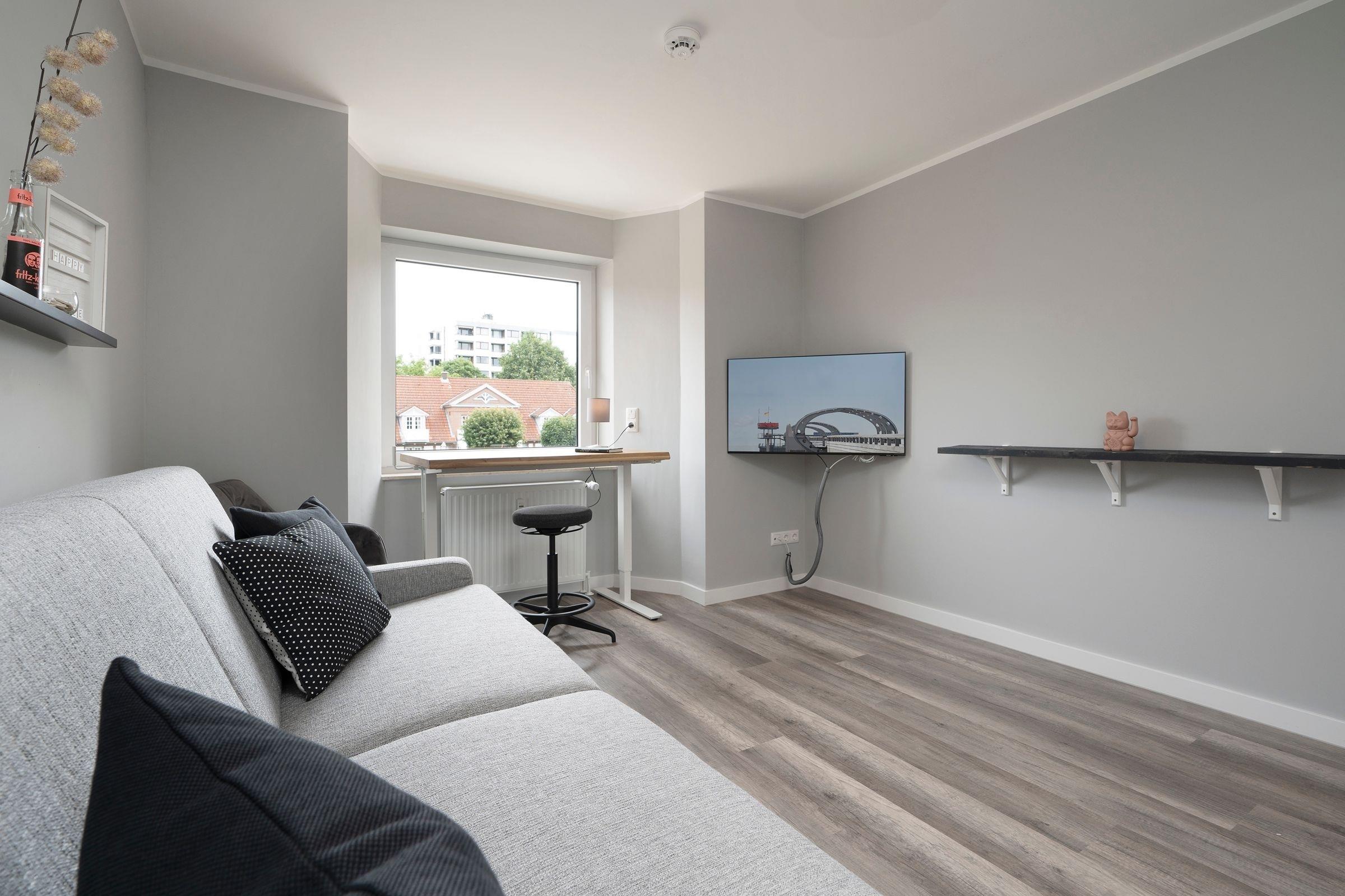 Wie wäre es mit einem kleinen Spaziergang am Meer – noch vor dem Frühstück? Das charmante Apartment liegt nur 150 Meter vom Ostseestrand entfernt. Durch einen kleinen Flur gelangen Sie ins liebevoll eingerichtete Wohnzimmer mit Zugang zum möblierten Balkon. Nehmen Sie Platz auf der kuscheligen Sofalandschaft und entspannen Sie vor dem TV. Zudem steht Ihnen im Wohnzimmer eine stylische Essecke zum Verweilen zur Verfügung. Die separate, großzügige Küche ist mit Induktionsherd und Spülmaschine modern ausgestattet und lässt beim Kochen sicher keine Wünsche offen. Für die Nacht stehen zwei Schlafräume bereit: In dem einem Zimmer befinden sich ein bequemes Boxspringbett (2x 90x200 cm) und ein zusätzliches TV-Gerät. Der andere Raum ist mit einem Schlafsofa (ca. 160x200 cm), einem Kleiderschrank für Ihre Urlaubsgarderobe, einem Schreibtisch sowie einem TV ausgestattet. Beide Räume können mit elektrischen Rollläden verdunkelt werden. Das moderne Badezimmer bietet mit Kosmetikspiegel und Handtuchwärmer den Komfort, den man sich im Urlaub wünscht.