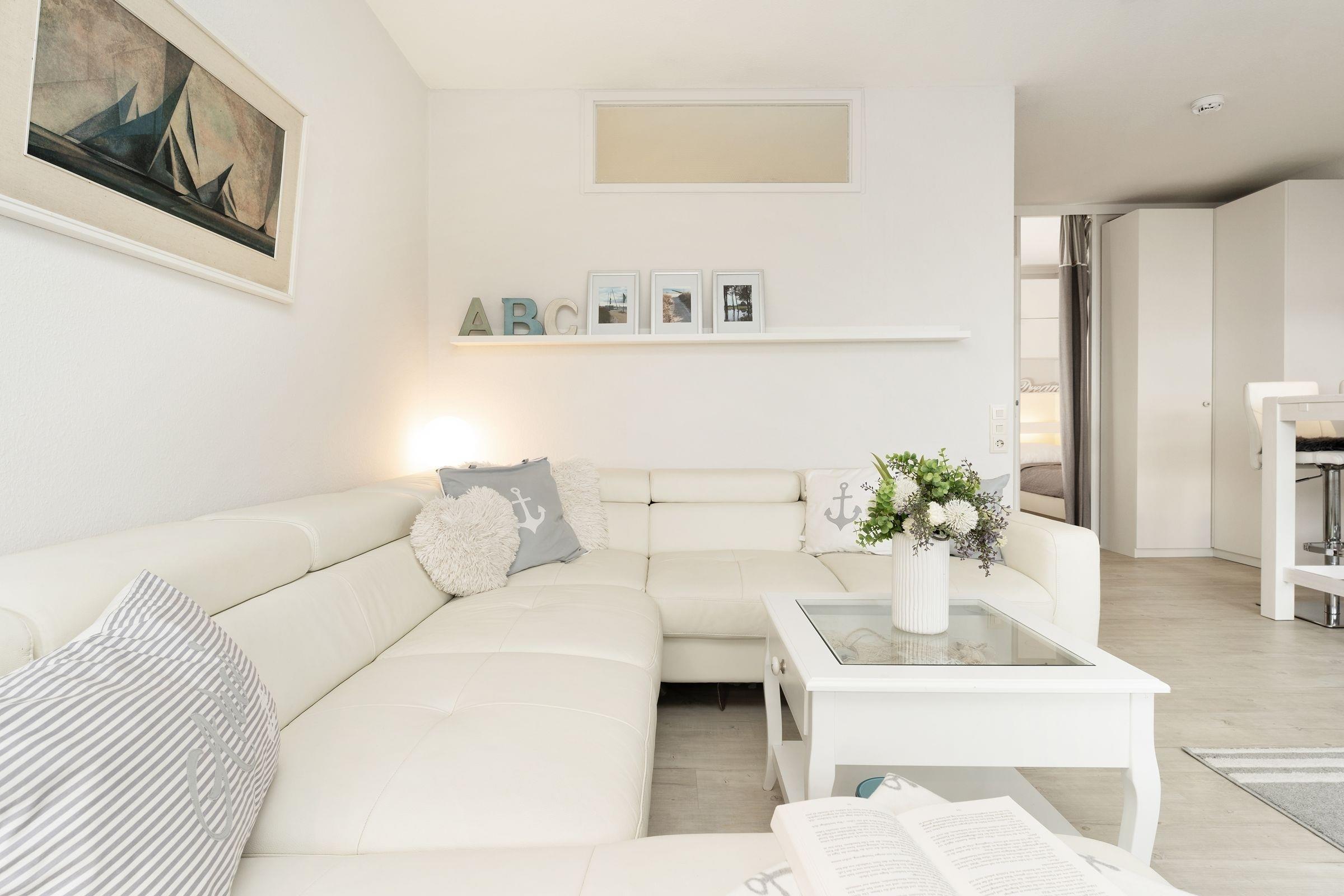 Baltic-View – der Name dieser strandnahen Wohnung in den schönen Strandappartements am Leuchtturmweg ist Programm: Vom überdachten Balkon aus haben Sie einen traumhaften Blick über die Ostsee. Und auch vom liebevoll eingerichteten Wohnbereich aus können Sie das Meer sehen. Nehmen Sie Platz auf der großen Sofalandschaft und genießen Sie Ihre Auszeit. Für die Nacht gibt es einen optisch abgetrennten Schlafbereich mit 2 Einzelbetten (je 90x200 cm). Die helle Küche ist offen gestaltet und funktional ausgestattet. Das Duschbad ist innenliegend. Und nun kann Ihr Urlaub beginnen, der Strand ist nur 100 Meter entfernt...
