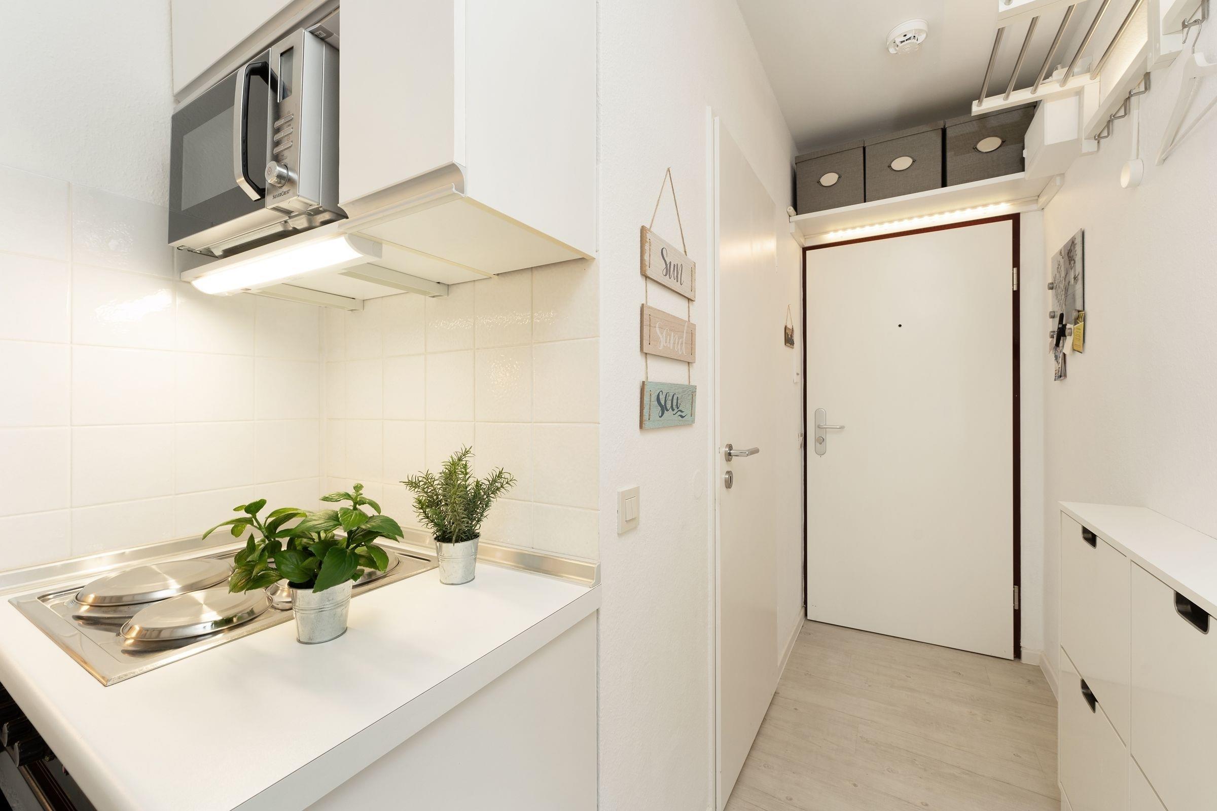 In bester Lage von Kellenhusen: maritime 1,5-Zimmer-Ferienwohnung im 5. Stock mit Balkon, Meerblick, Fahrstuhl und einer Wohnfläche von ca. 38 m² für bis zu 2 Personen.