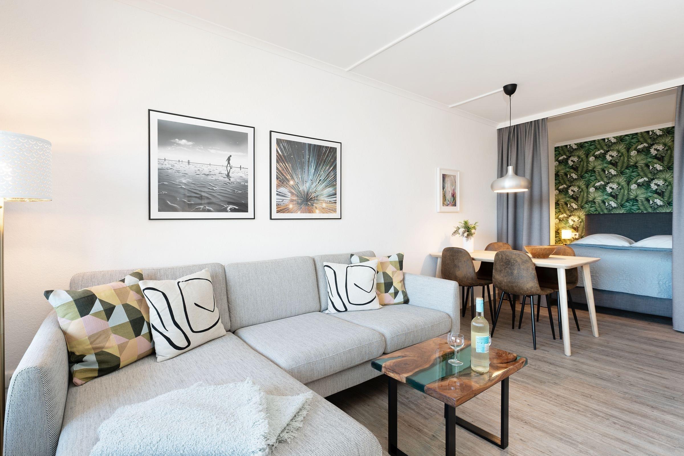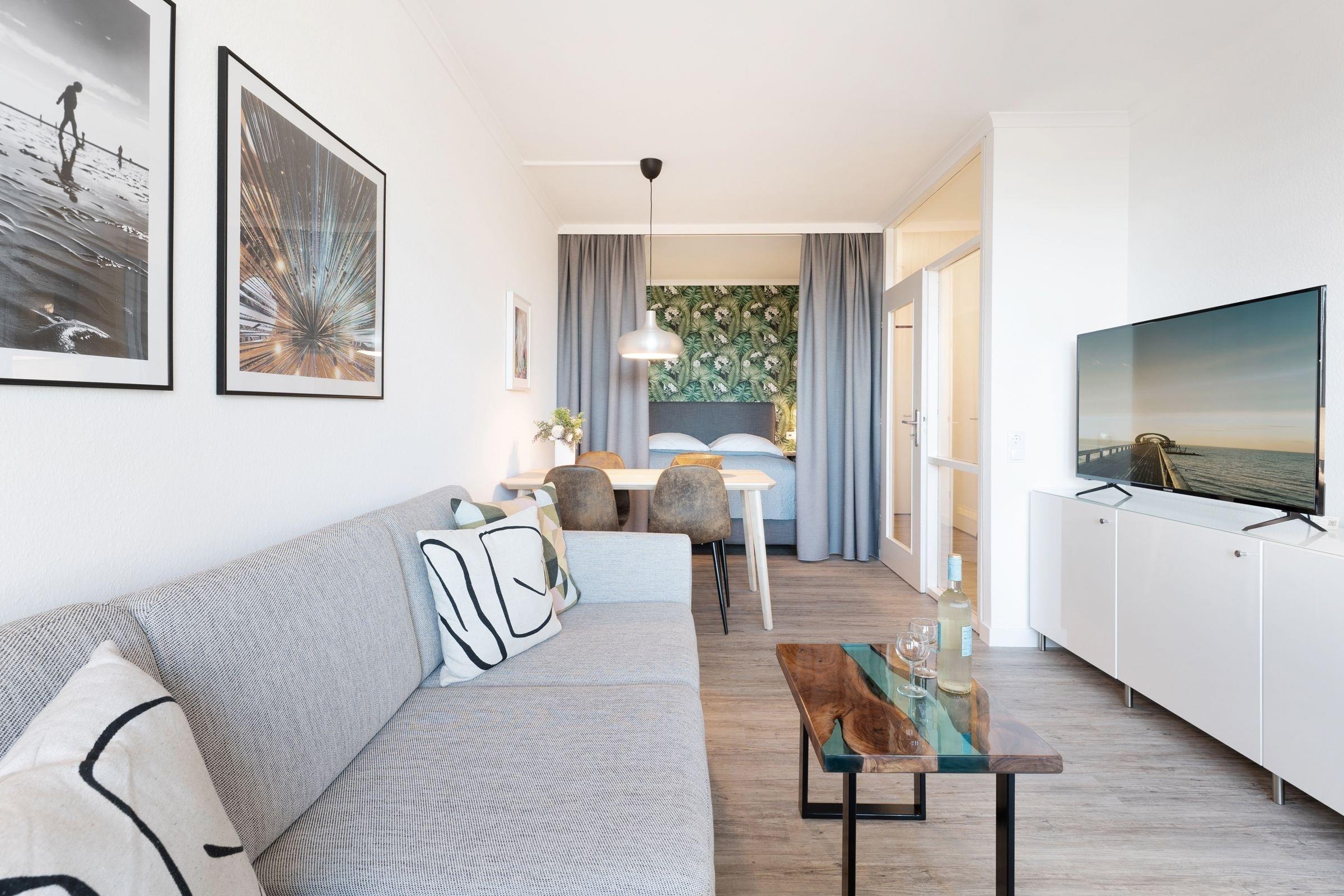 Der Name der Ferienwohnung Küstenquartier verrät es schon: Die Wohnung befindet sich ganz nah an der Küste, nur rund 100 Meter vom Ostseestrand entfernt. Die liebevoll ausgesuchte Einrichtung wird Sie sofort begeistern. Verbringen Sie Ihre wohlverdiente Auszeit im gemütlichen Wohn-/Schlafbereich mit Smart-TV (Streamingdienste zur Selbstanmeldung) oder an der frischen Seeluft auf dem möblierten, überdachten Balkon. Hobbyköche werden sich über die sehr gute Ausstattung der separaten, modernen Küche mit Induktionsherd, Nespresso-Maschine und Spülmaschine freuen. Nach einem gelungenen Abendessen verspricht das Doppelbett (140x200 cm) im Wohnzimmer angenehme Nachtruhe. Genauso das Kojenbett (2x 80x200 cm, ausziehbar) im Schlafzimmer. Das Duschbad punktet mit einem Föhn und einem Handtuchwärmer.