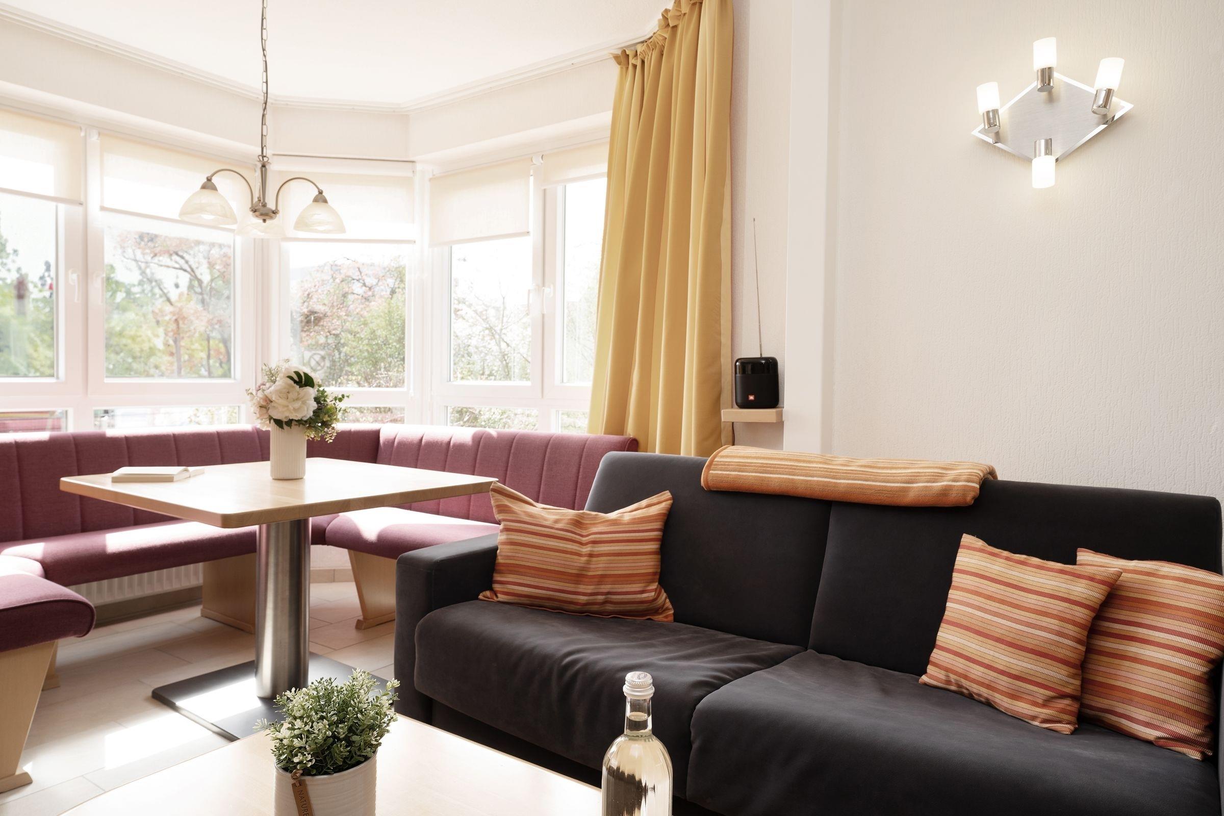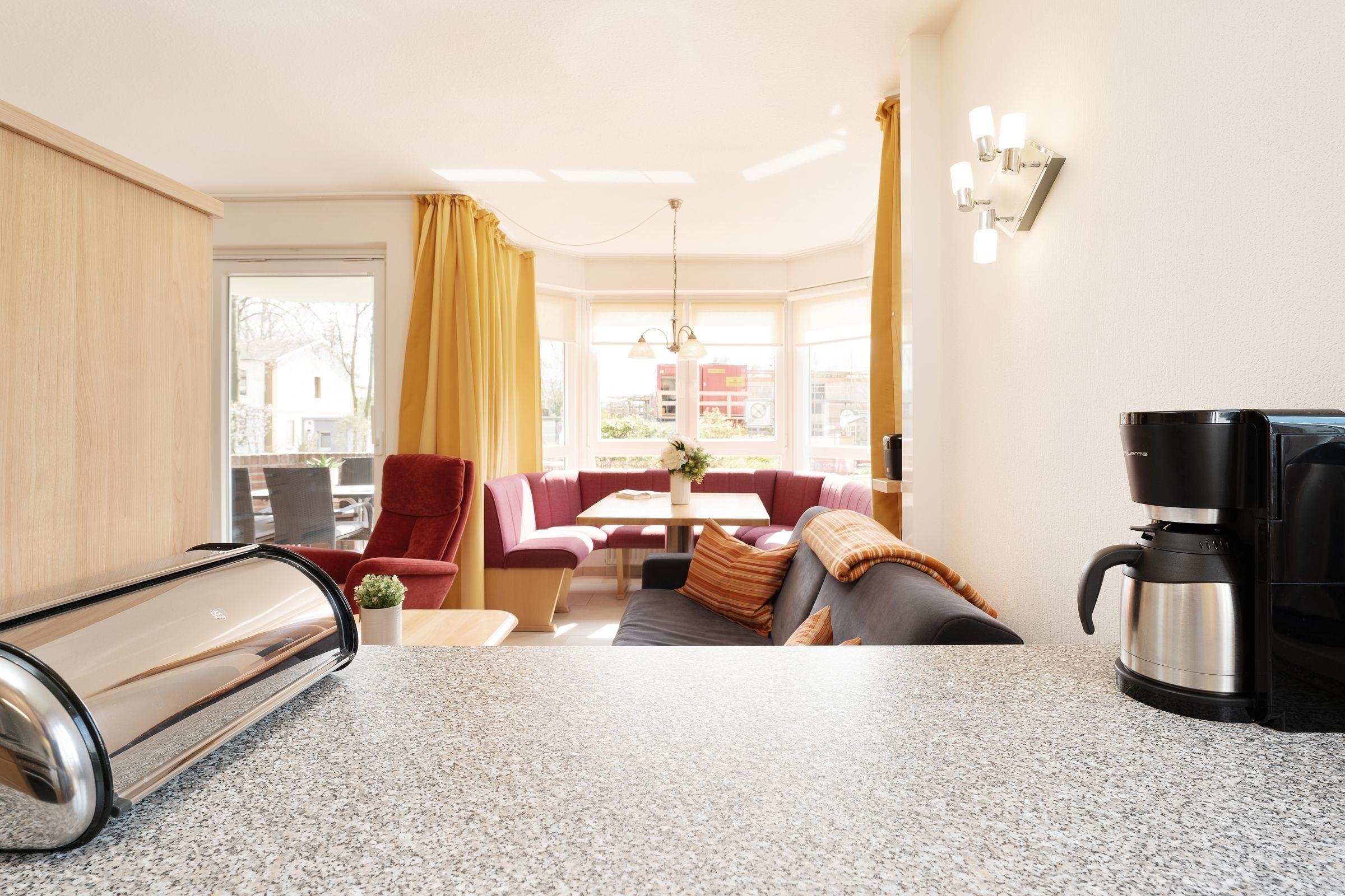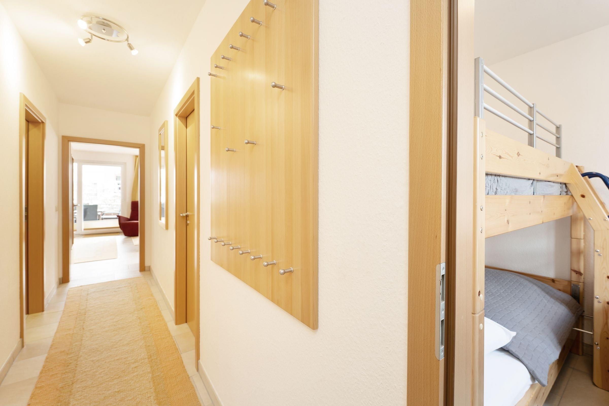 Herzlich willkommen in Ihrem Traumurlaub an der Küste – die Wohnung Küstentraum wartet schon auf Sie. Der lichtdurchflutete Wohn-/Essbereich punktet durch seine kuschelige Polstergarnitur vor dem TV sowie der gemütlichen Sitzecke im Glaserker. Hier können Sie Ihre Ausflüge planen, lustige Spieleabende verbringen oder Ihre leckeren Speisen genießen. Die offene Küche ist sehr gut ausgestattet und ermöglicht eine gute Selbstversorgung. Bei schönem Wetter lockt der überdachte, möblierte Balkon – oder auch der Ostseestrand, der rund 250 Meter entfernt liegt. Für die Nacht stehen Ihnen in einem Schlafzimmer 2 Einzelbetten (je 90x200cm) und in dem anderen Schlafzimmer ein Etagenbett (je 90x200 cm) zur Verfügung. Das moderne Duschbad bringt Sie erfrischt in den nächsten Tag.
