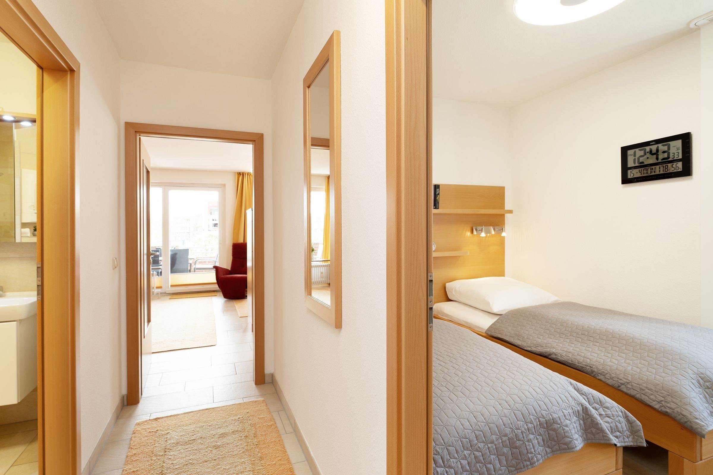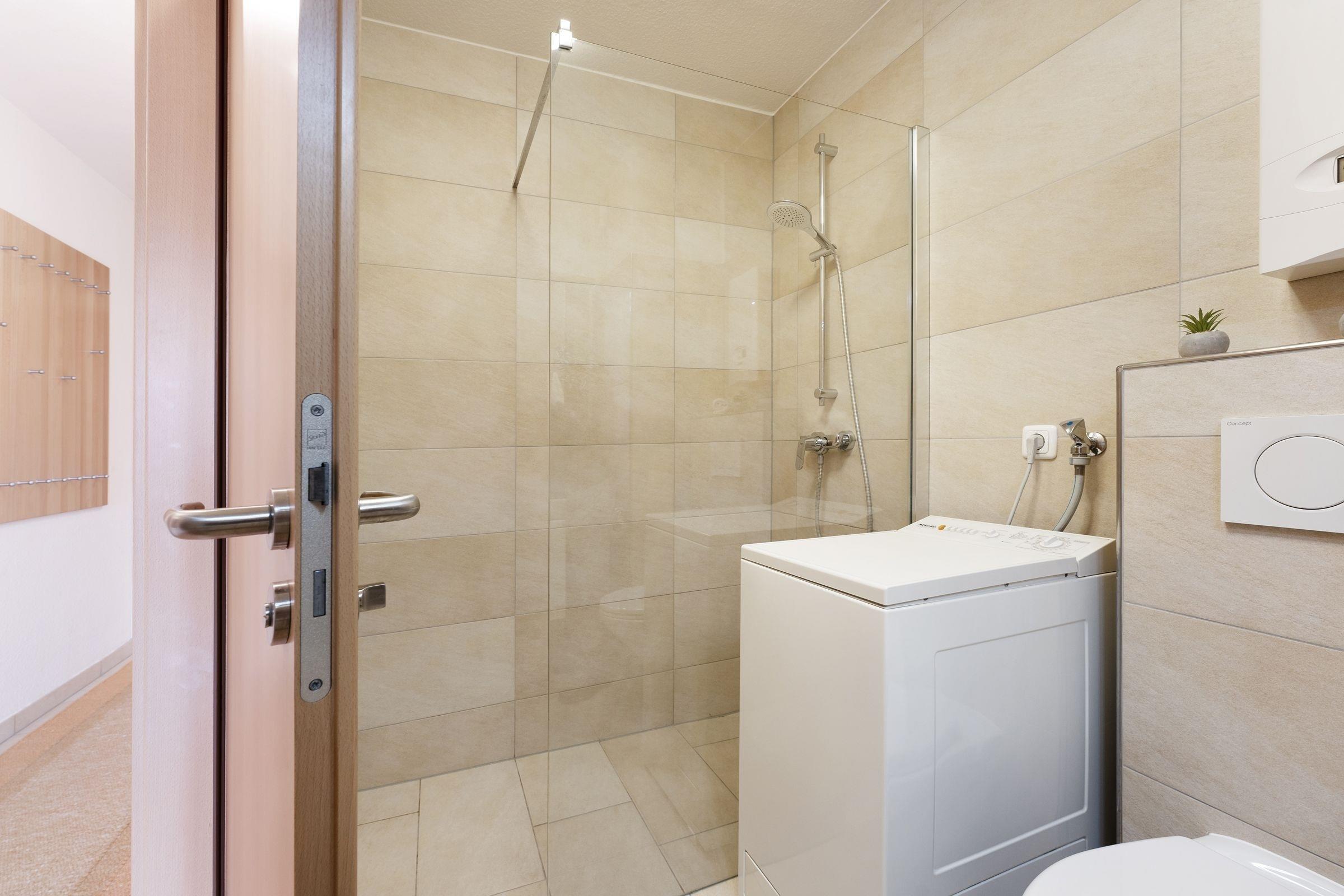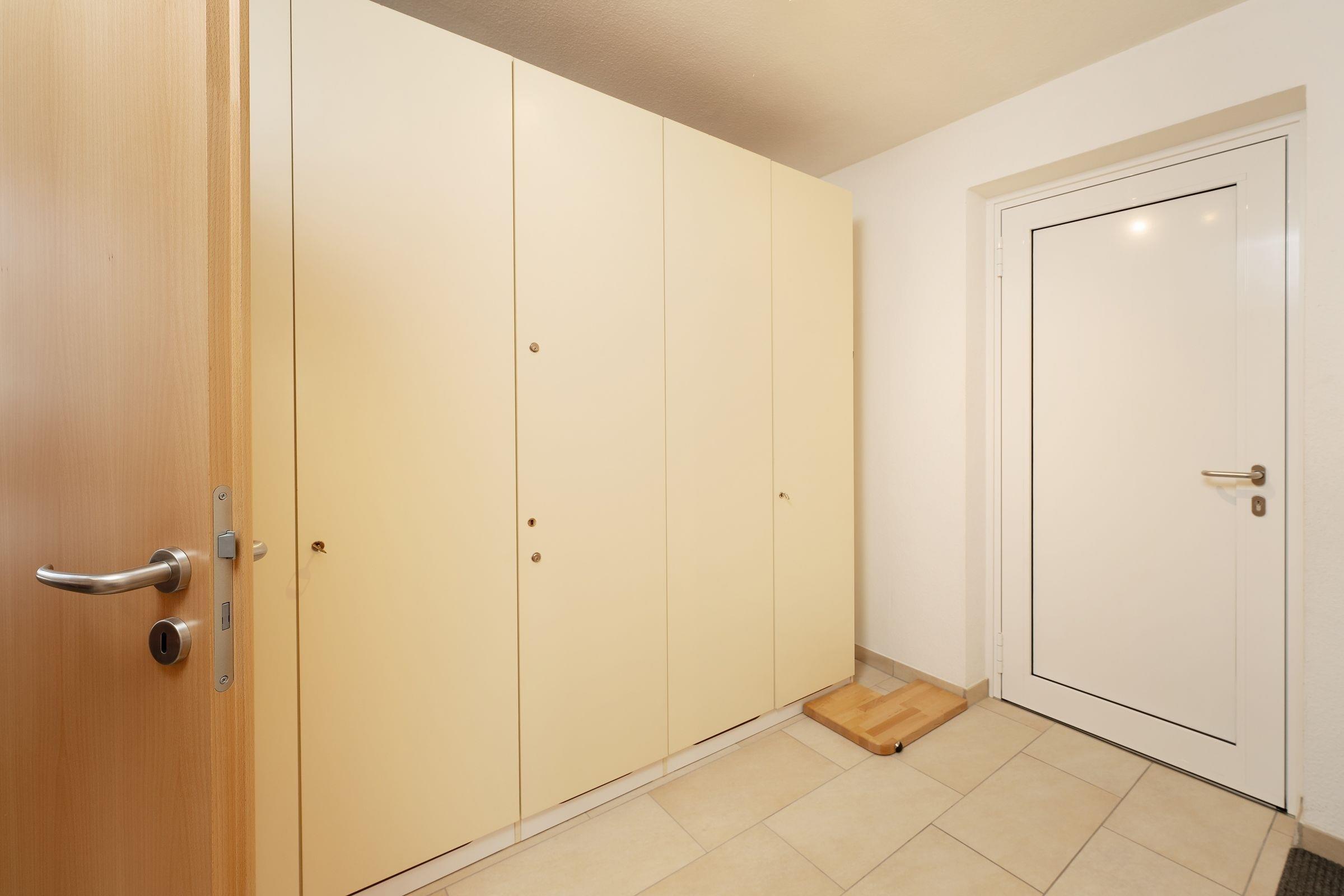 Ein PKW-Außenstellplatz ist für Sie reserviert. Eine Waschmaschine sorgt für eine stets saubere Urlaubgarderobe, die sie im geräumigen Flur-Schrank verstauen können. WLAN ist inklusive.